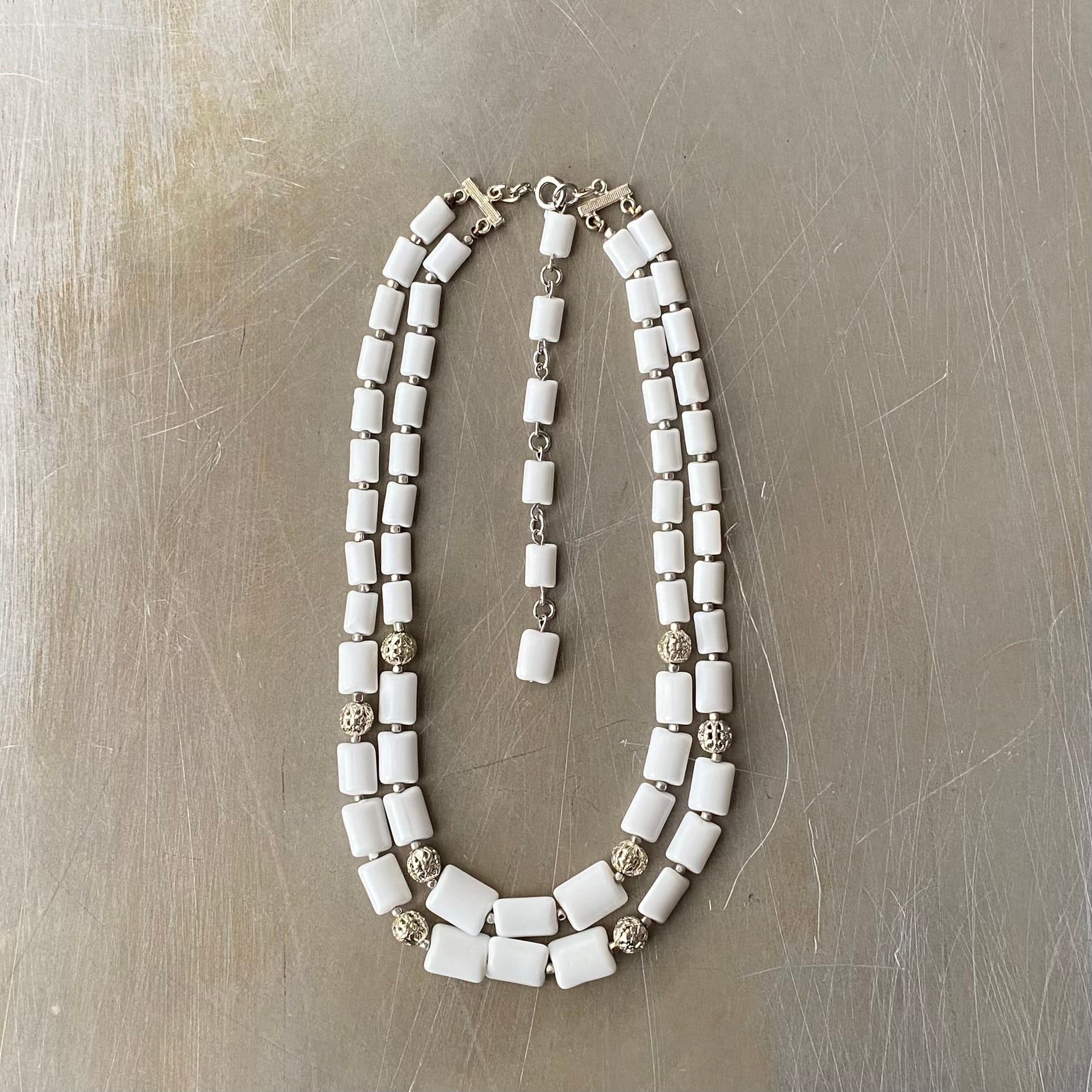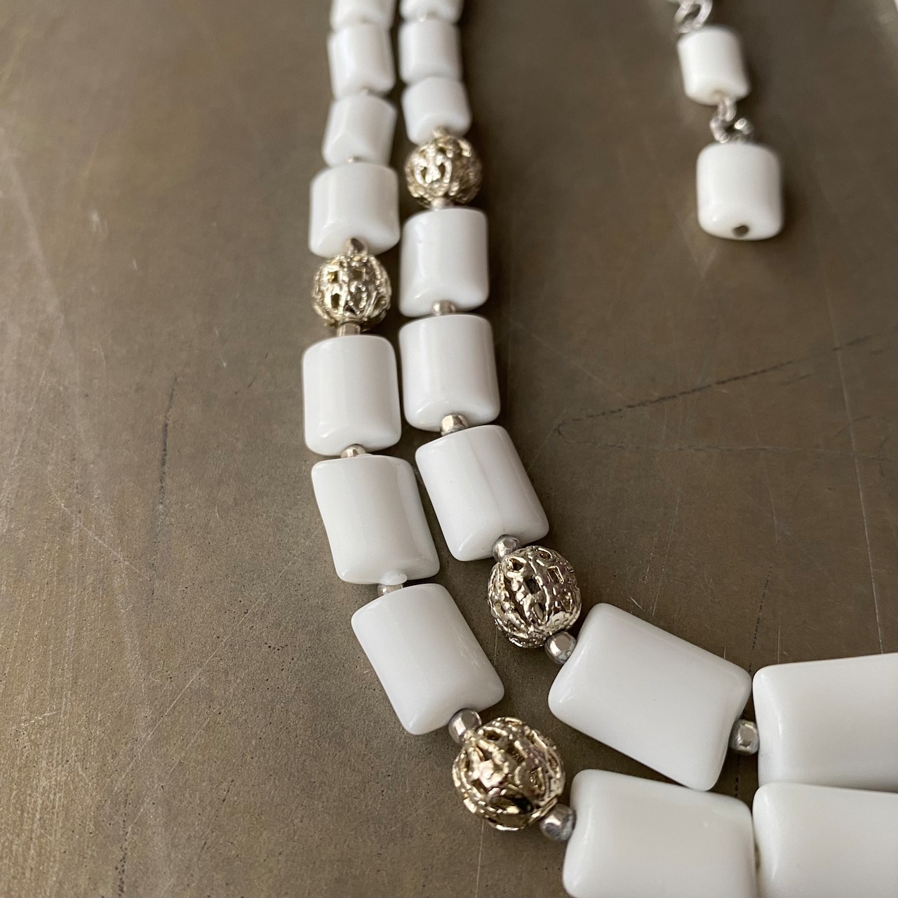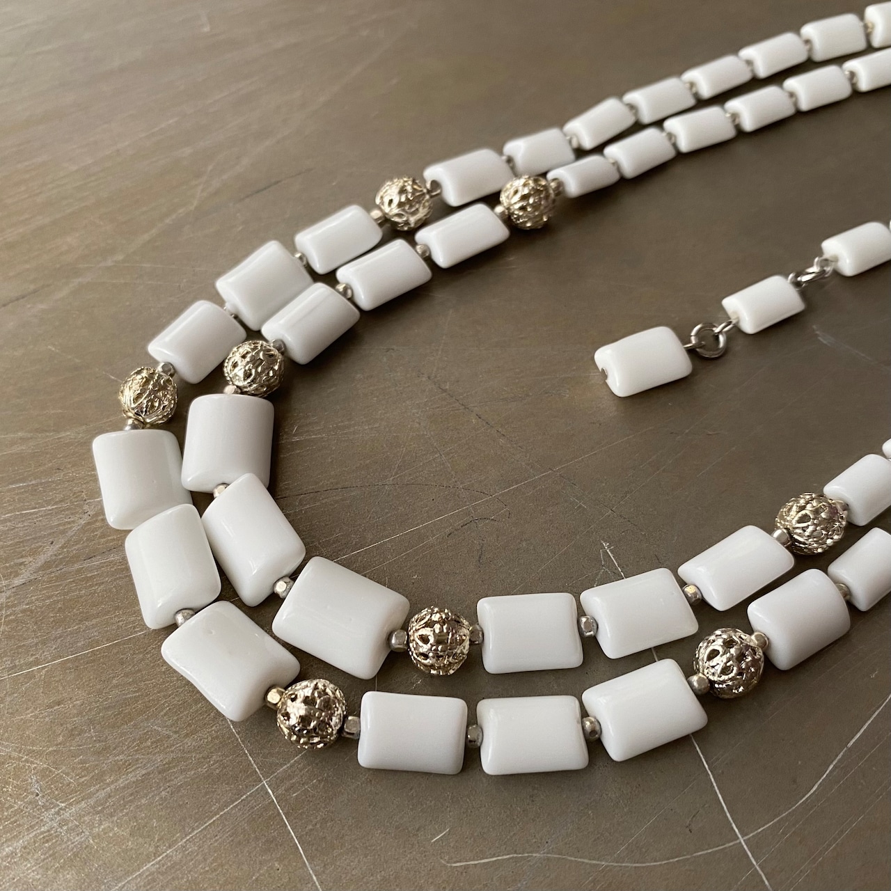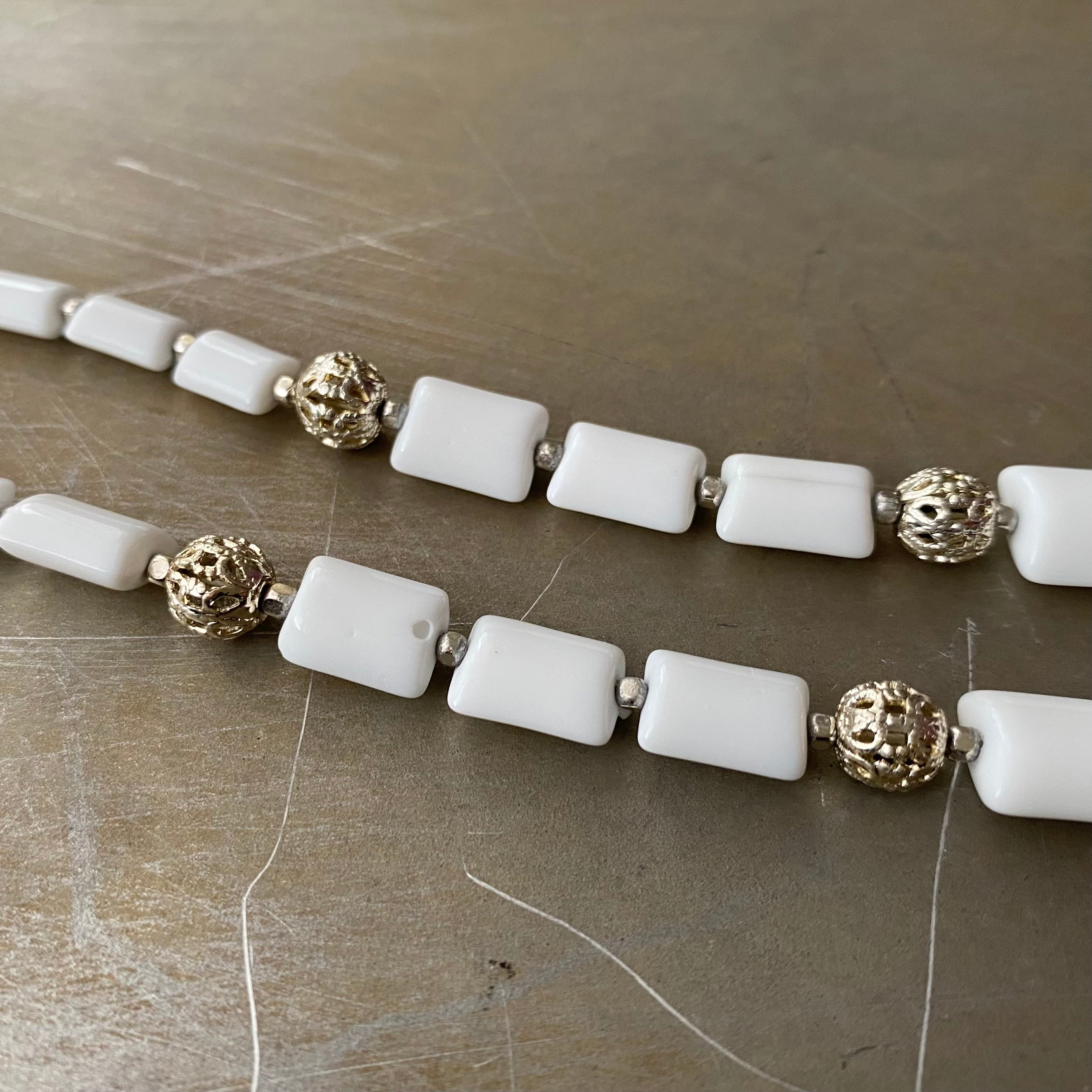 Vintage 50s-60s USA retro square milk glass beads necklace レトロ アメリカ ヴィンテージ アクセサリー スクエア ミルク ガラス ビーズ ネックレス