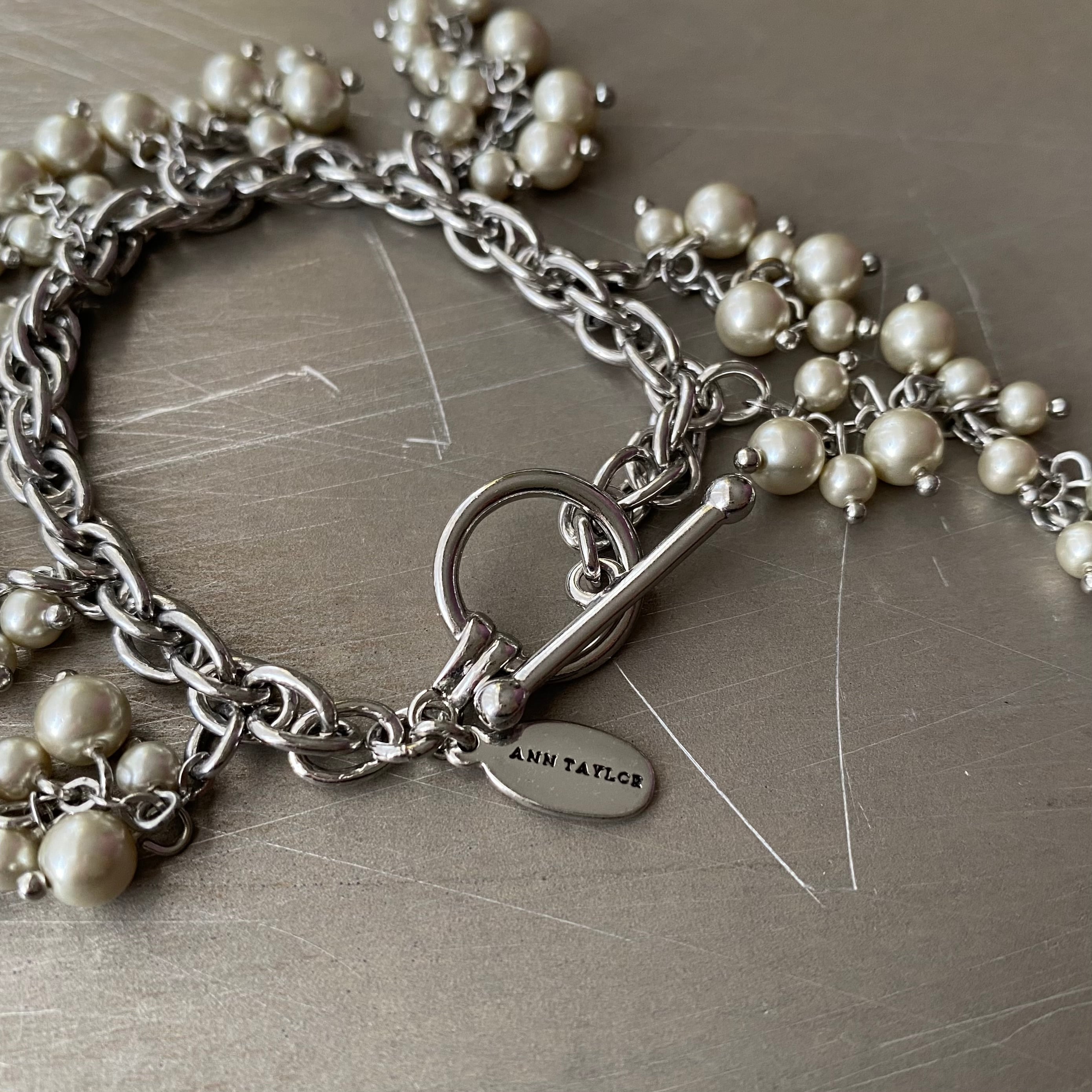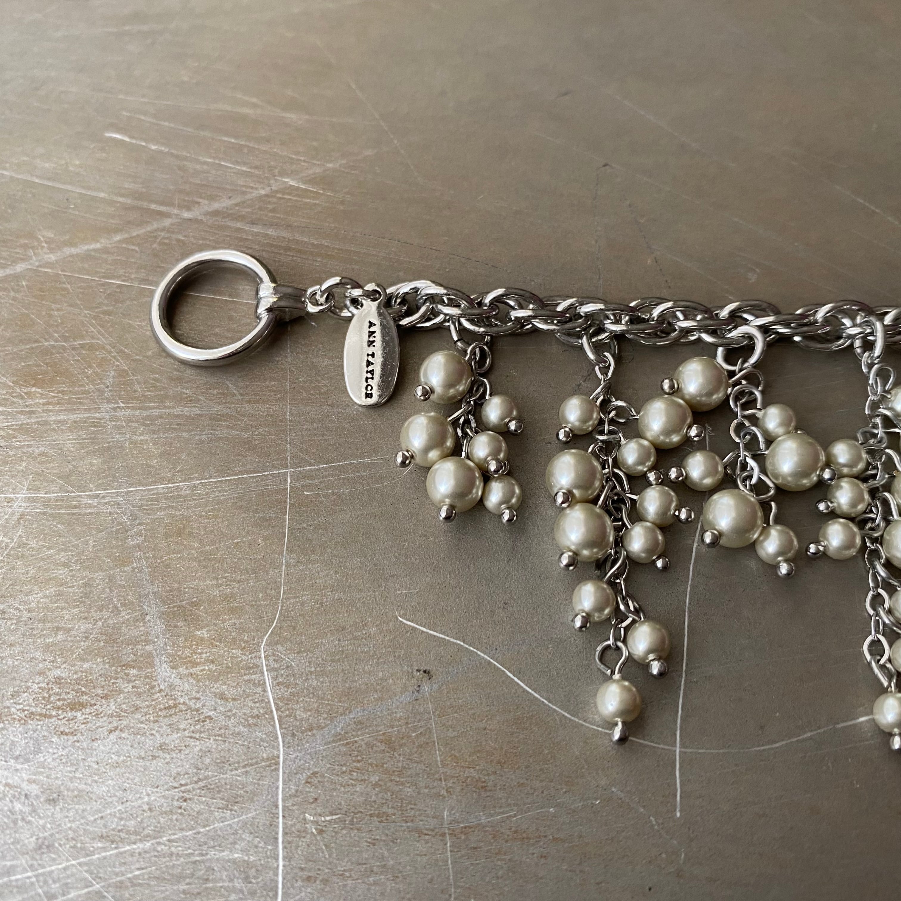 1954年にコネチカット州で創立されたレディースアパレルブランド「Ann Taylor」のヴィンテージブレスレット。繊細なパールがフリンジのように揺らめくとてもお洒落なデザインです。存在感がありスタイリングに華やかな雰囲気をプラスしてくれます。