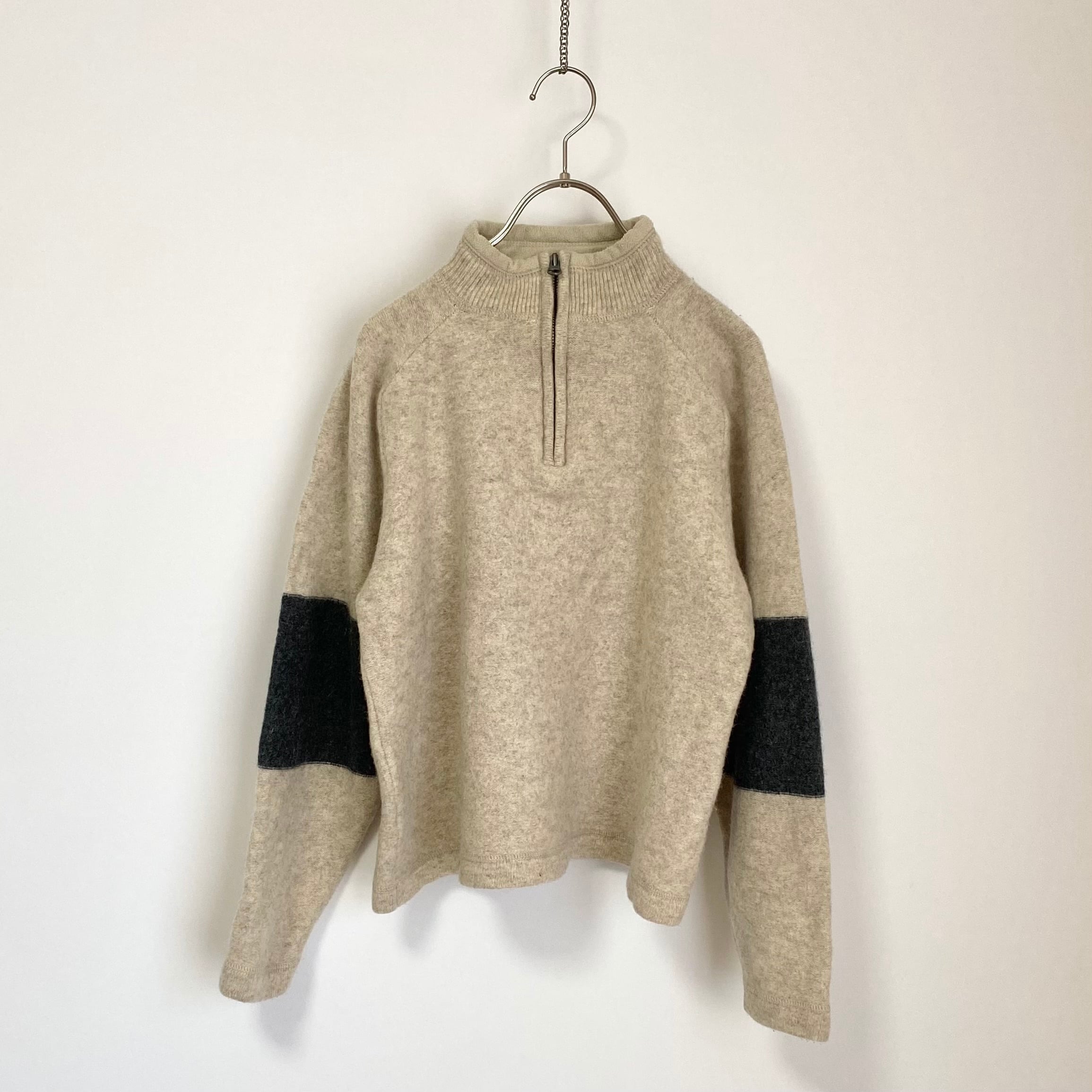 Used USA Eddie Bauer wool stripe design half zip tops レトロ アメリカ ユーズド 古着 エディー・バウアー ウール ボーダー デザイン ハーフジップ トップス レディース