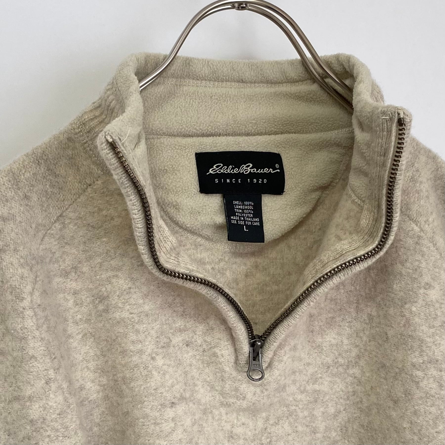 1920年にアメリカ・シアトルで誕生したブランド「エディー・バウアー」の古着トップス。レトロな色合いの暖かみのあるウール素材で袖部分の太めのボーダーがおしゃれなデザイン。ほどよくゆとりのシルエットでやや短めの丈感です。ワイドなボトムスともバランス良くコーディネートしていただけます。
