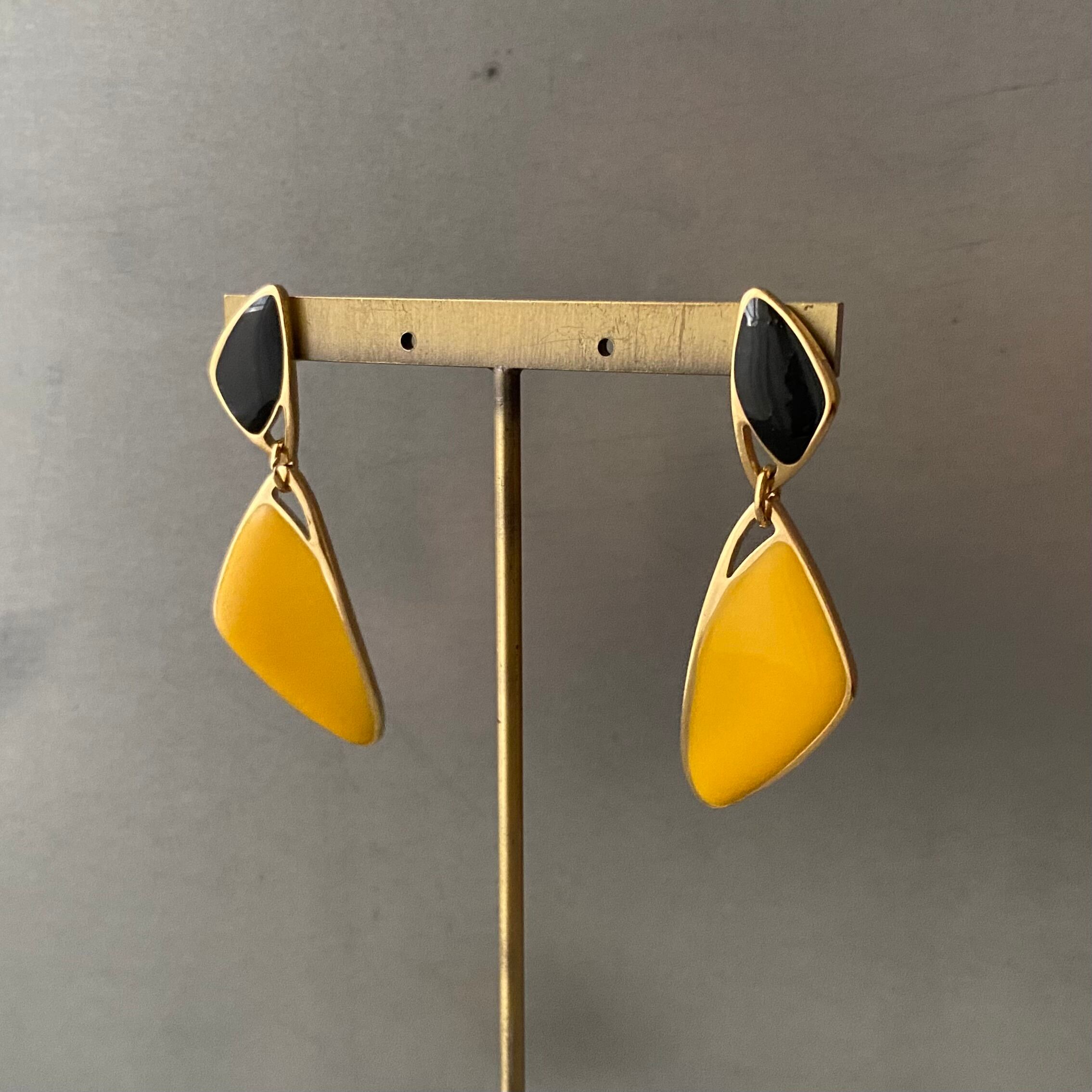 Vintage 80s USA retro yellow×black enamel pierce レトロ アメリカ ヴィンテージ アクセサリー イエロー×ブラック エナメル ピアス