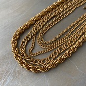 クラシカルな5連チェーンのUSAヴィンテージネックレス。ボリューム感のあるデザインで留め具はヴィンテージならではのフックタイプになっています。古びたメタルの色味も魅力的。存在感がありスタイリングにお洒落な雰囲気をプラスしてくれます。