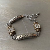 蛇柄のメタルとキラキラと輝くビジューがマッチしたUSAユーズドブレスレット。身につけやすい幅間で存在感があり、スタイリングに個性的な雰囲気をプラスしてくれます。