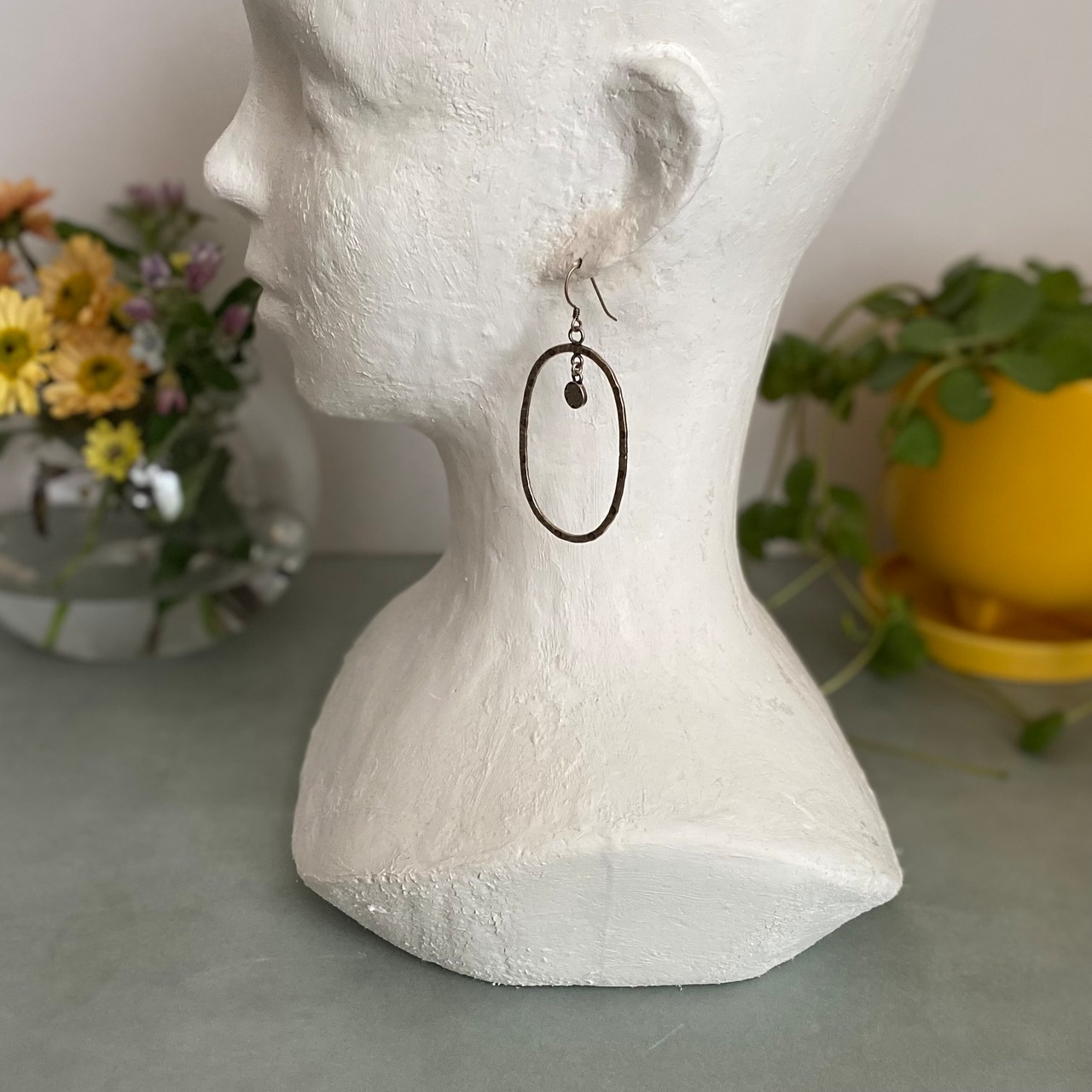 Used USA retro silver tone oval design pierces レトロ アメリカ ユーズド アクセサリー シルバー オーバル デザイン ピアス