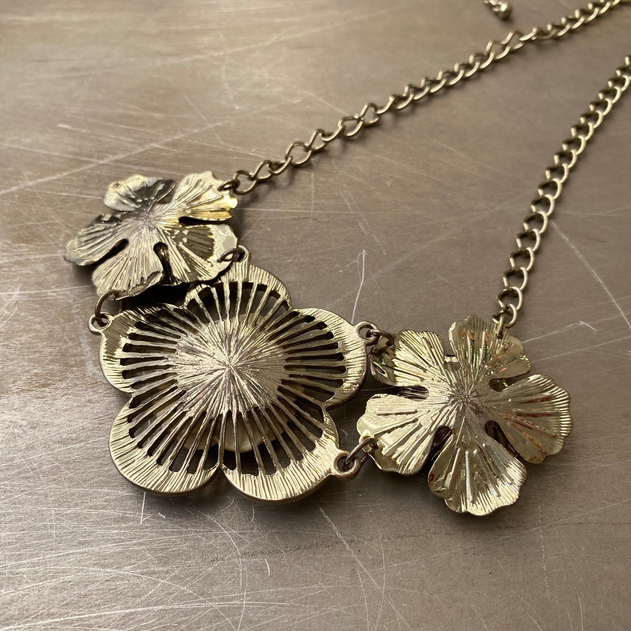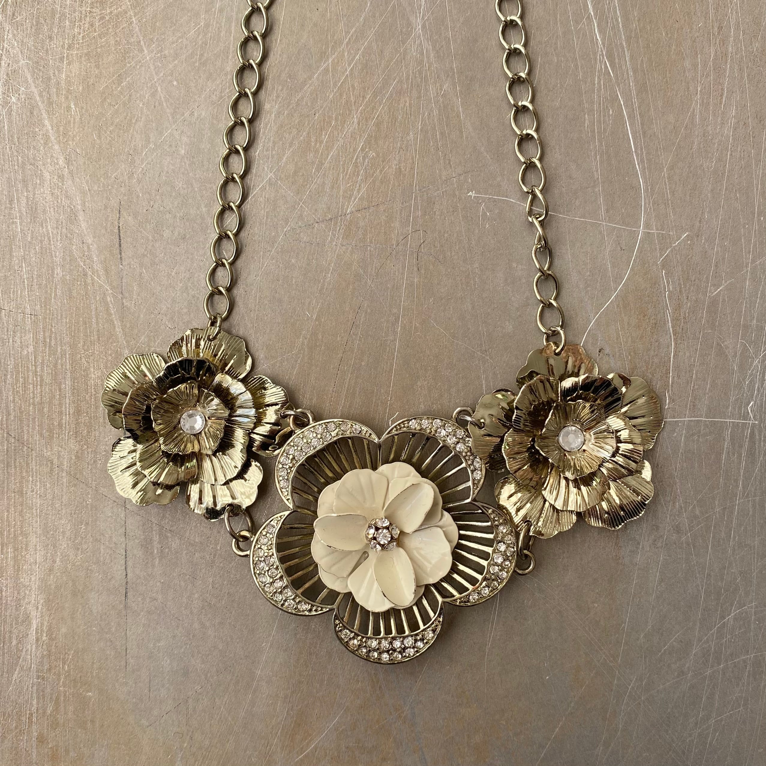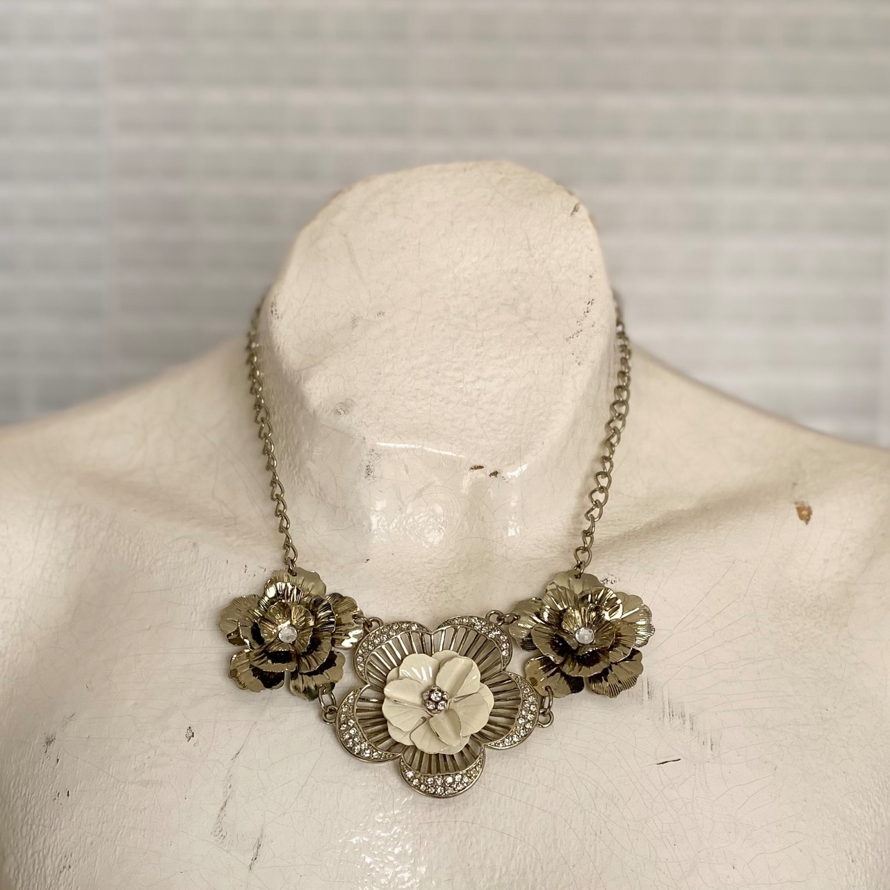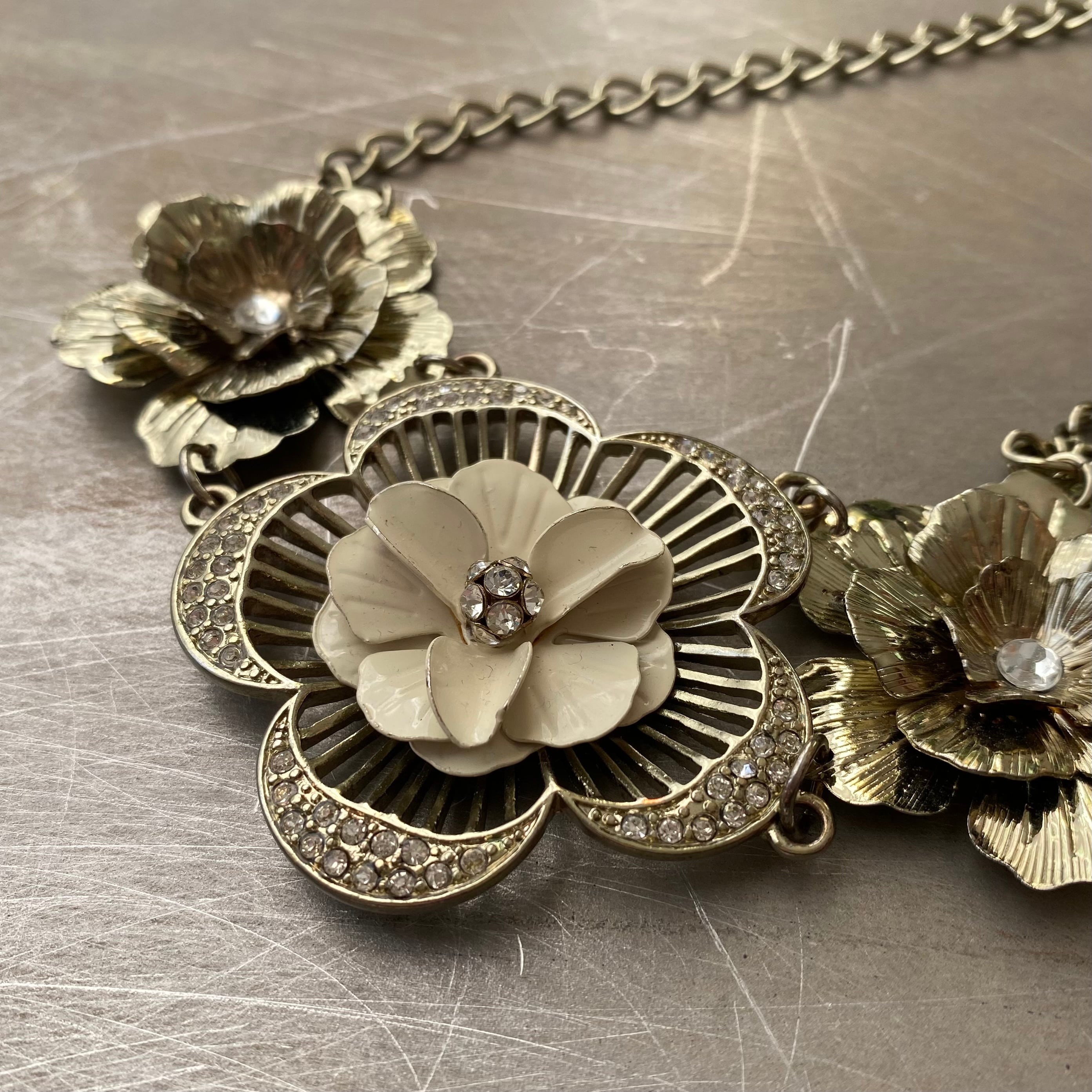 Vintage USA retro crystal bijou metallic flower necklace レトロ アメリカ ヴィンテージ アクセサリー クリスタル ビジュー メタリック フラワー ネックレス