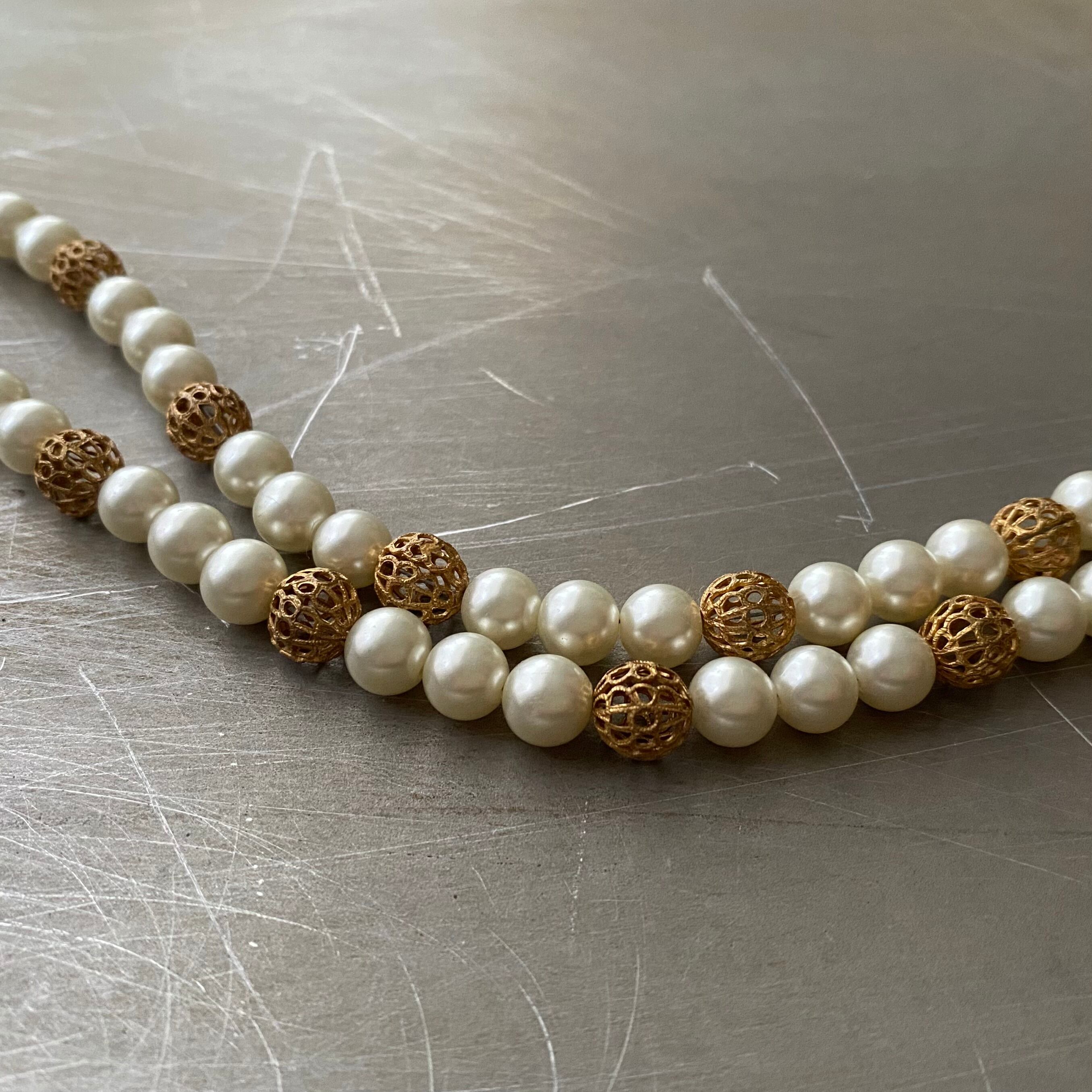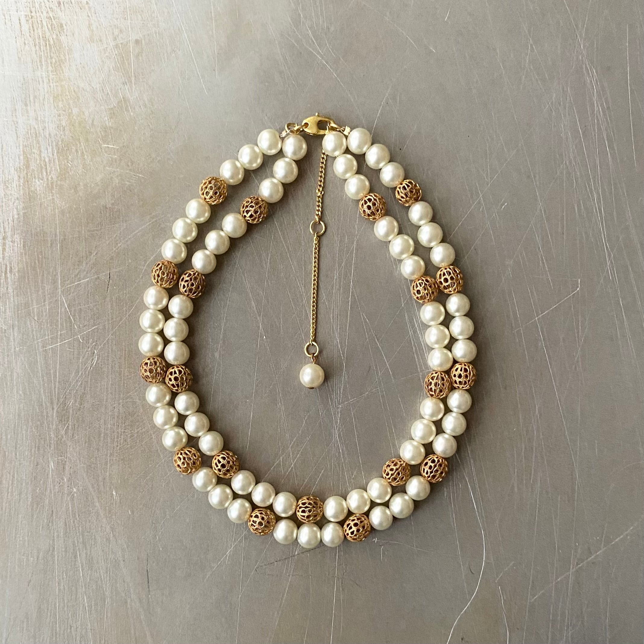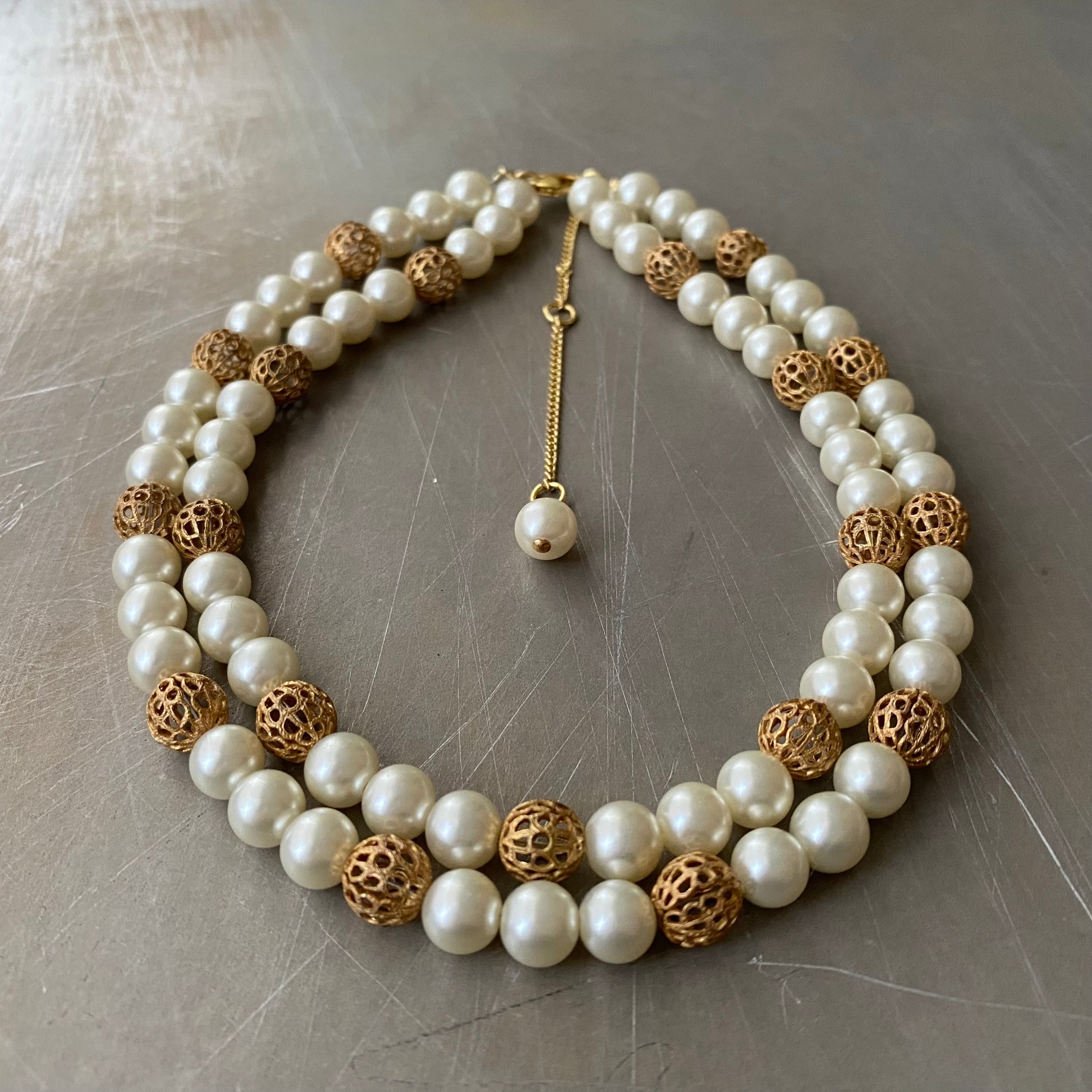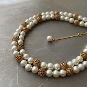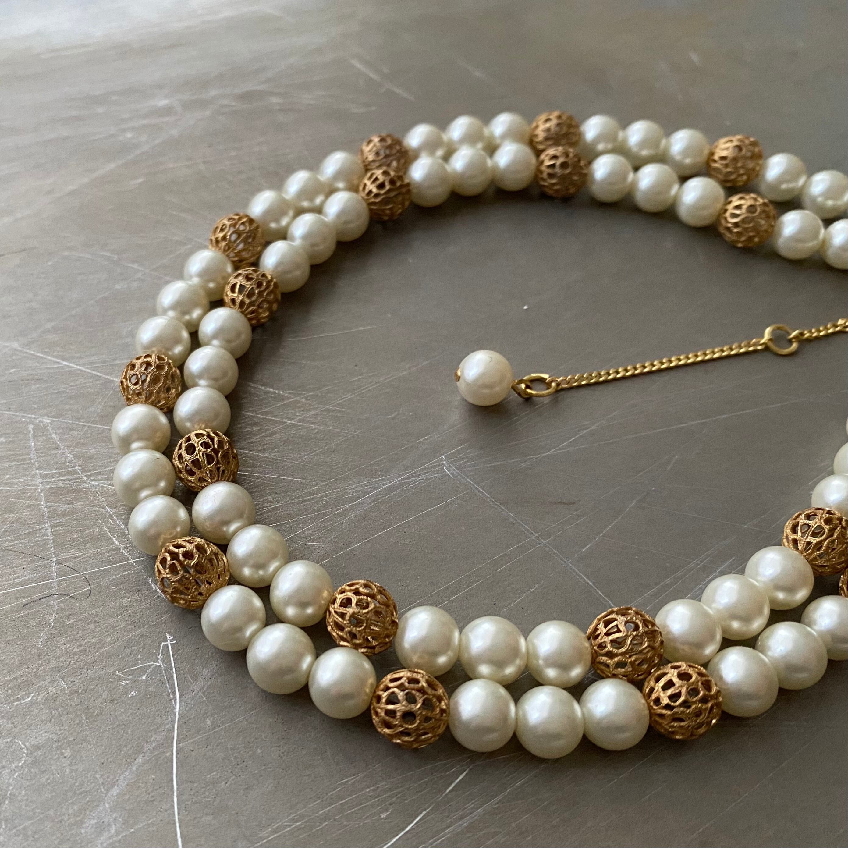 クラシカルな2連パールのUSAヴィンテージチョーカー。華やかな雰囲気でパーティからカジュアルなスタイルまで幅広くお使いいただけます。