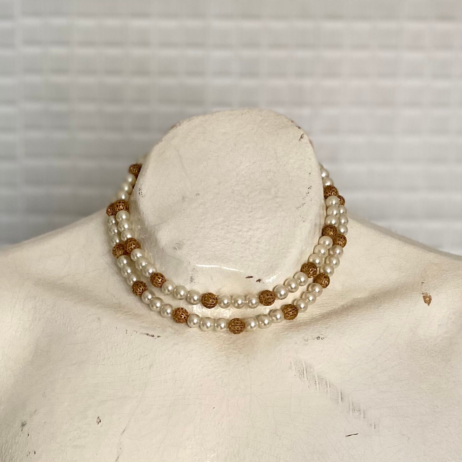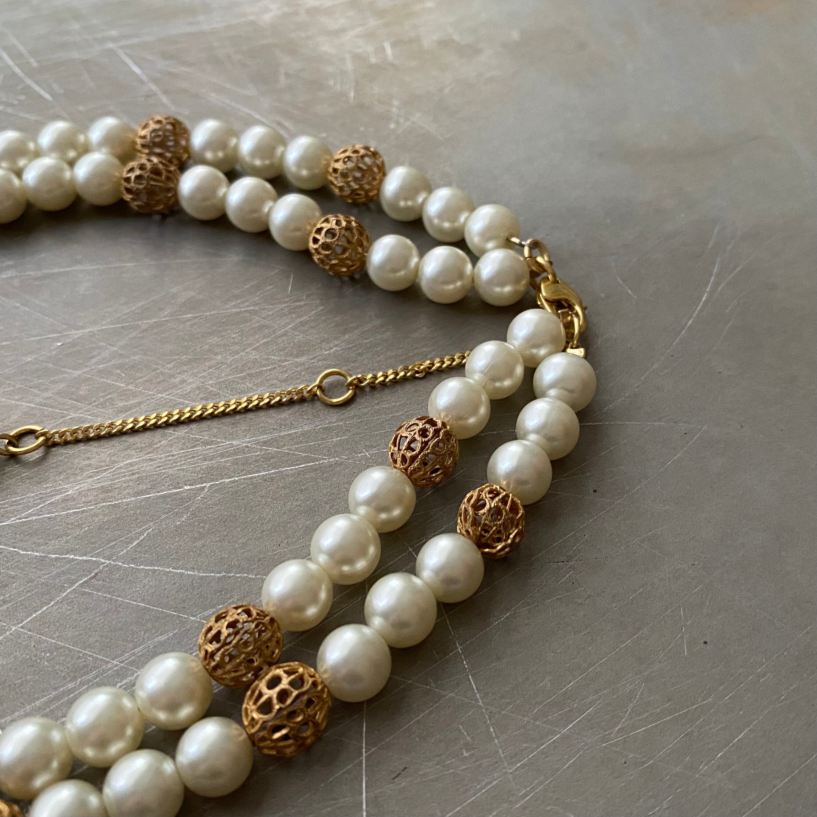 Vintage 70s-80s USA retro double pearl choker necklace レトロ アメリカ ヴィンテージ アクセサリー 2連 パール チョーカー ネックレス