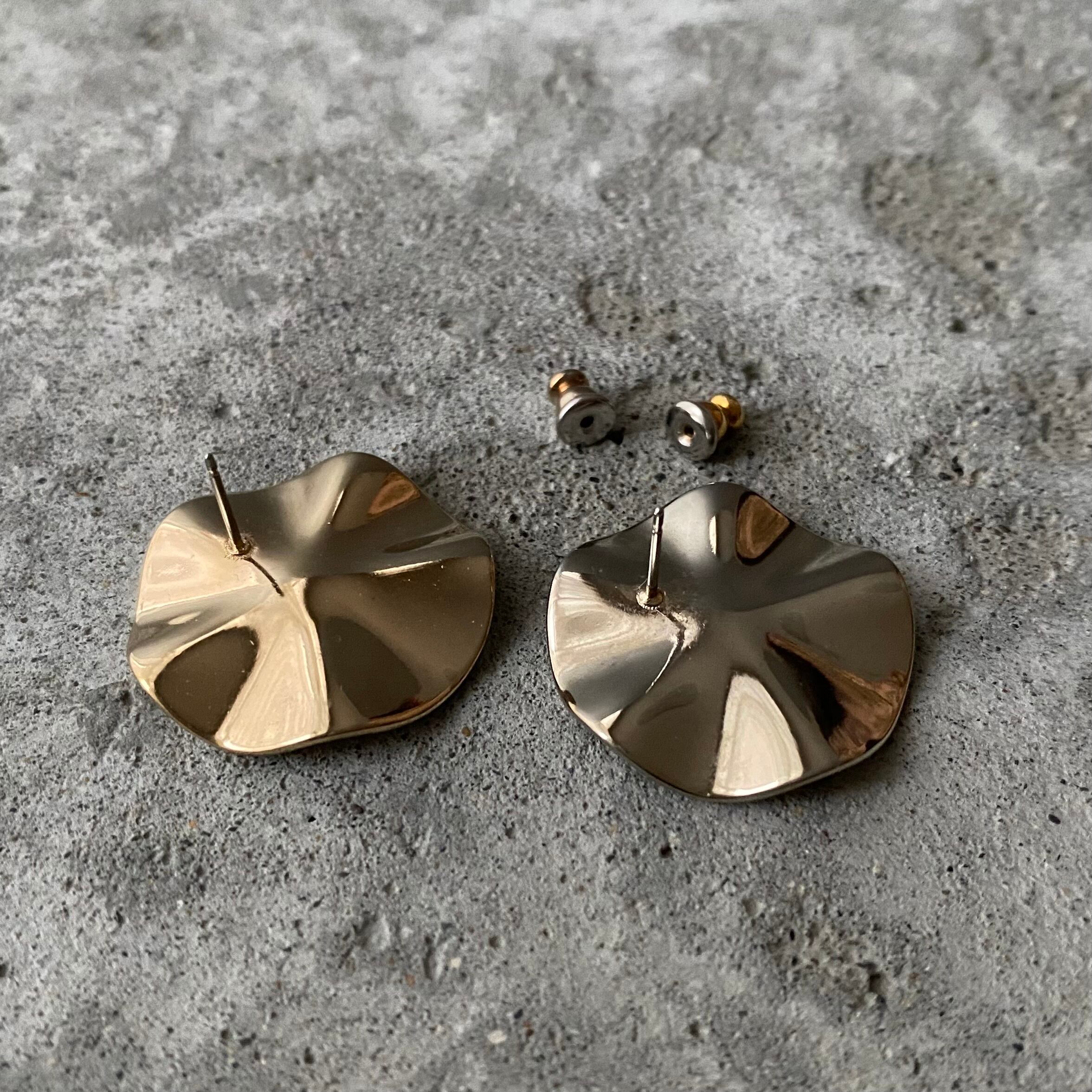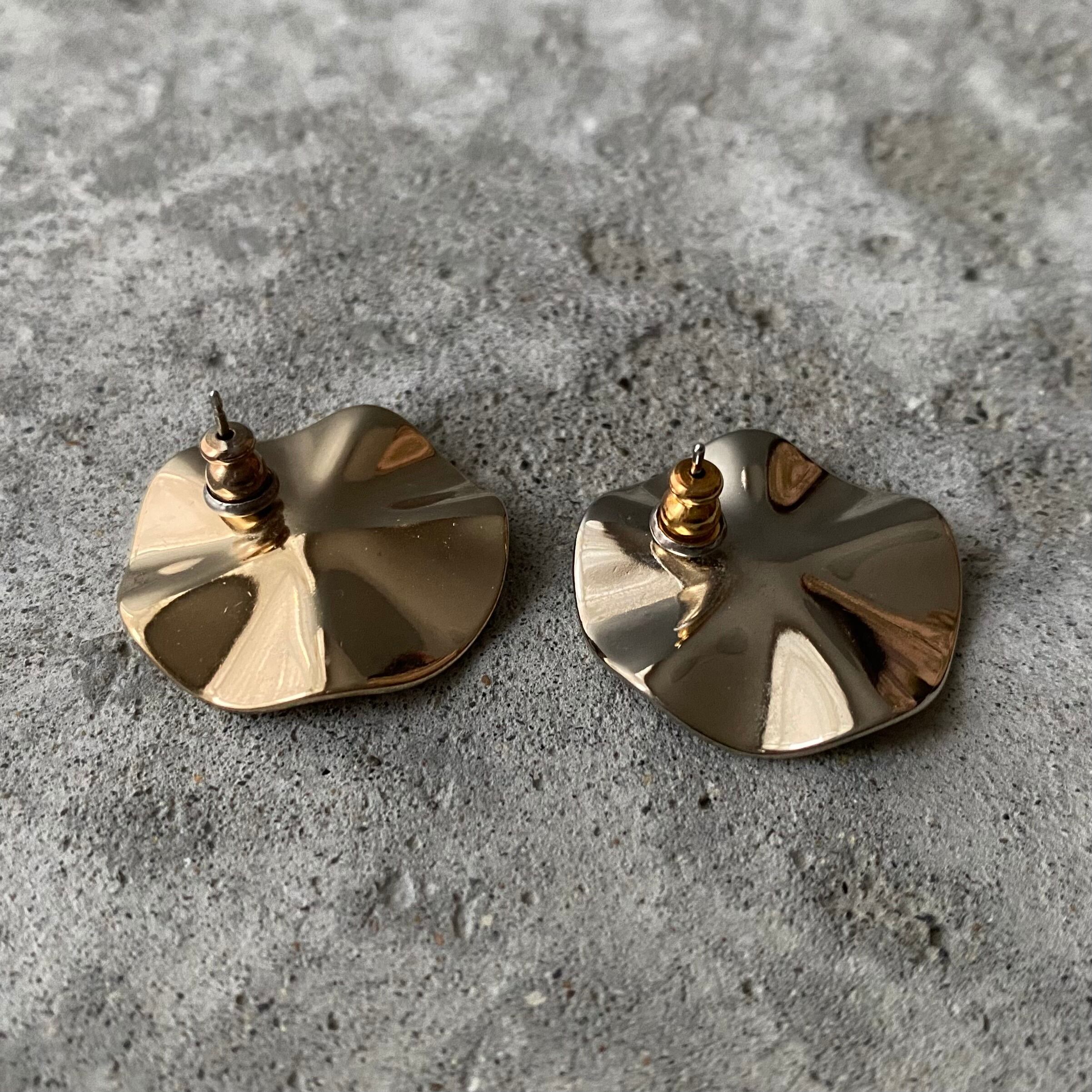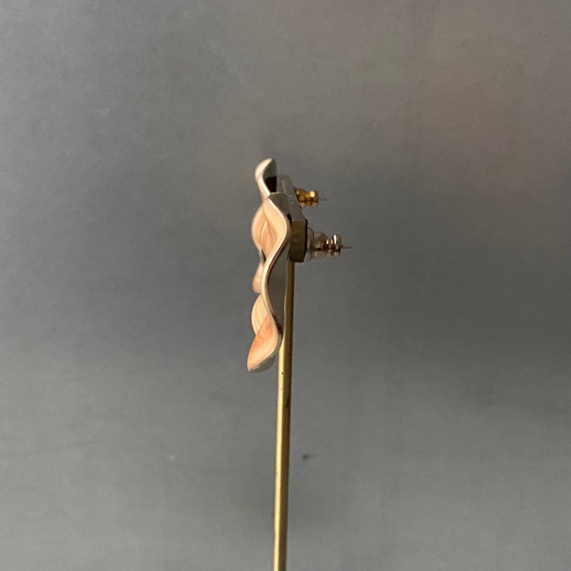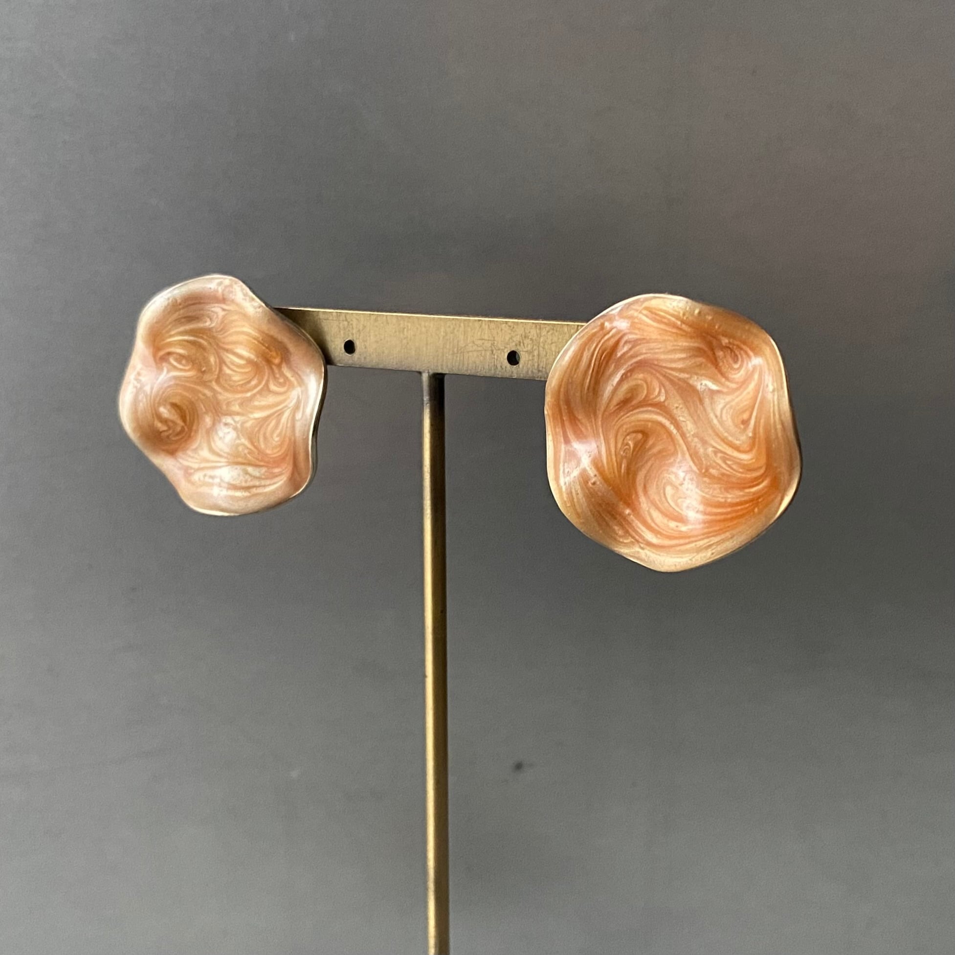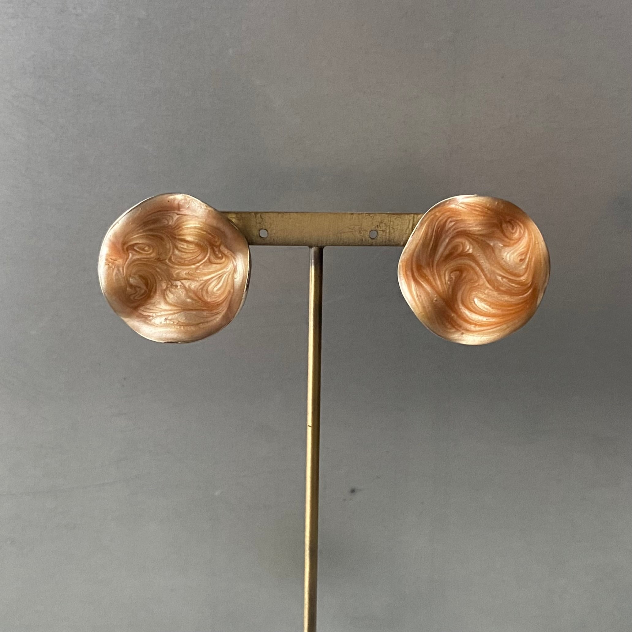 ラフな形のメタルに美しいマーブル模様のエナメルが施されたUSAヴィンテージピアス。肌馴染みの良い色合いで、さりげなくお洒落な雰囲気をプラスしてくれます。