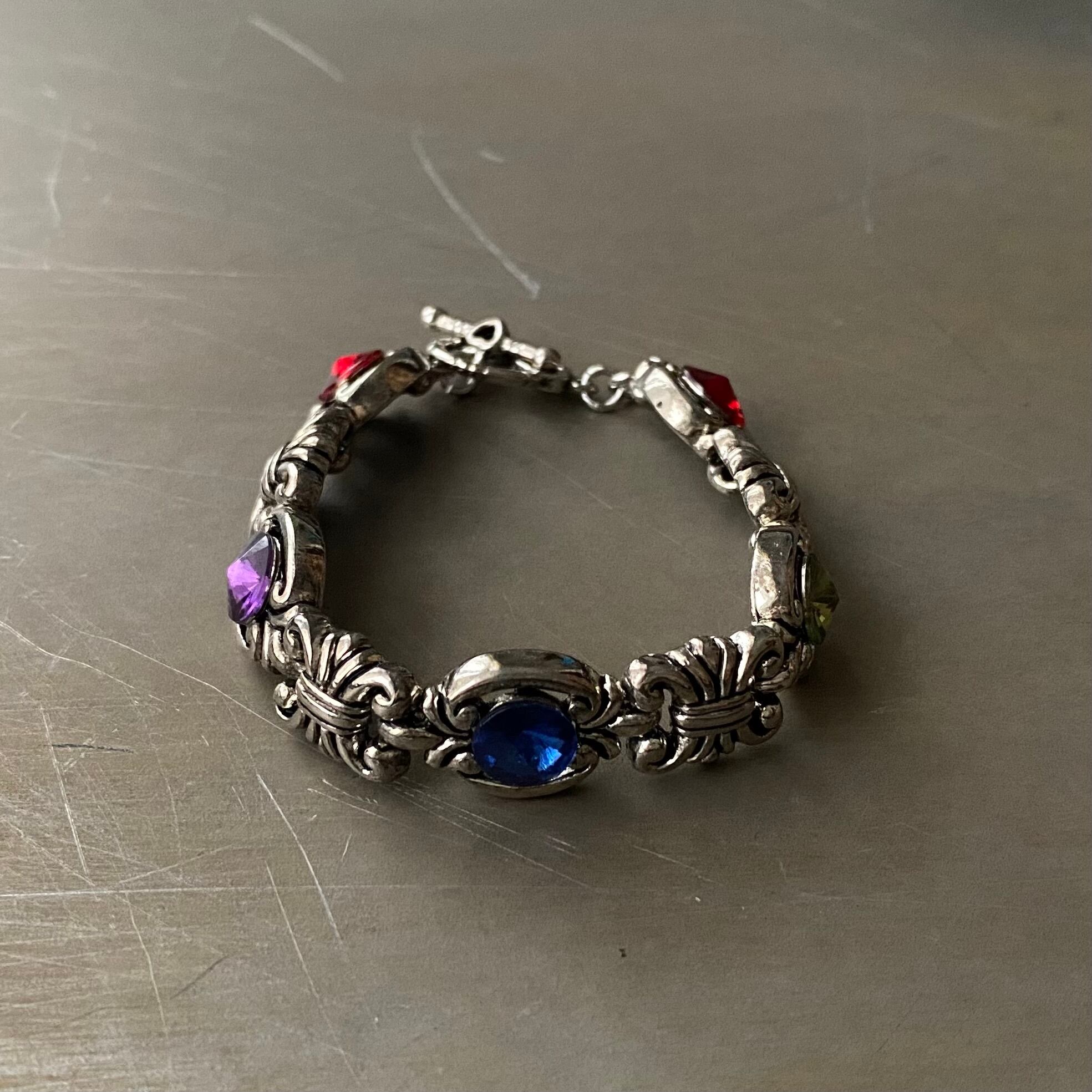 Vintage 90s USA retro multicolored bijou classical chain bracelet レトロ アメリカ ヴィンテージ アクセサリー マルチカラー ビジュー カラフル チェーン ブレスレット