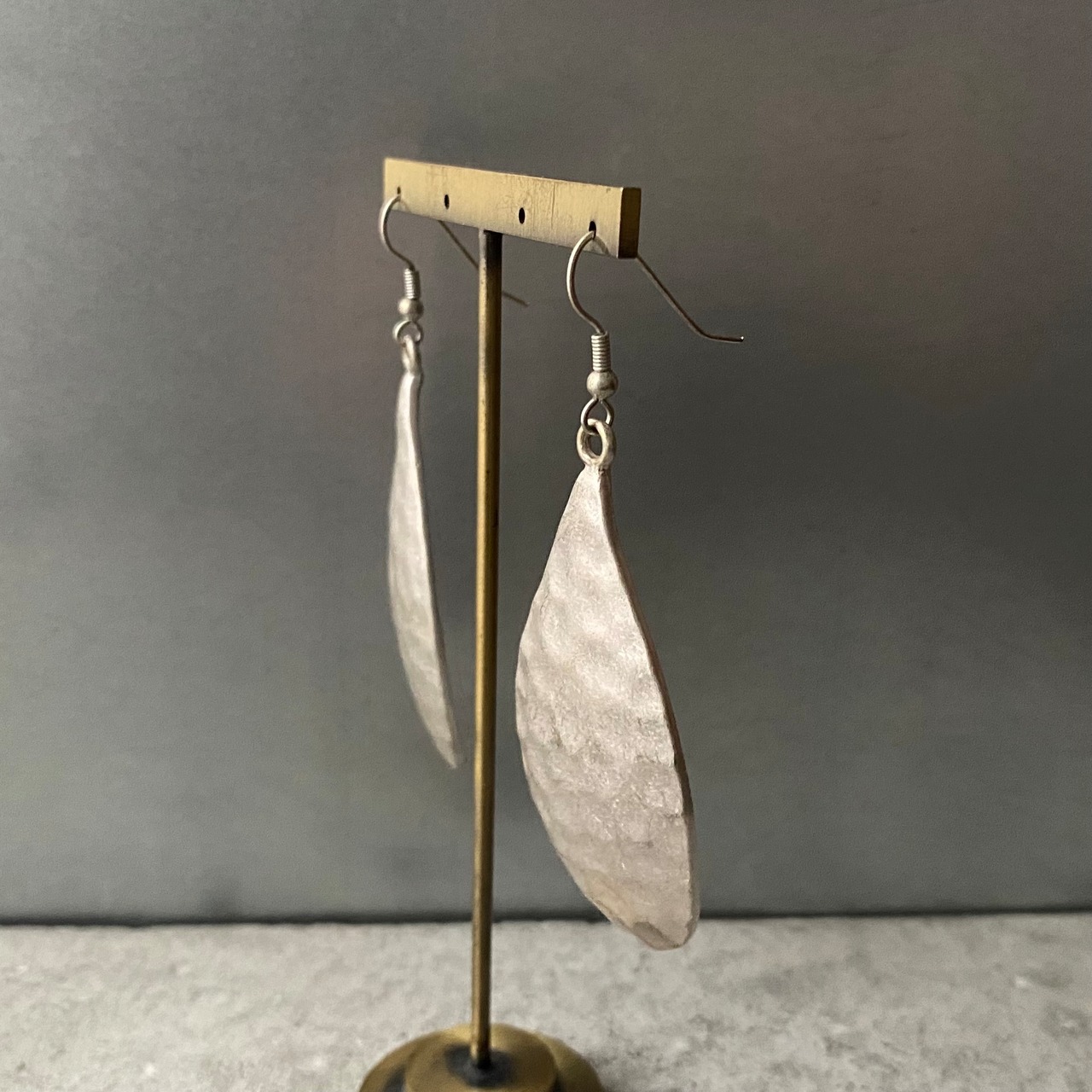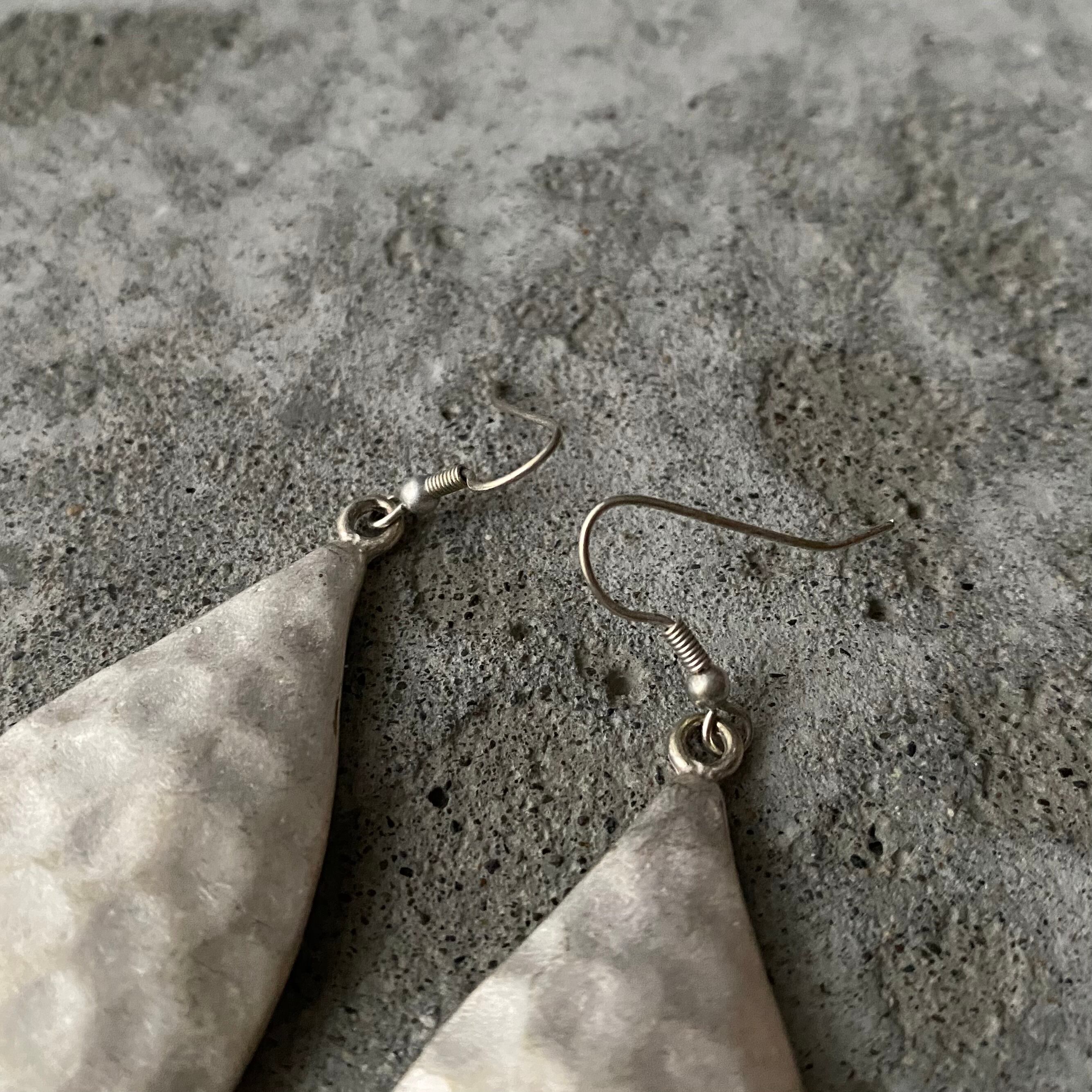 ラフなテスクチャーが素敵なUSAユーズドピアス。クラフト感のあるマットシルバーの質感もポイント。大ぶりで存在感がありシンプルなスタイルのアクセントにおすすめです。