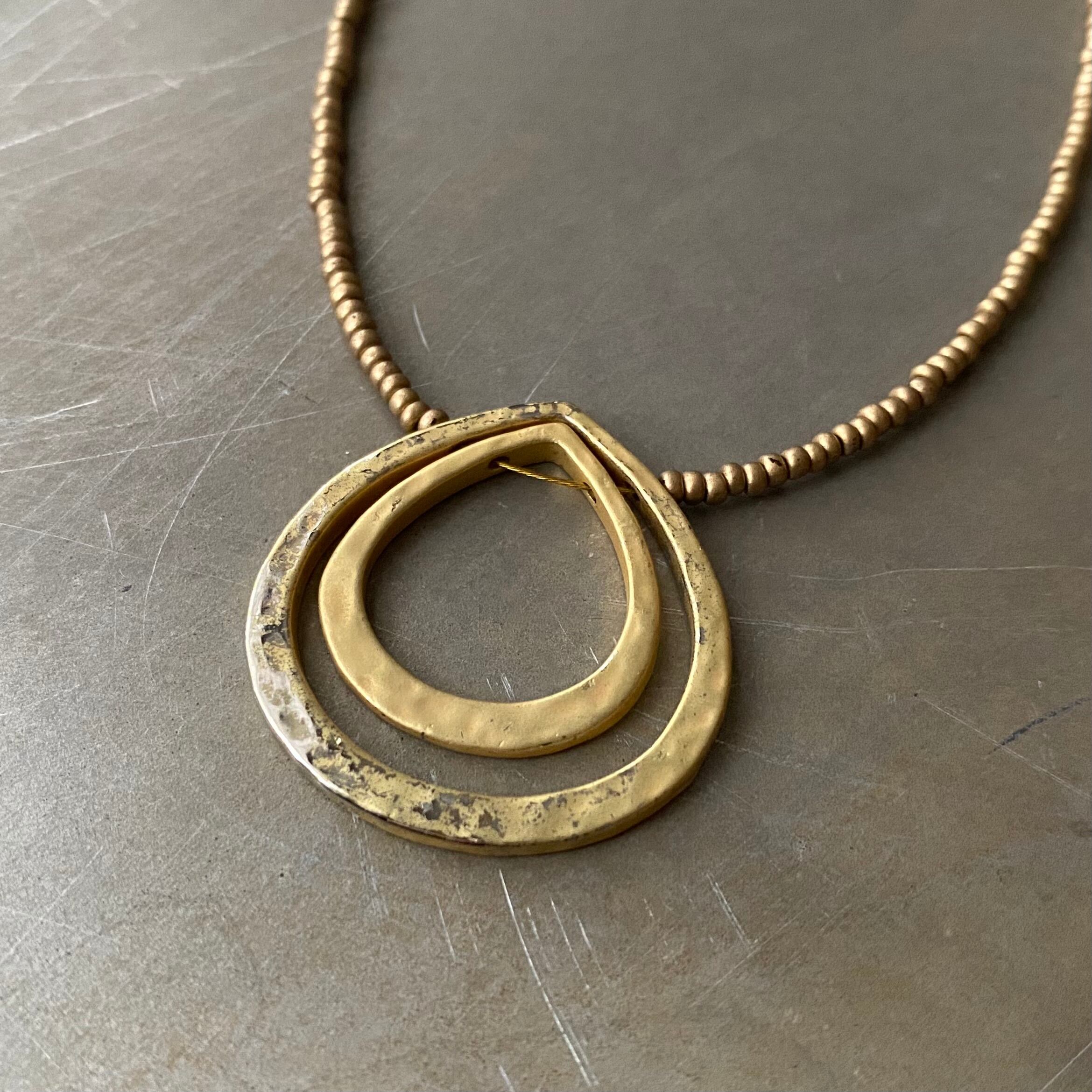 ニューヨークの働く女性をターゲットにした、エレガントで洗練されたファッションブランド「New York & Company」のネックレス。クラフト感のあるドロップパーツと繊細なビーズがマッチしたスタイリッシュなデザイン。肌馴染みの良いゴールドカラーでスタイリングにお洒落な雰囲気をプラスしてくれます。