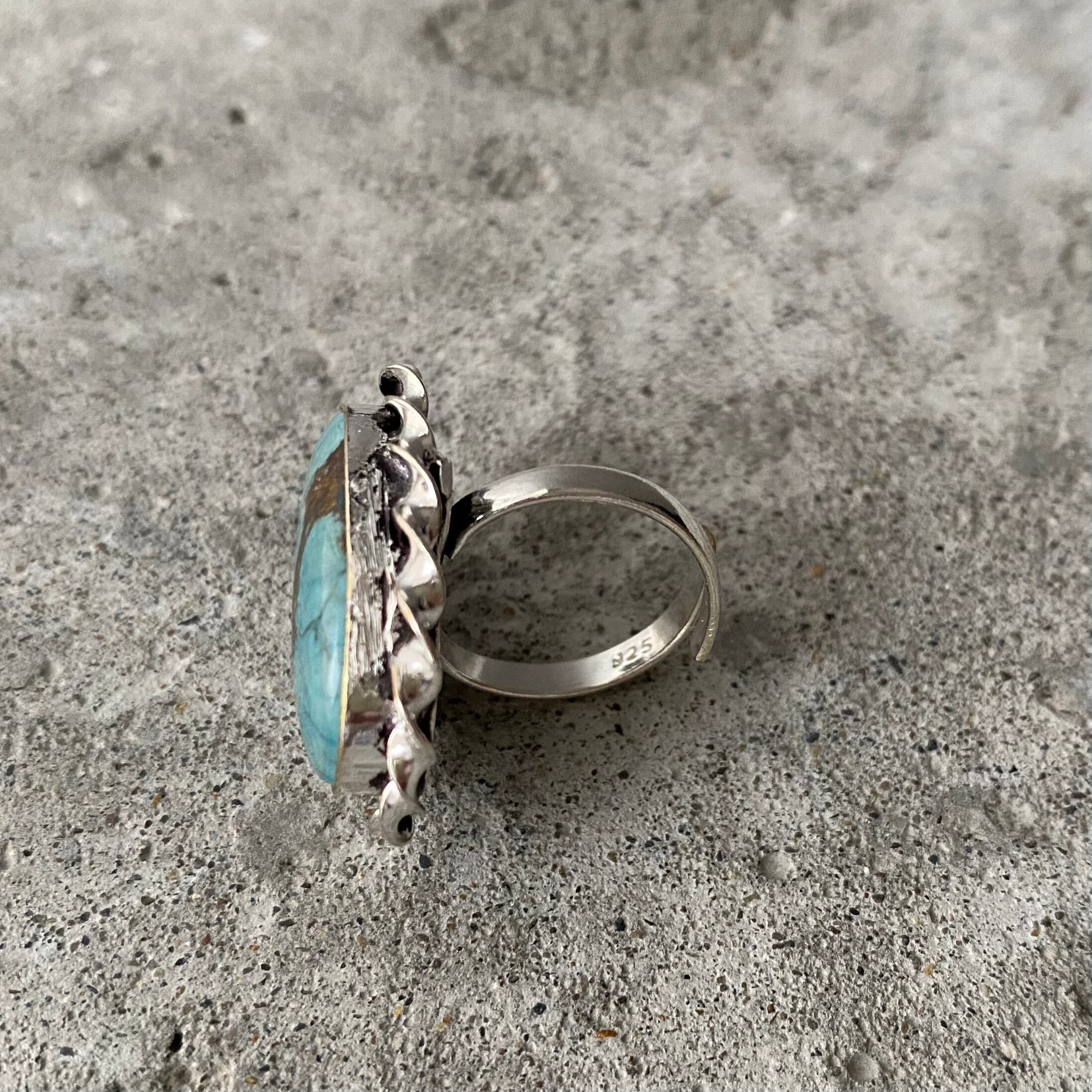 Retro natural stone turquoise hand made ring レトロ アクセサリー 天然石 ターコイズ ハンドメイド リング 指輪
