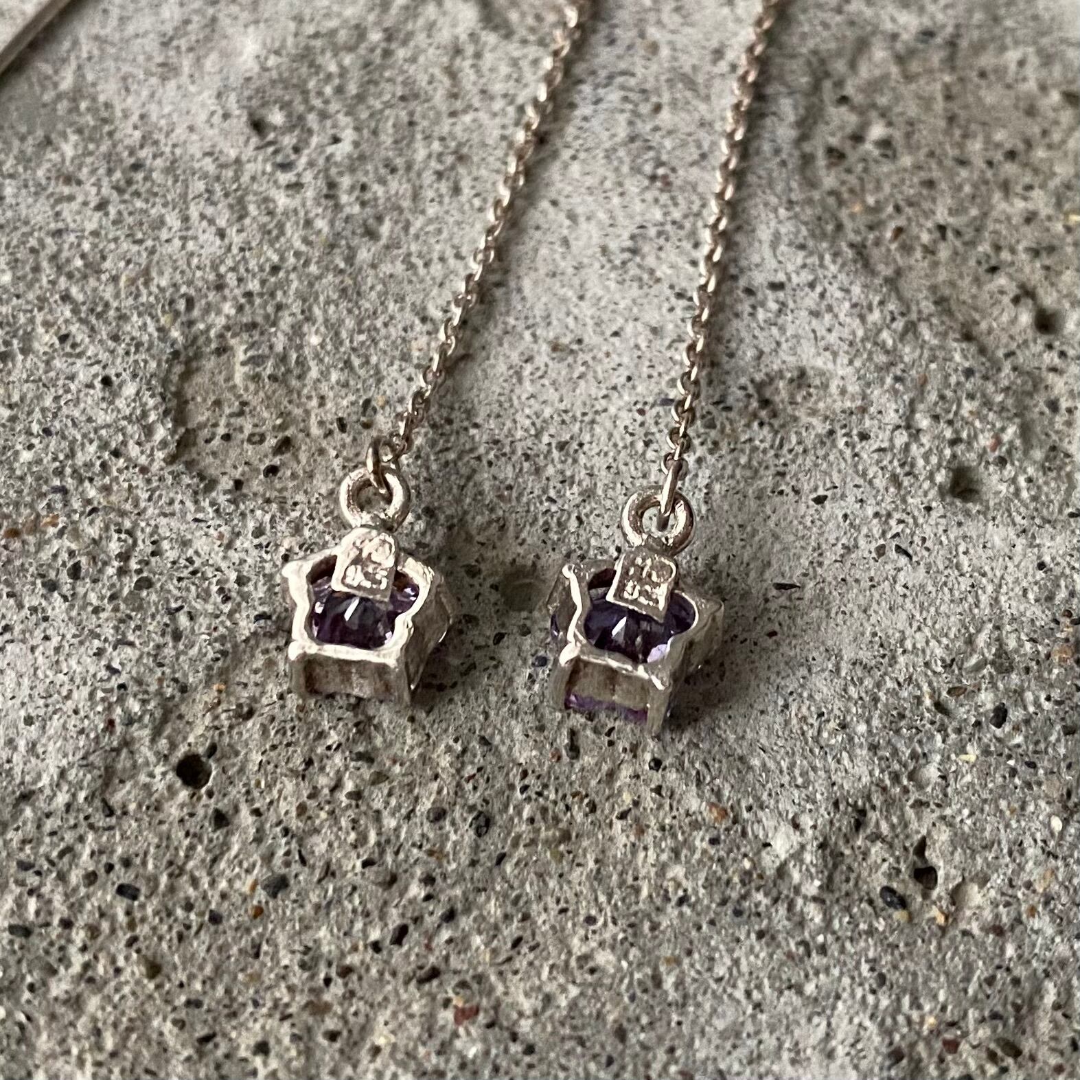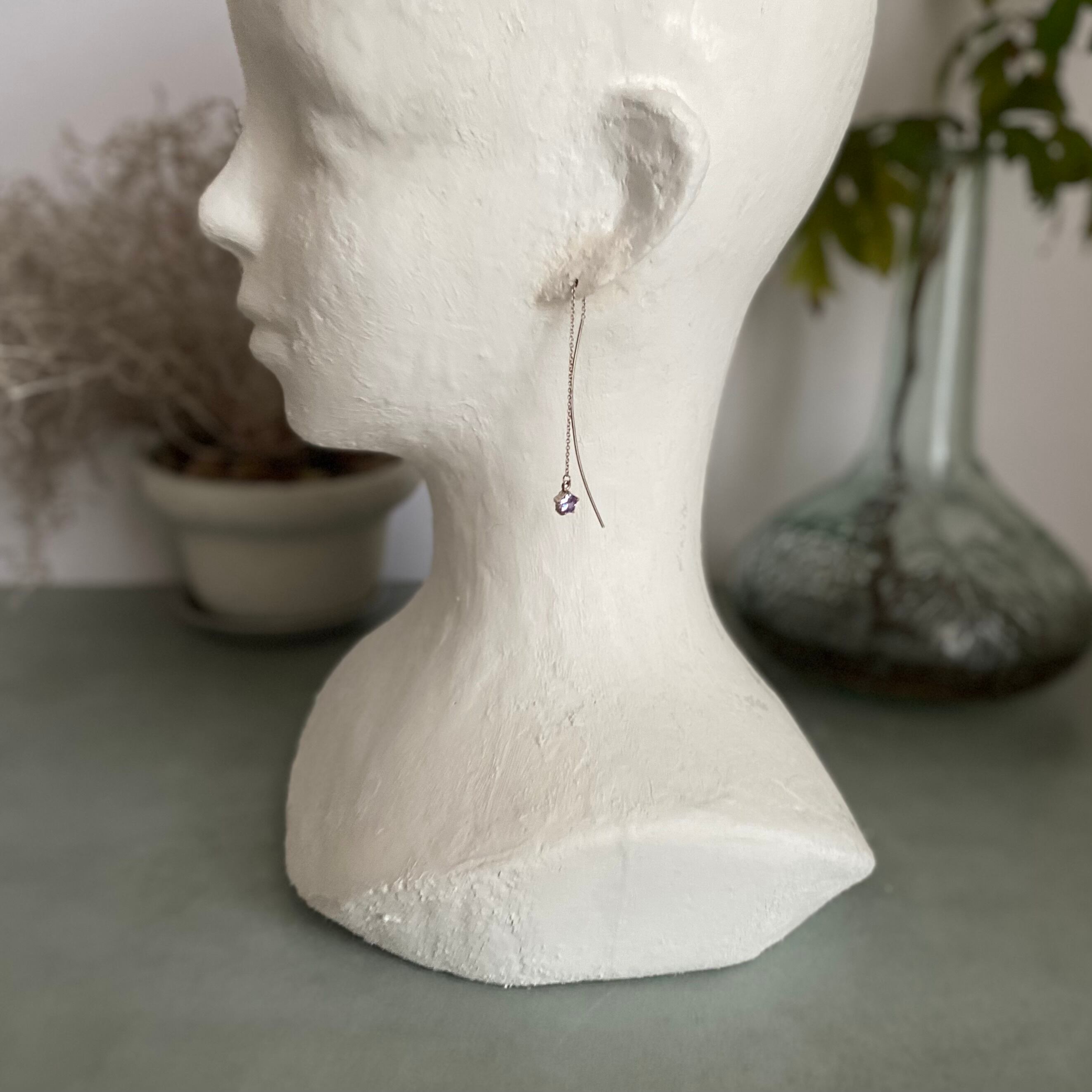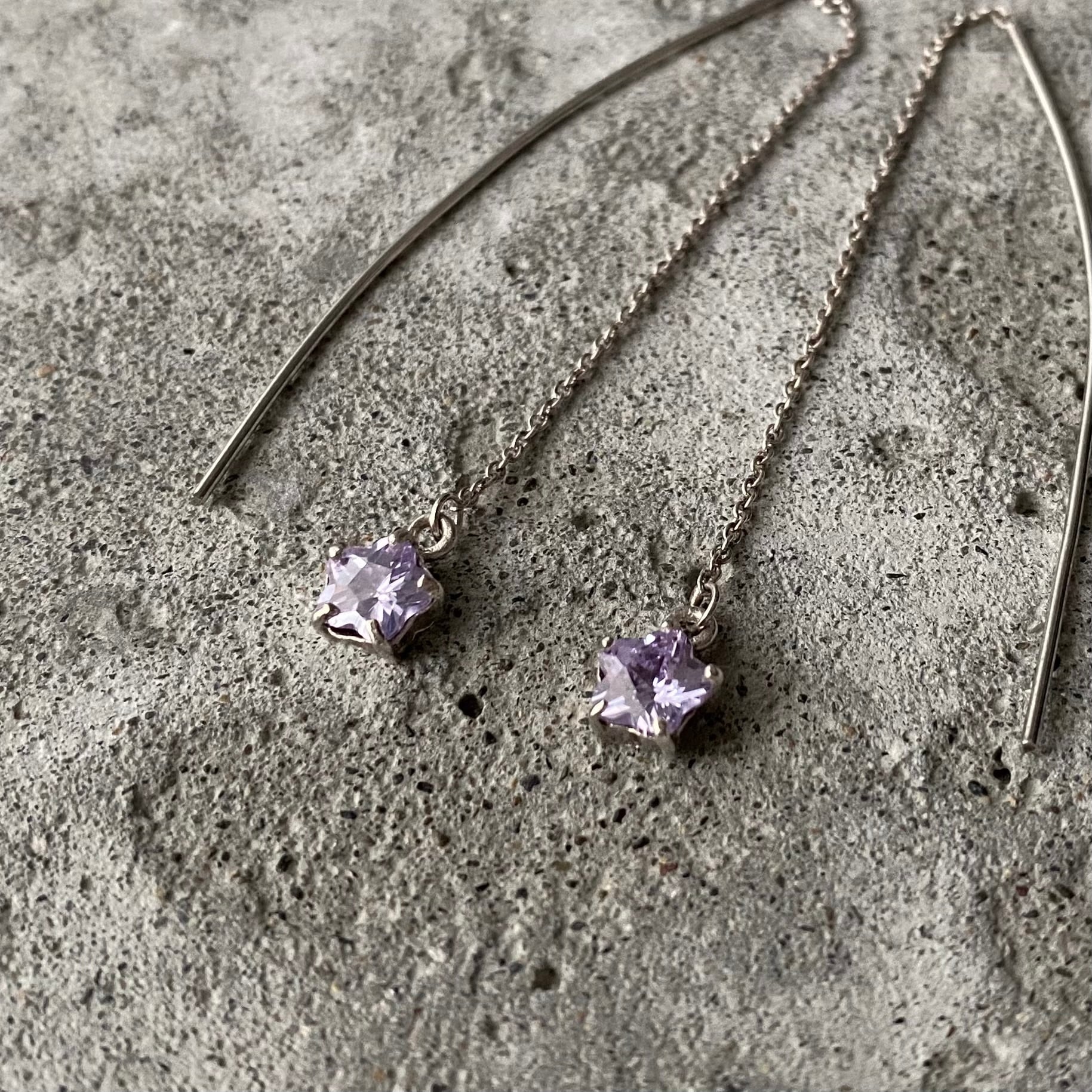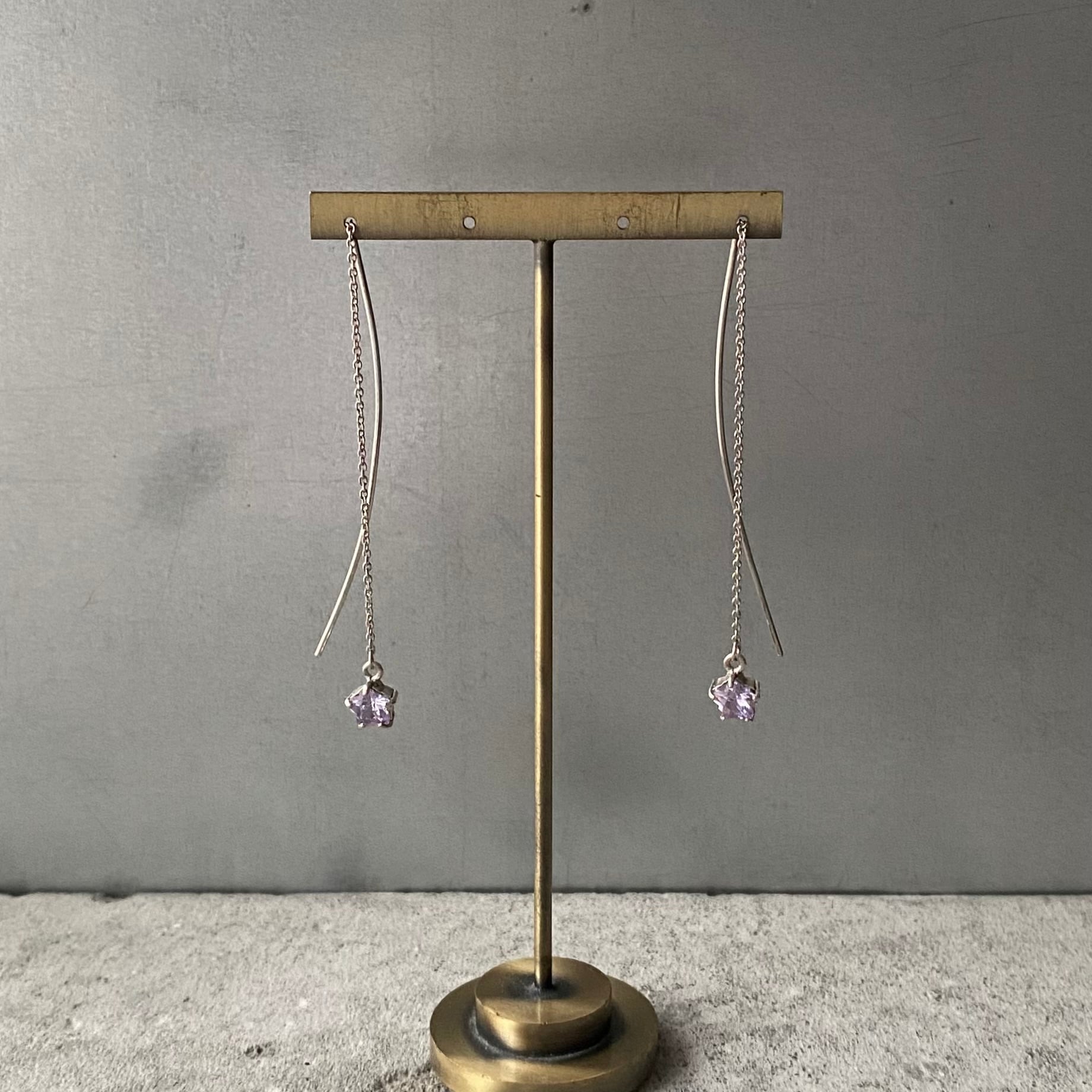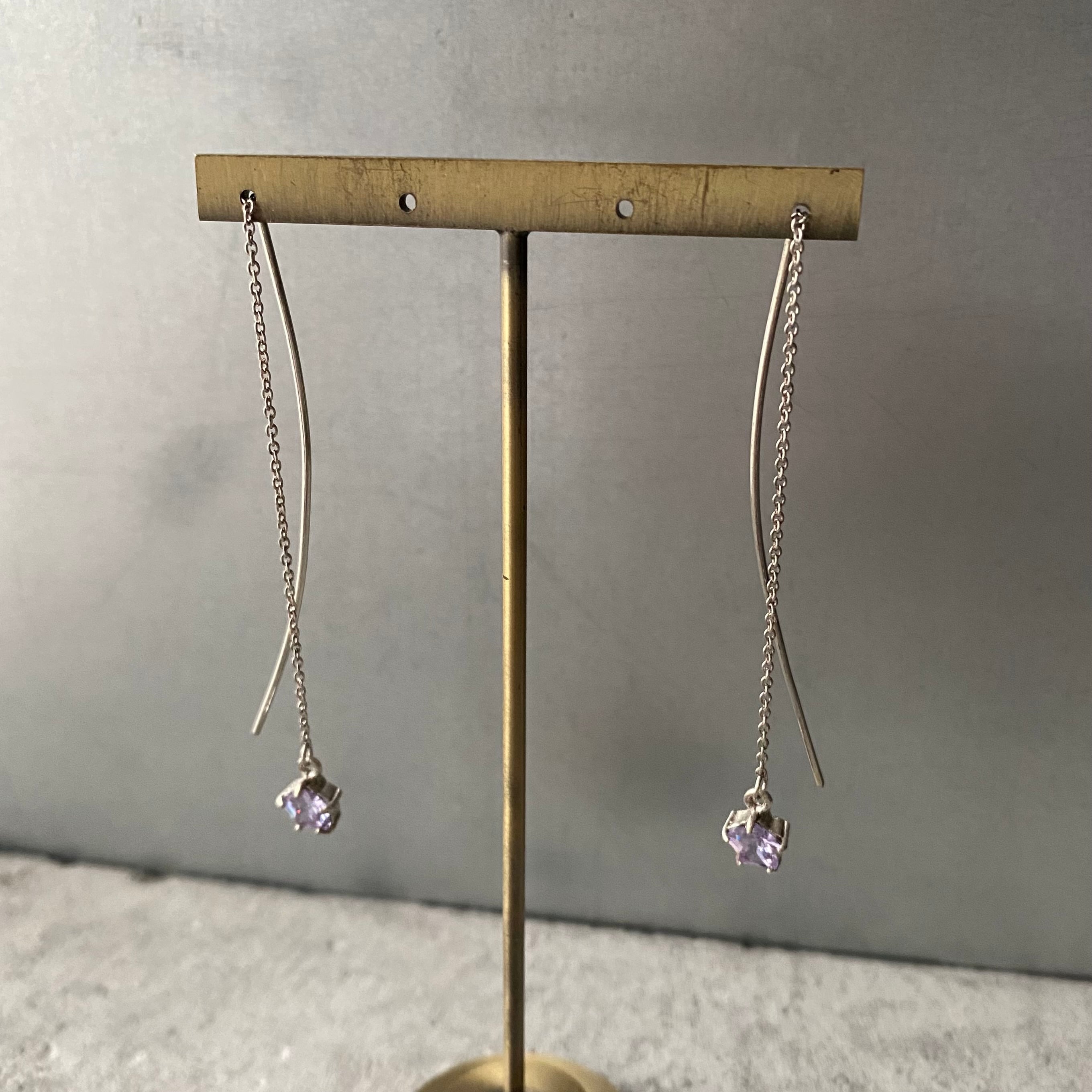 星型のキュービックジルコニアがキラキラと輝くUSAヴィンテージアメリカンピアス。繊細なチェーンと線材が揺らめく、シンプルながらスタイリッシュなデザインです。