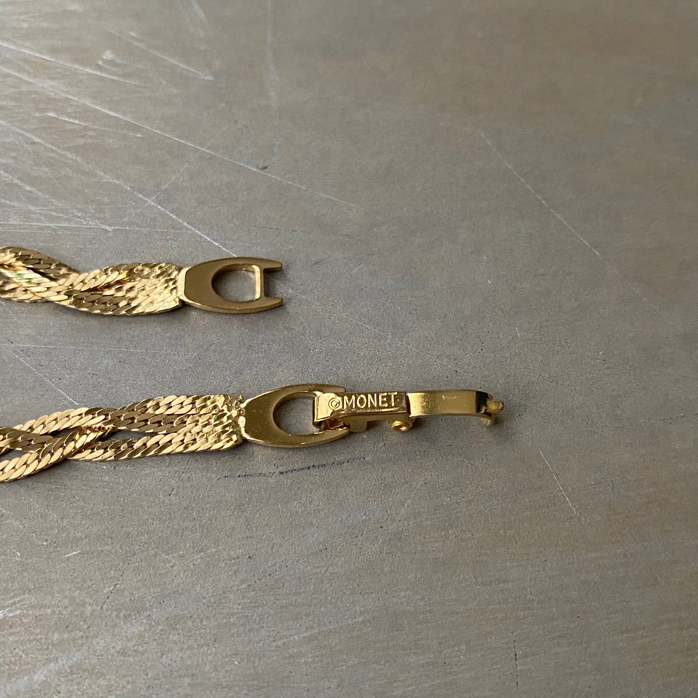 Vintage 70s-80s USA MONET gold tone braided chain bracelet レトロ アメリカ ヴィンテージ アクセサリー モネ ゴールド ブレイディッド チェーン ブレスレット