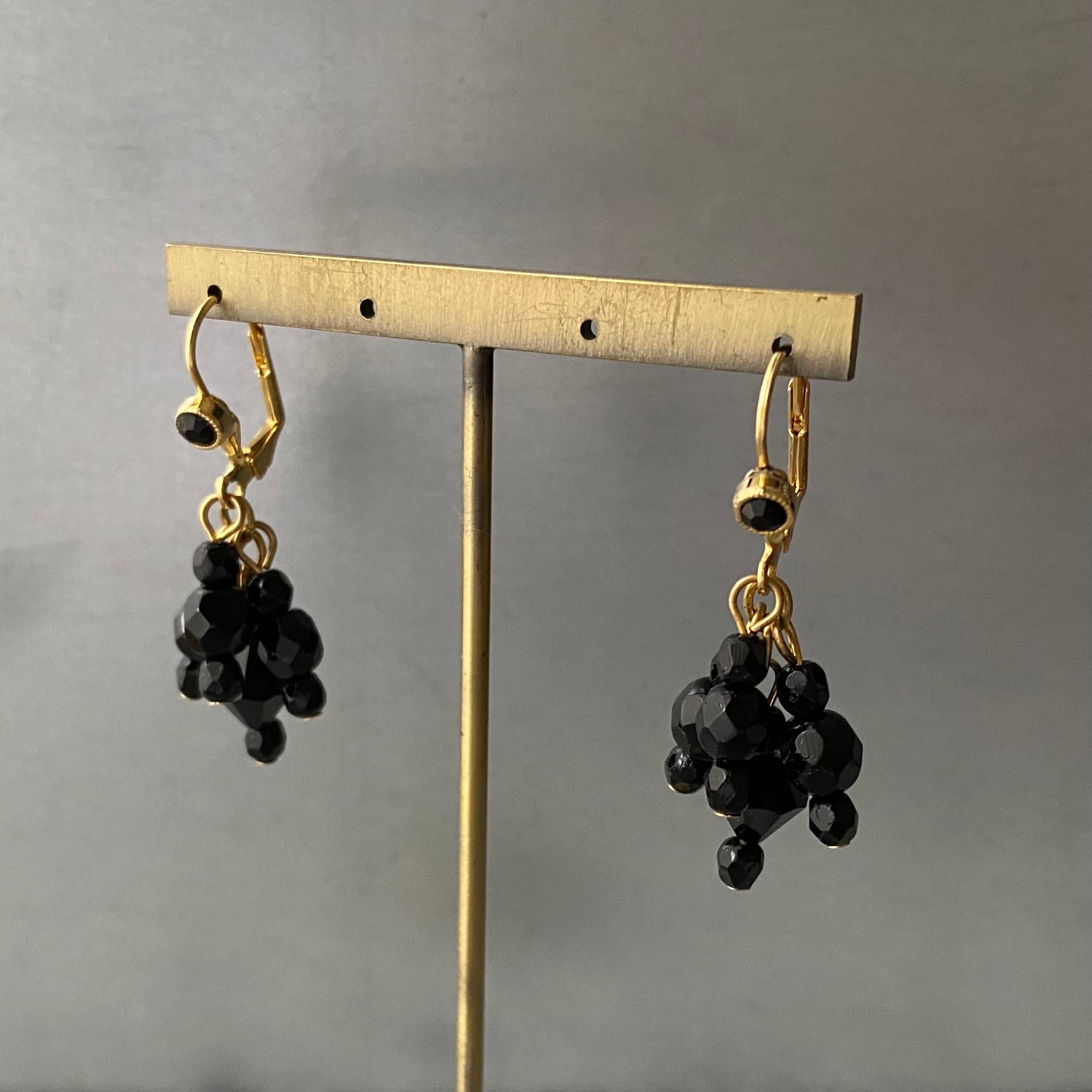 クラシカルな雰囲気のUSAヴィンテージピアス。ブラックビジューのタッセルが揺らめくお洒落なデザインです。
