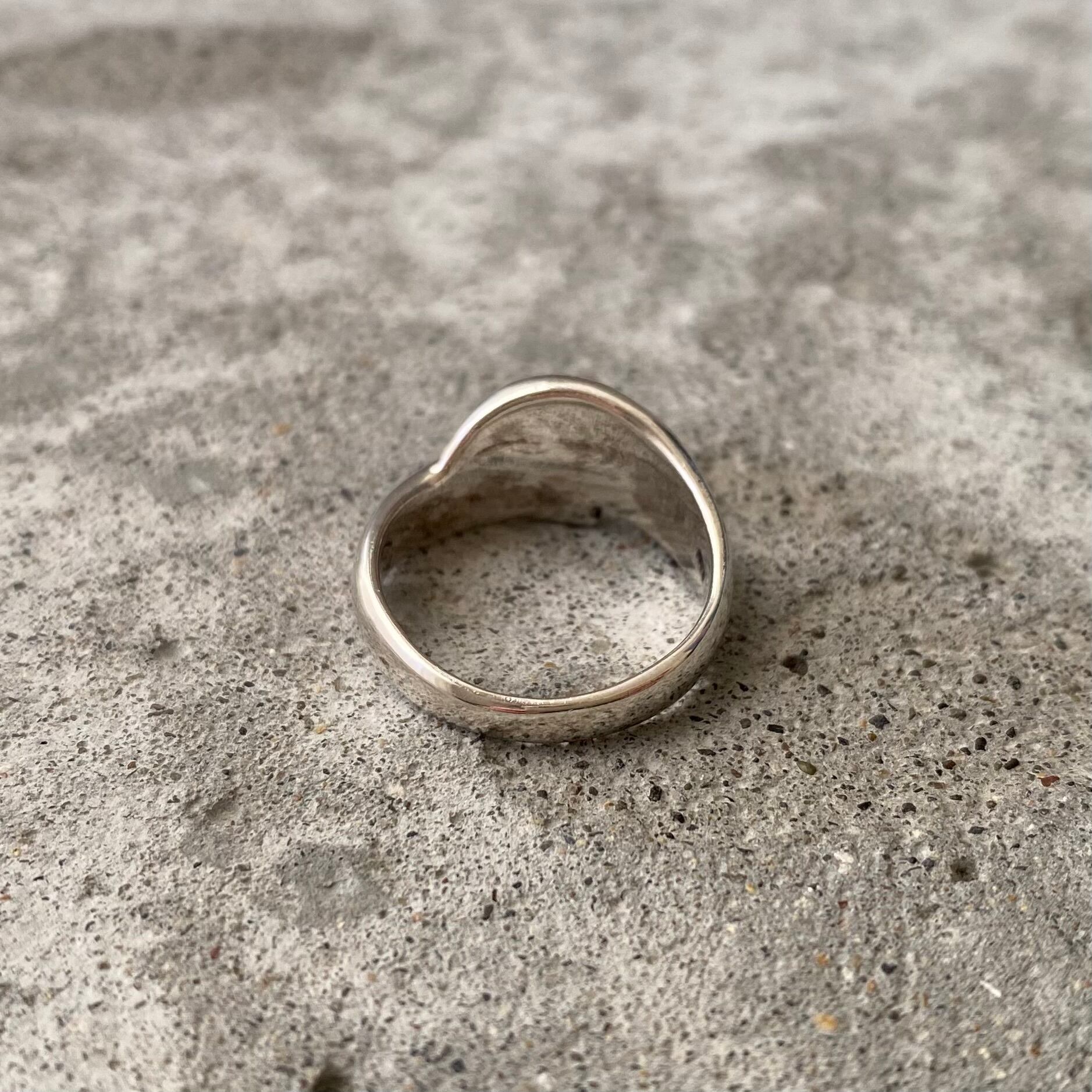 レトロな雰囲気のUSAヴィンテージリング。指を包み込むような柔らかなカーブが魅力的なデザイン。身につけやすい幅感で、シルバー925製ですのでお手入れをすることで長くお使い頂けます。