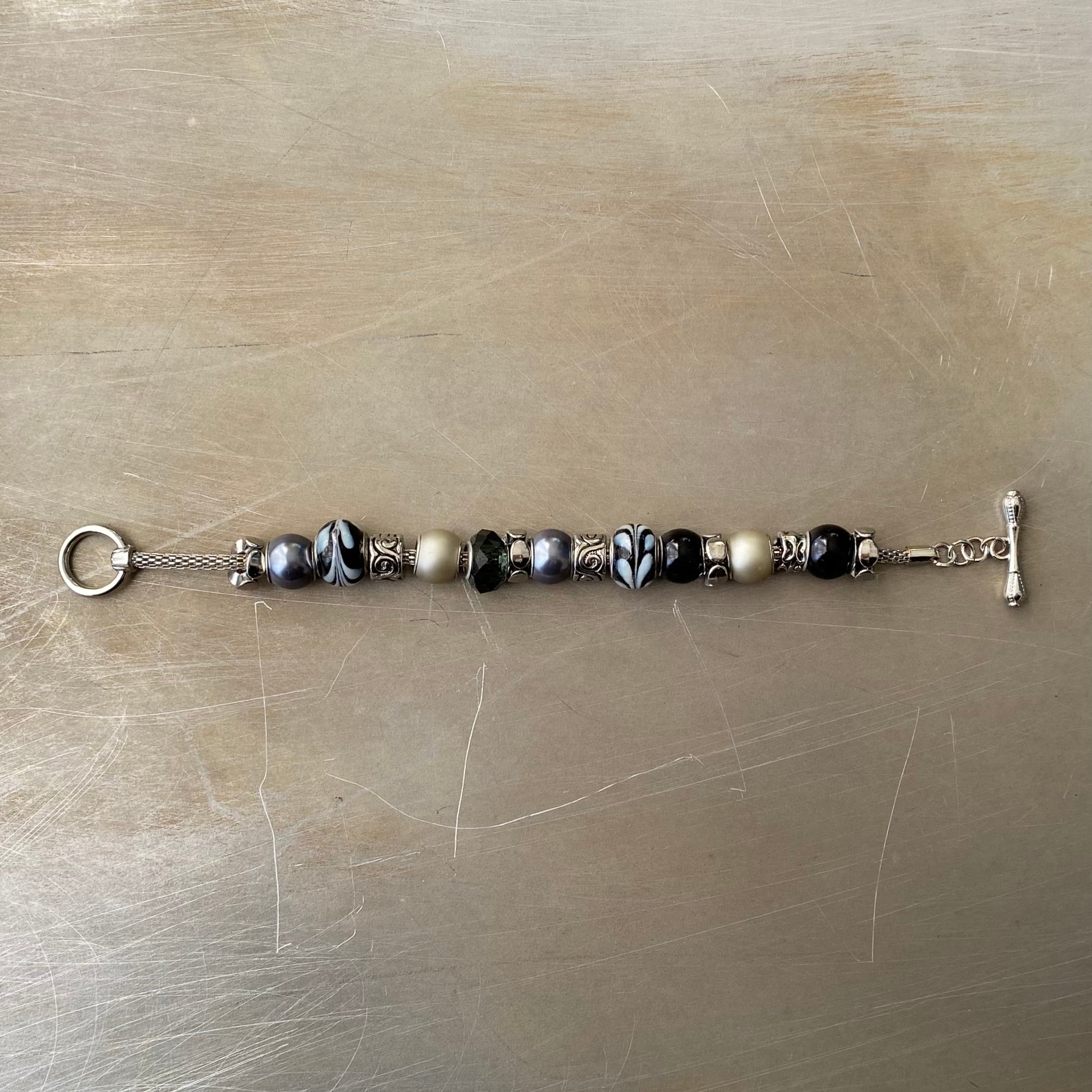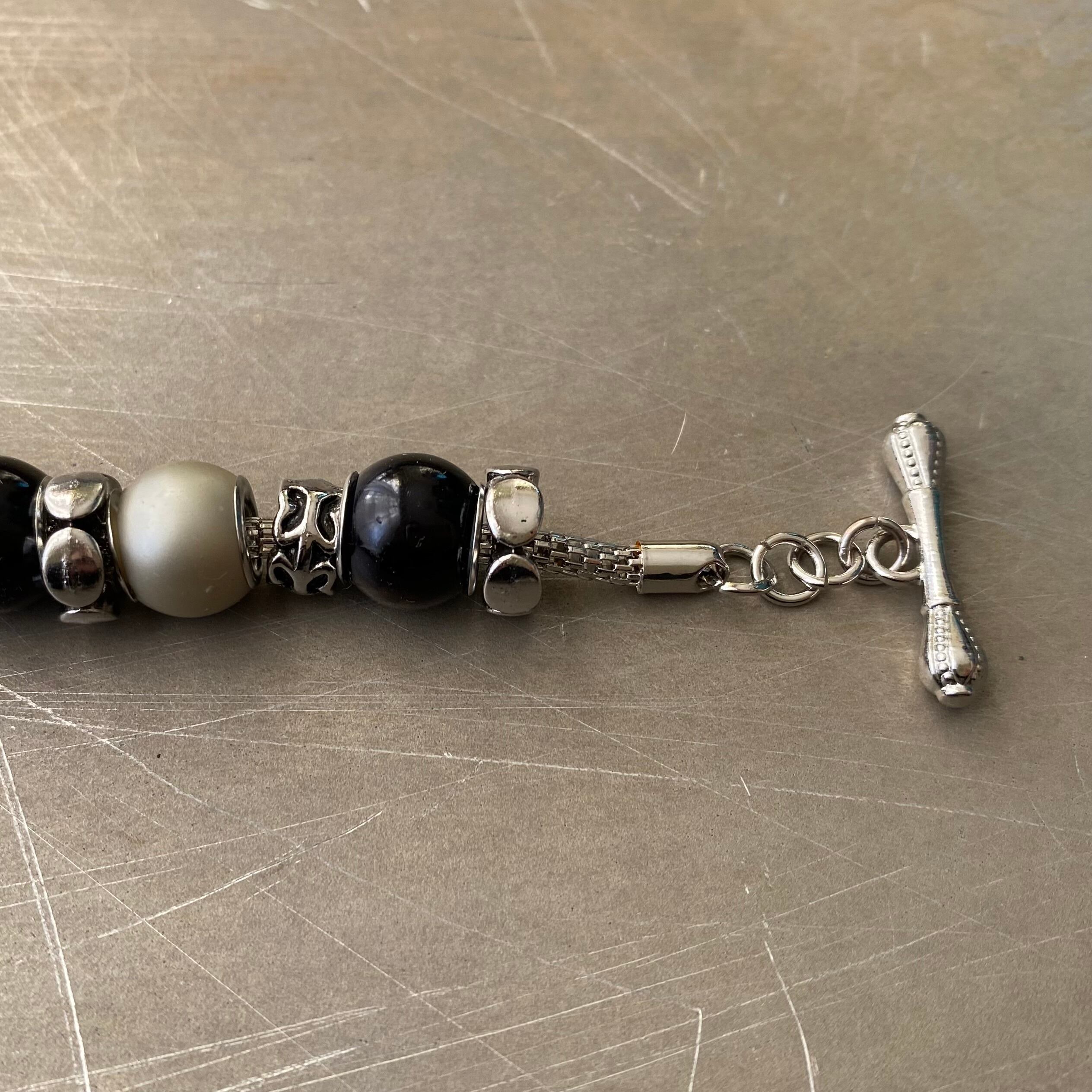 メンズサイズのUSAヴィンテージブレスレット。モノトーンのビーズがスタイリングに映えるお洒落なデザインです。