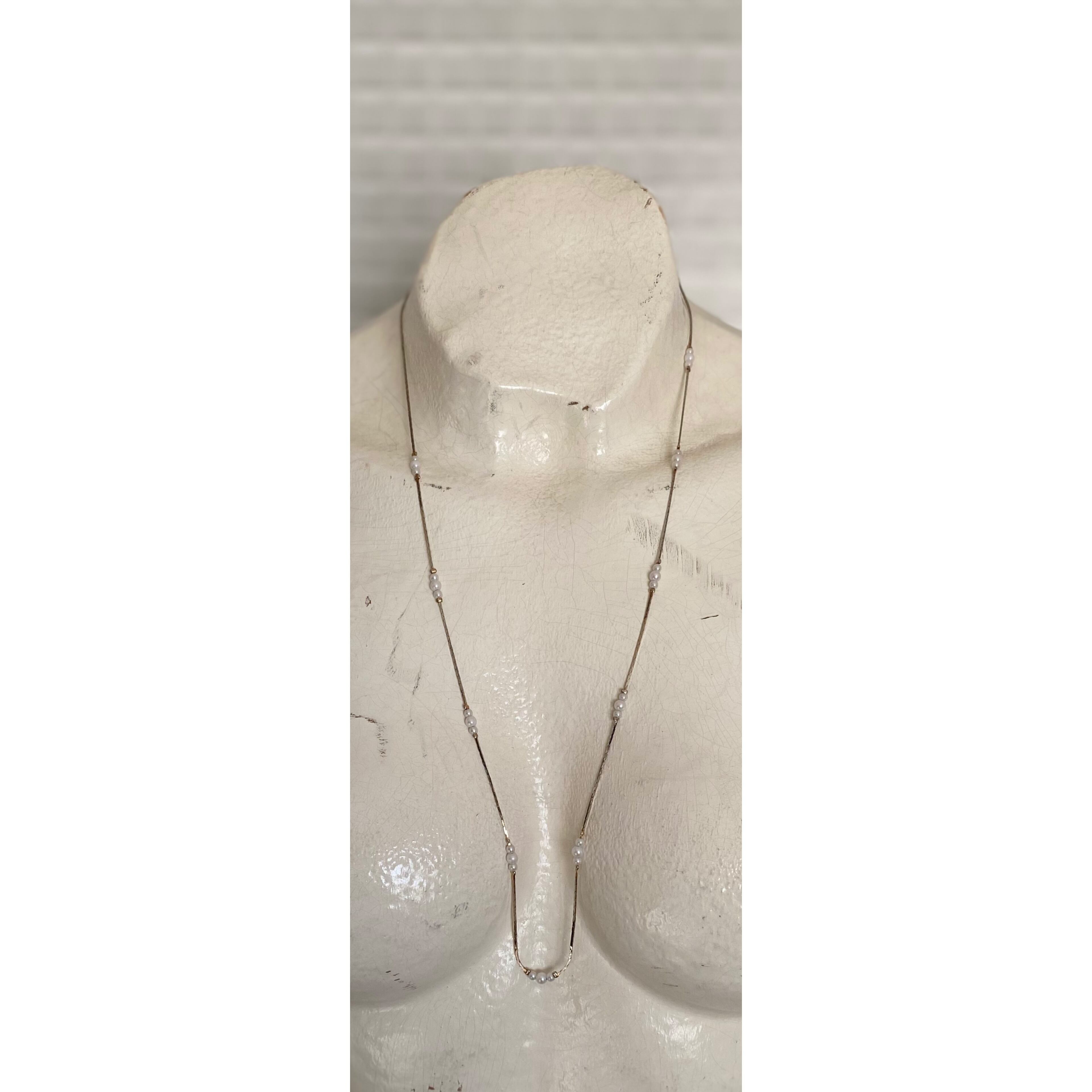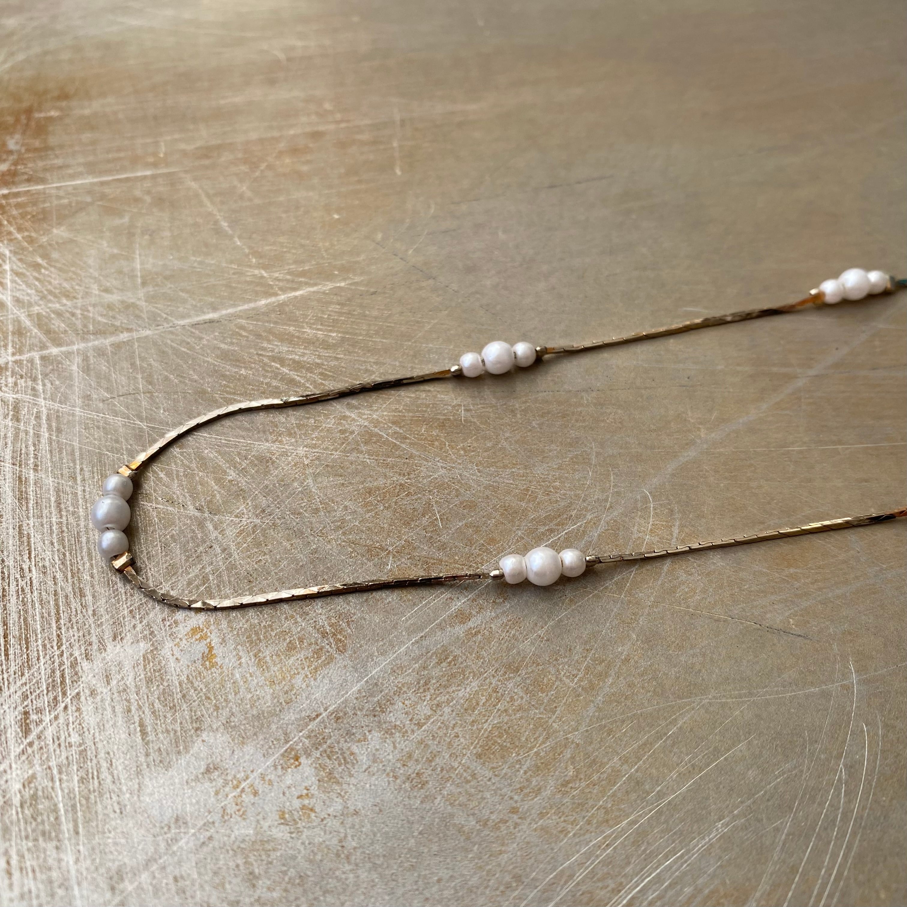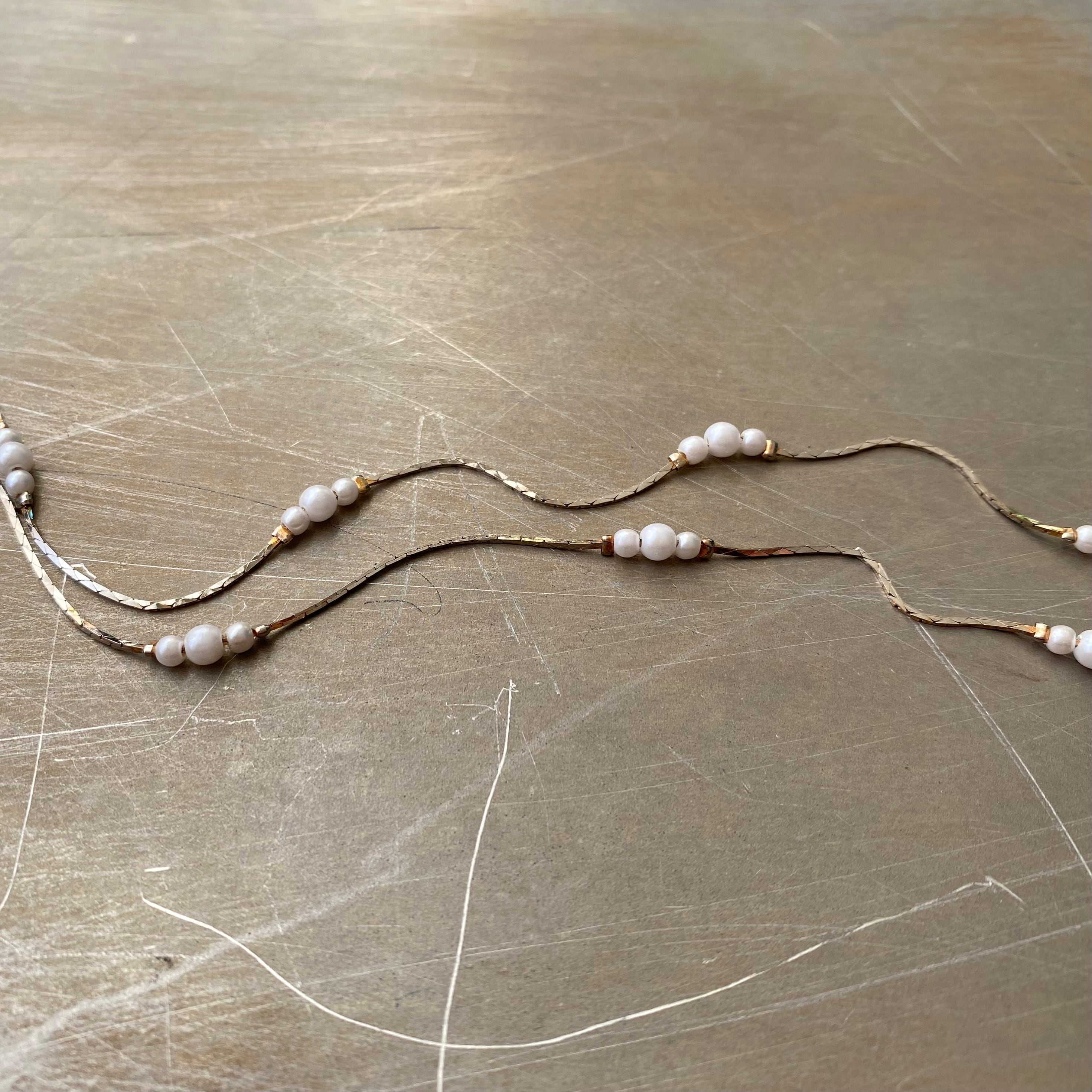 キラキラと輝く繊細なチェーンに小さなパールが散りばめられたUSAヴィンテージネックレス。スタイリング合わせて2連でお使いいただくのもおすすめです。