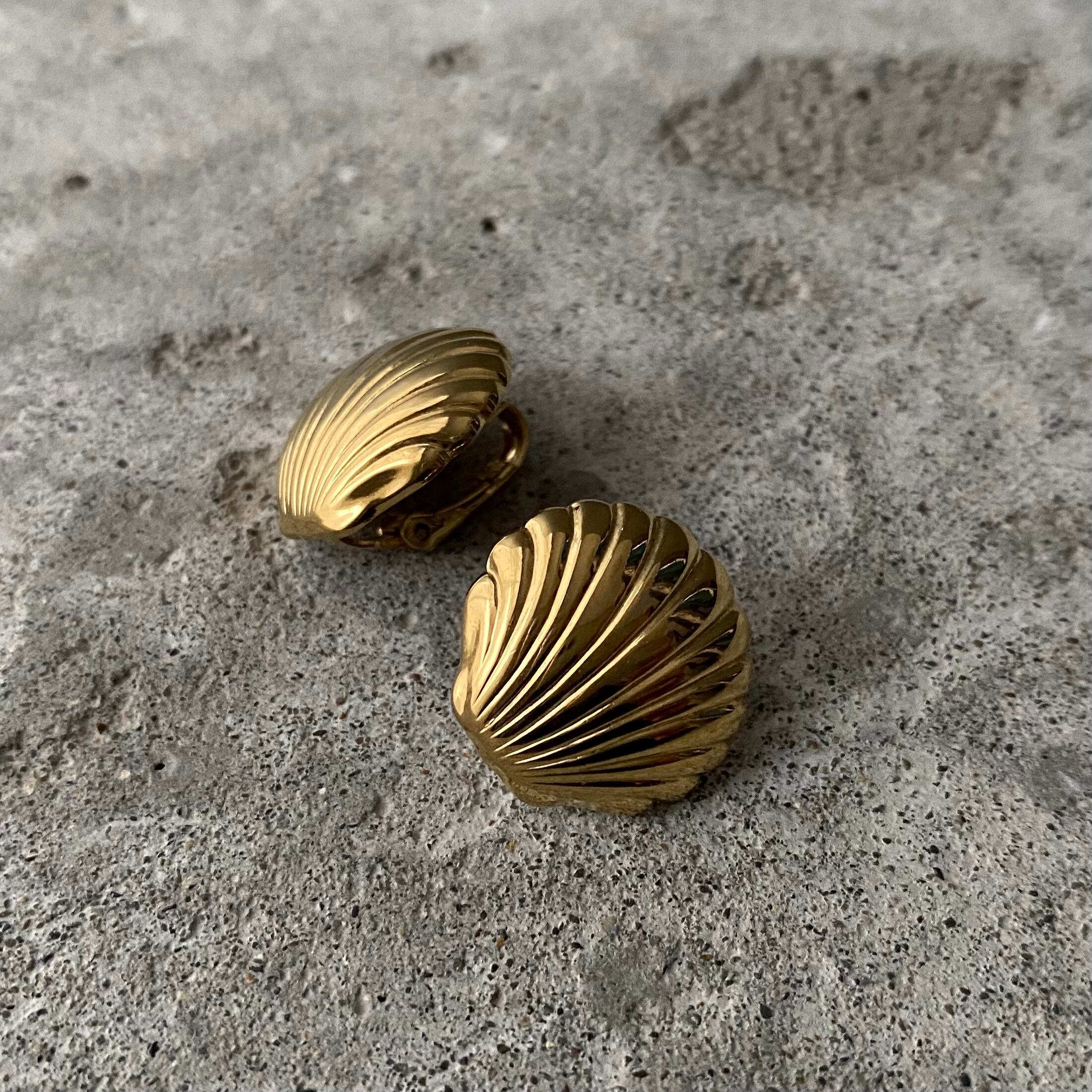 クラシカルなシェルモチーフのUSAヴィンテージイヤリング。身につけやすいサイズ感で古着やレトロスタイルにもおすすめです。