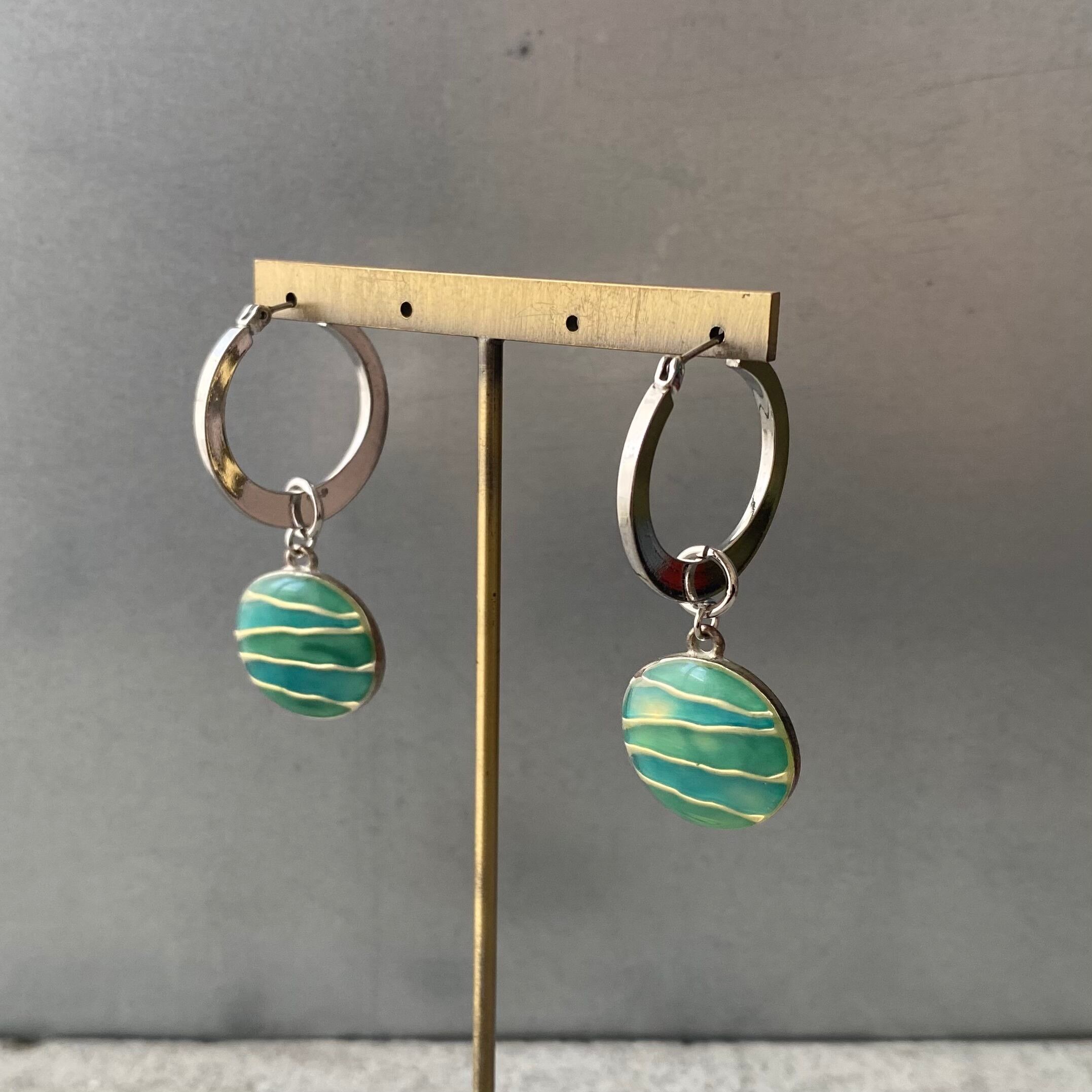 Vintage 90s-00s USA green enamel hoop pierces レトロ アメリカ ヴィンテージ アクセサリー グリーン エナメル フープ ピアス