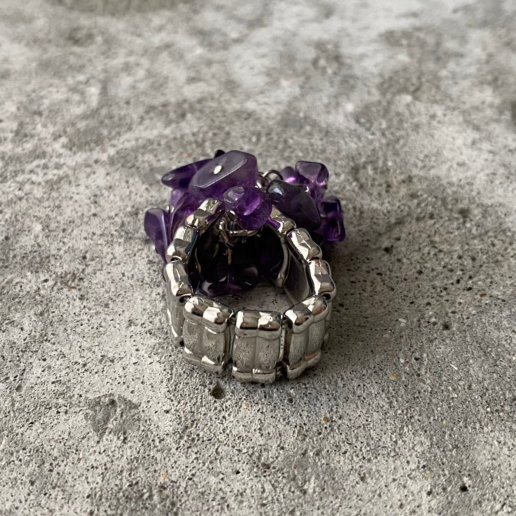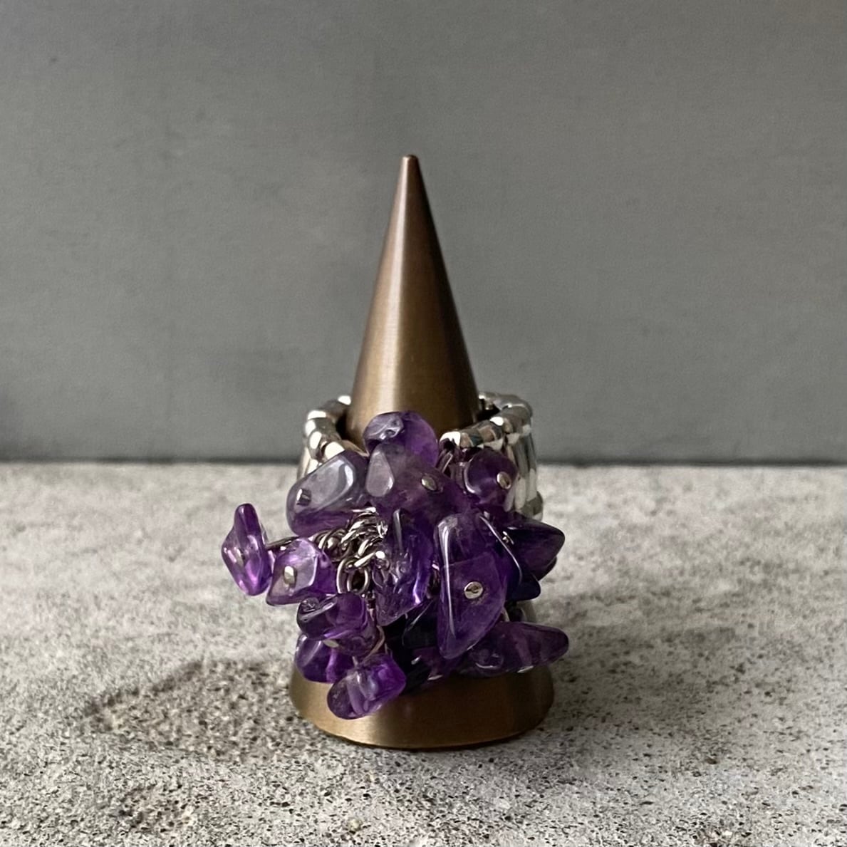 ラフカットのアメジストがジャラジャラと揺れ動くUSAヴィンテージリング。ほどよいボリューム感でコーディネートの差し色におすすめです。