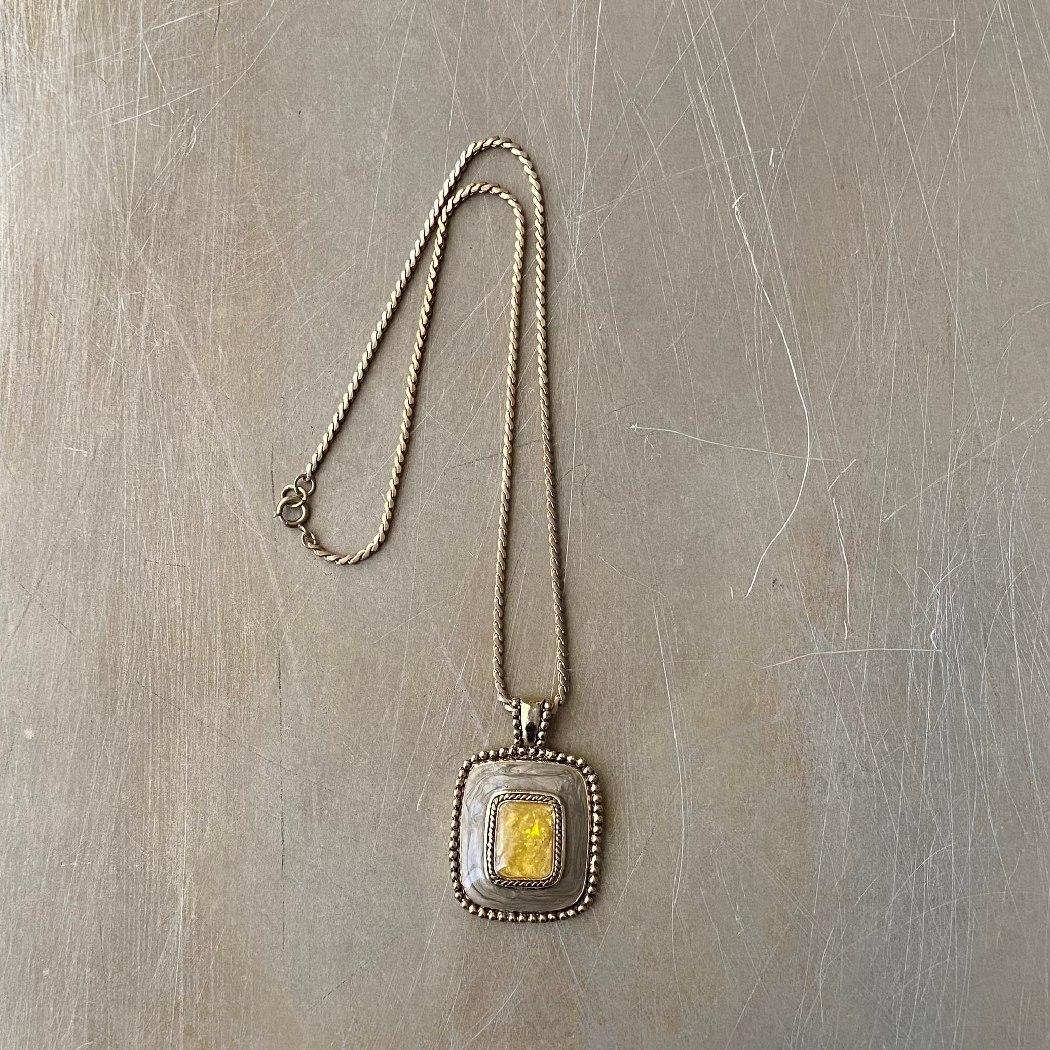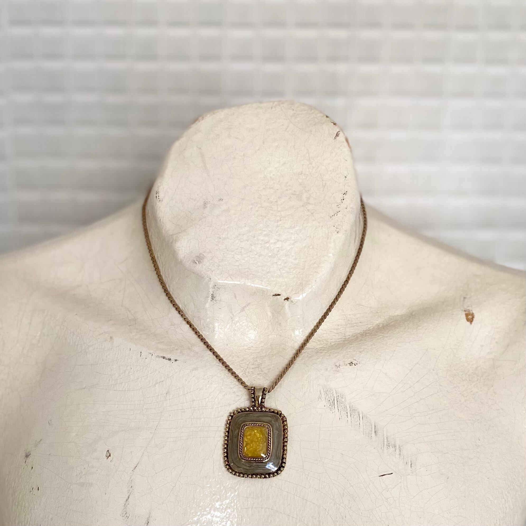 Vintage USA KENNETH COLE retro yellow×gray enamel necklace レトロ アメリカ ヴィンテージ アクセサリー ケネスコール イエロー×グレー エナメル ネックレス