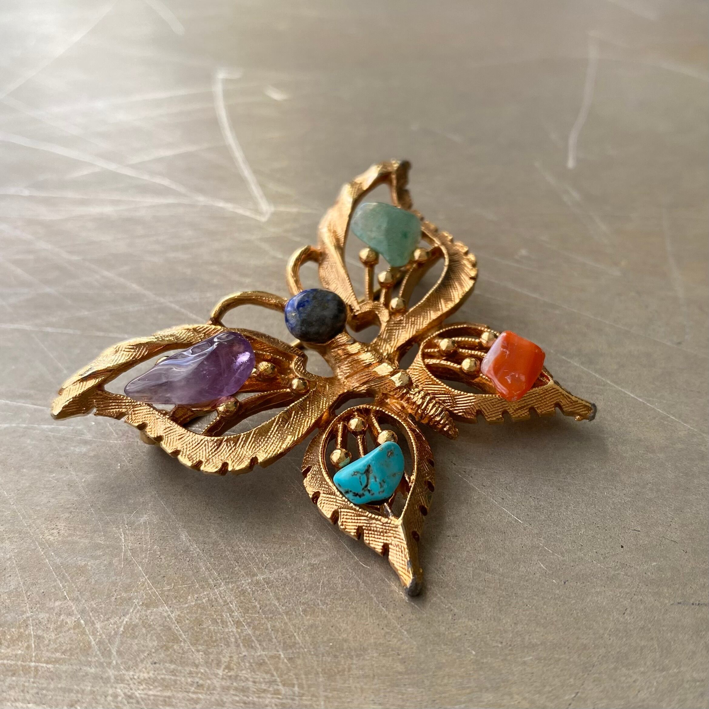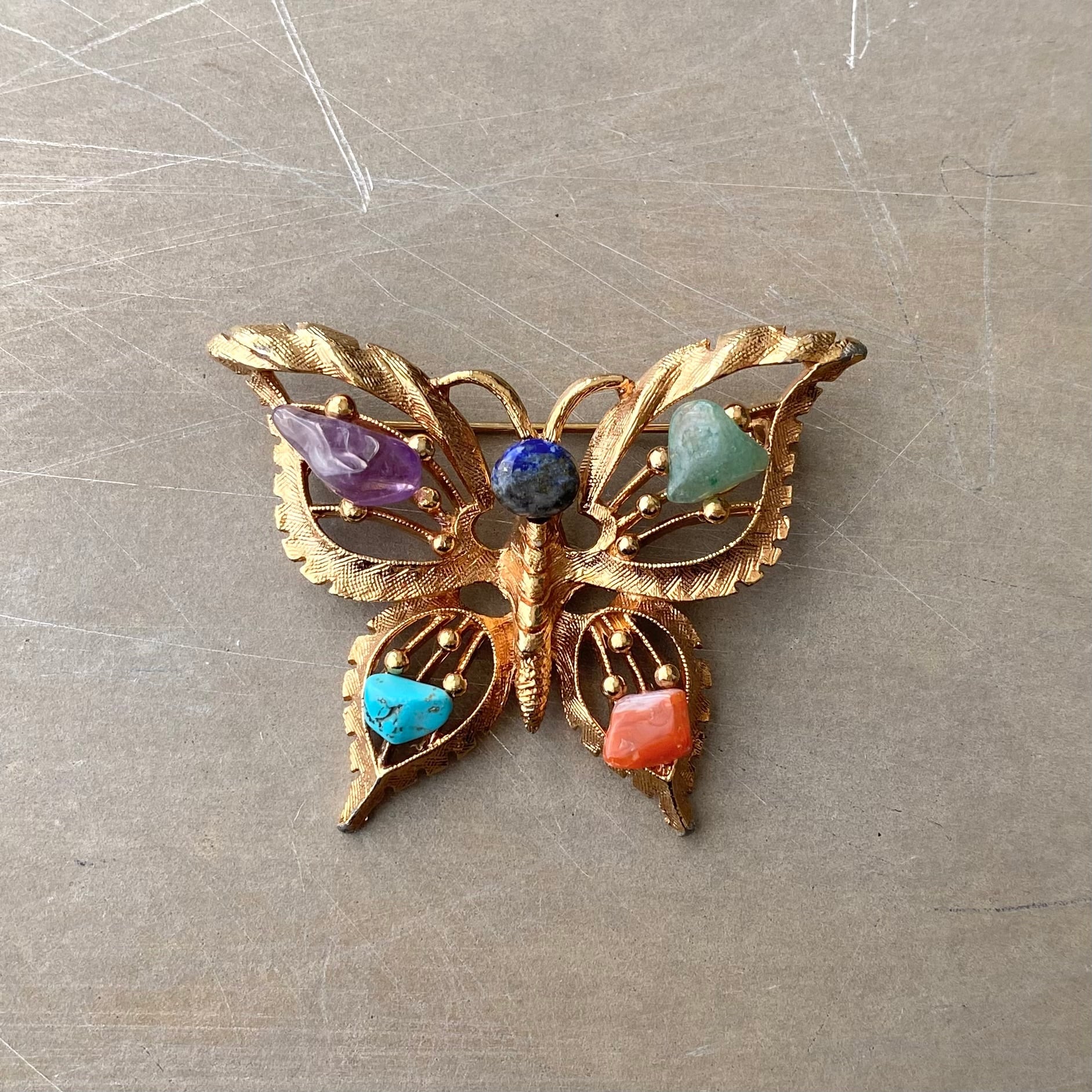 Vintage 60s-70s USA retro multicolor natural stone butterfly brooch レトロ アメリカ ヴィンテージ アクセサリー マルチカラー 天然石 バタフライ 蝶々 ブローチ