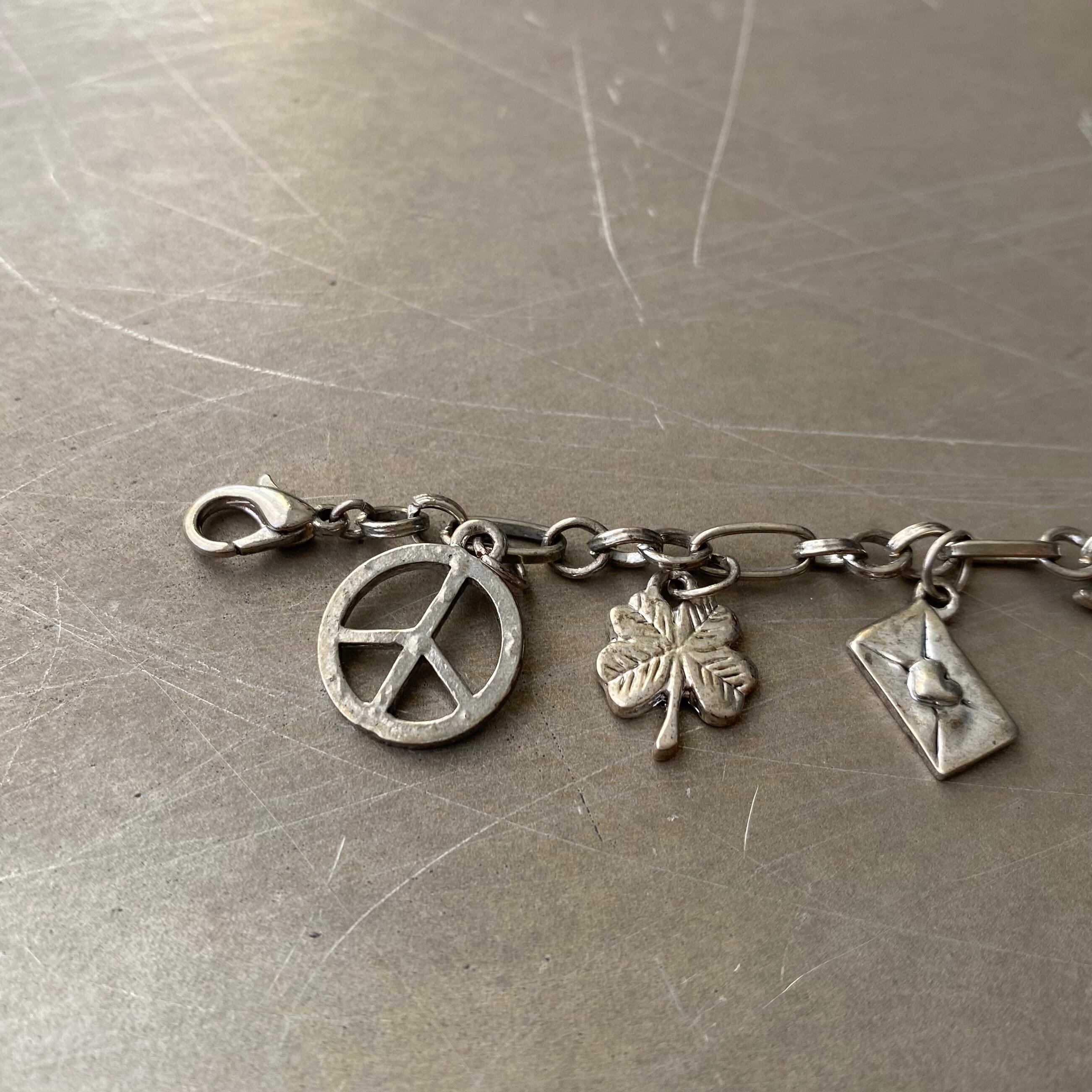 Vintage 80s-90s USA retro lucky charm silver tone bracelet レトロ アメリカ ヴィンテージ アクセサリー ラッキーチャーム シルバー ブレスレット
