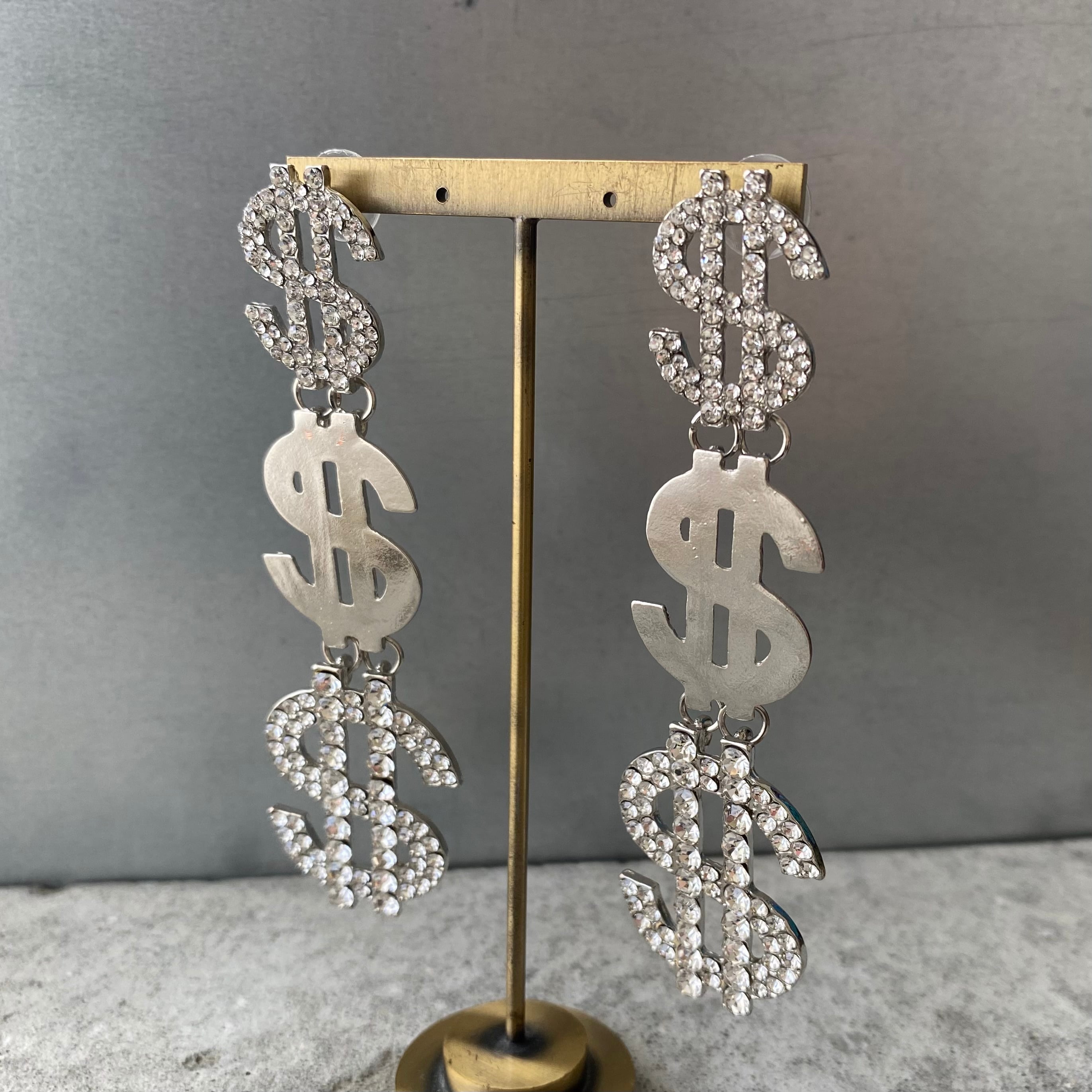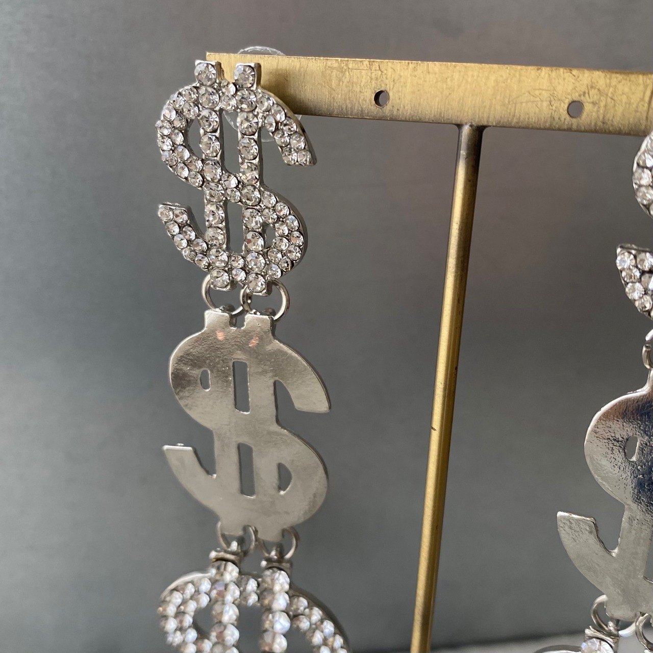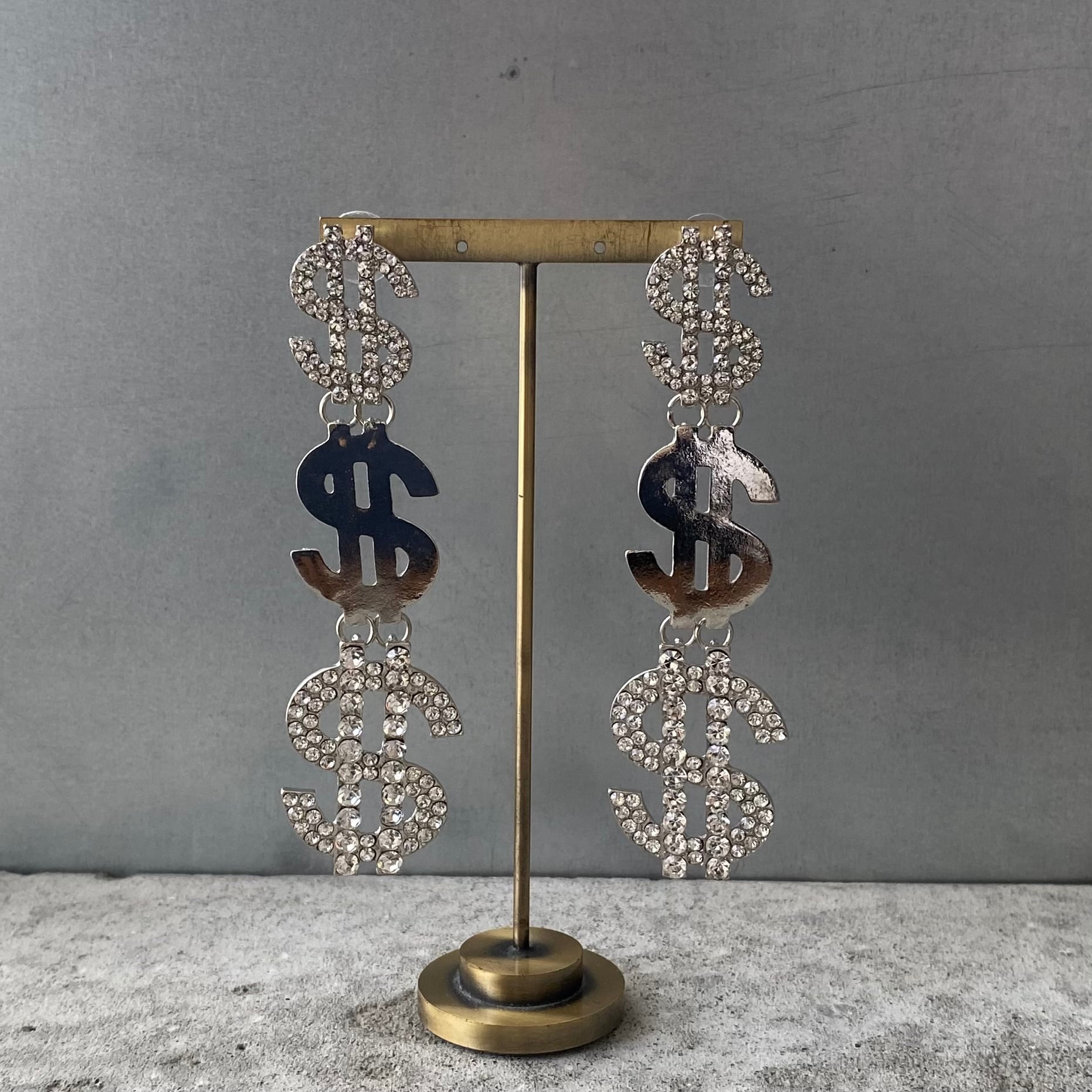 Vintage 90s-00s USA crystal bijou dollar design pierces レトロ アメリカ ヴィンテージ アクセサリー クリスタル ビジュー ドル デザイン ピアス