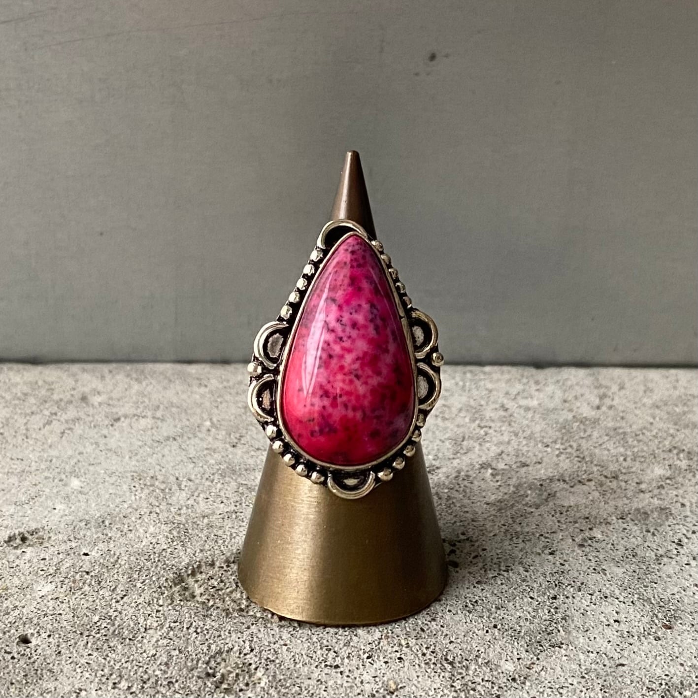 Retro pink color drop stone hand made ring レトロ アクセサリー ピンク ドロップ ストーン ハンドメイド リング 指輪