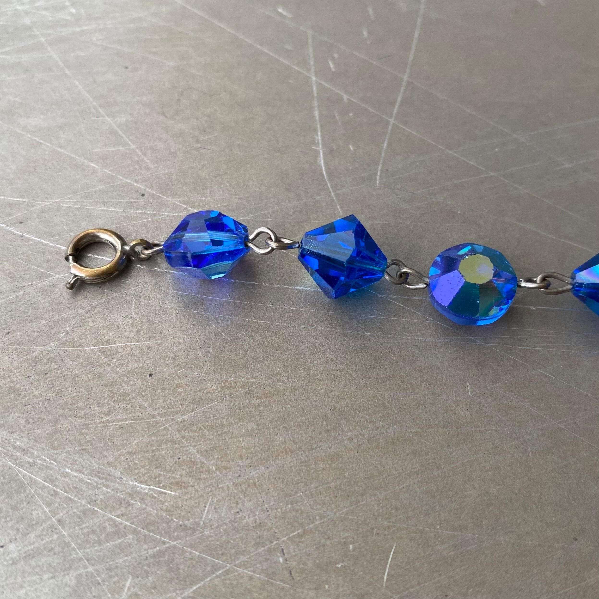 Vintage 70s-80s USA retro blue bijou beads bracelet レトロ アメリカ ヴィンテージ アクセサリー マルチカラー ブルー ビジュー ガラス ビーズ ブレスレット