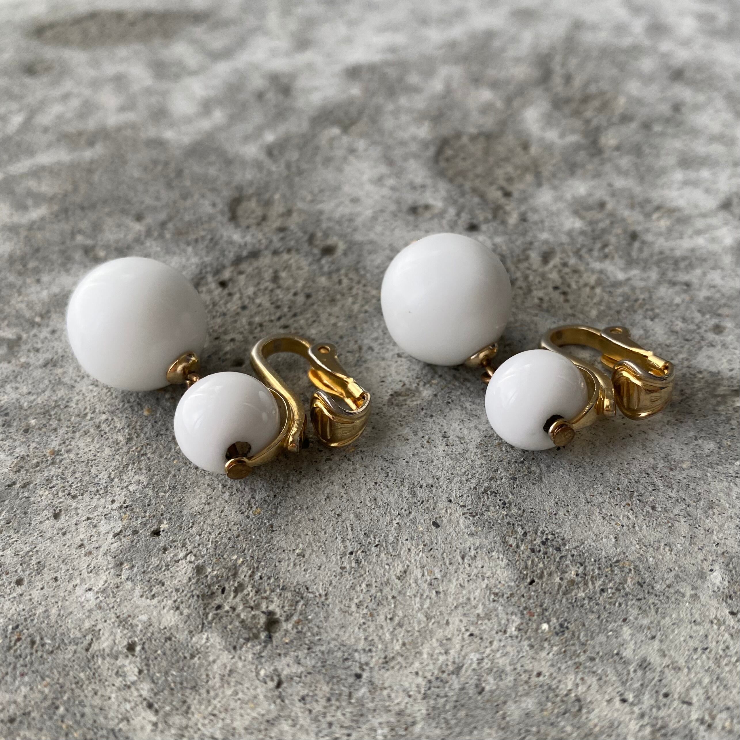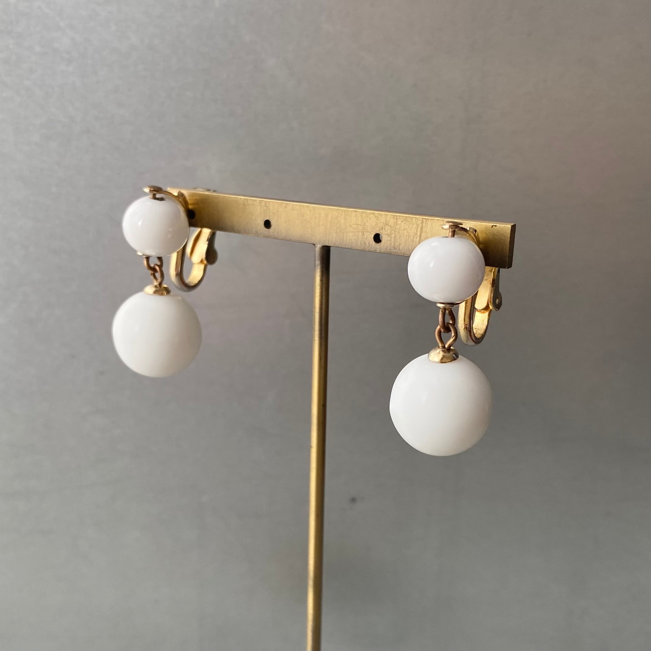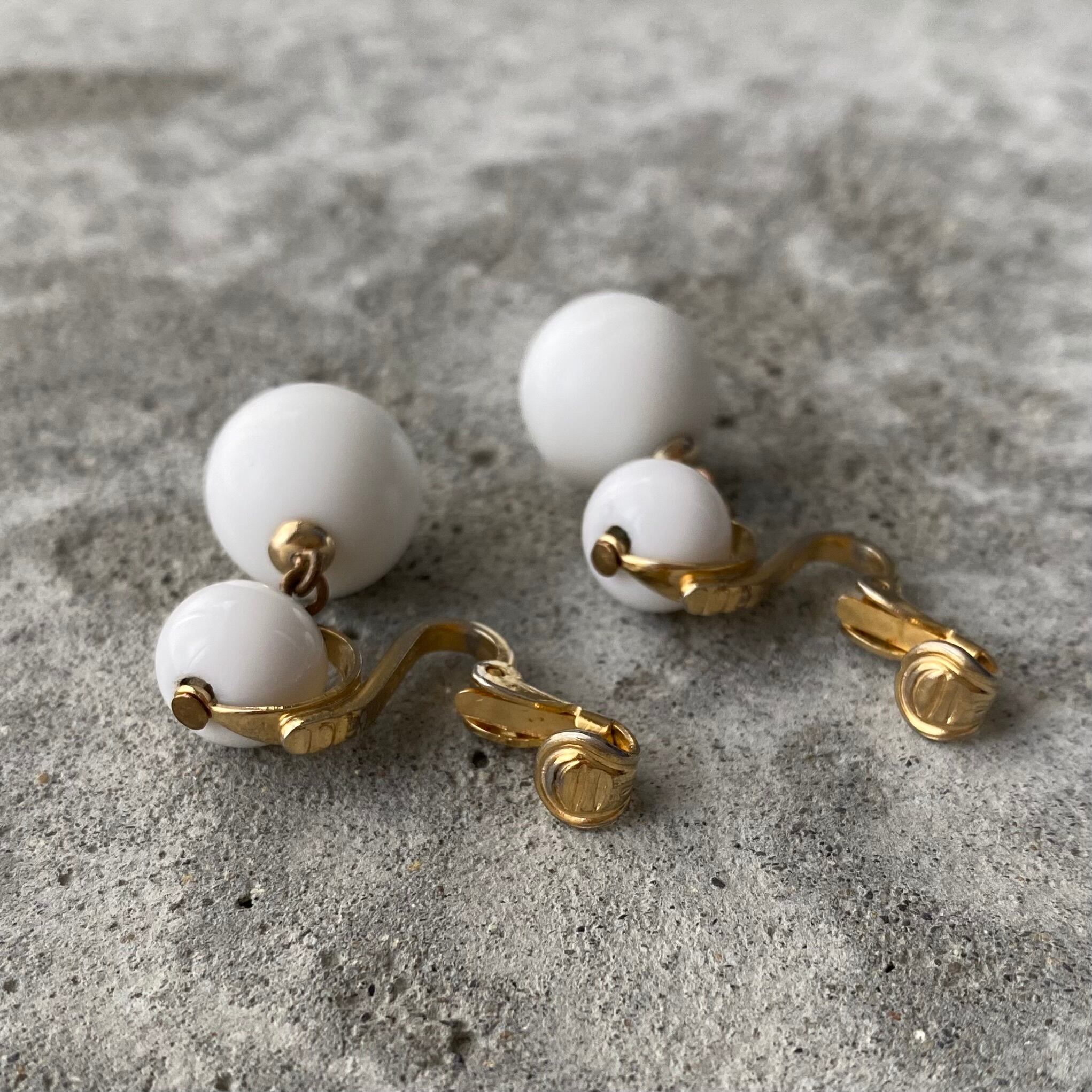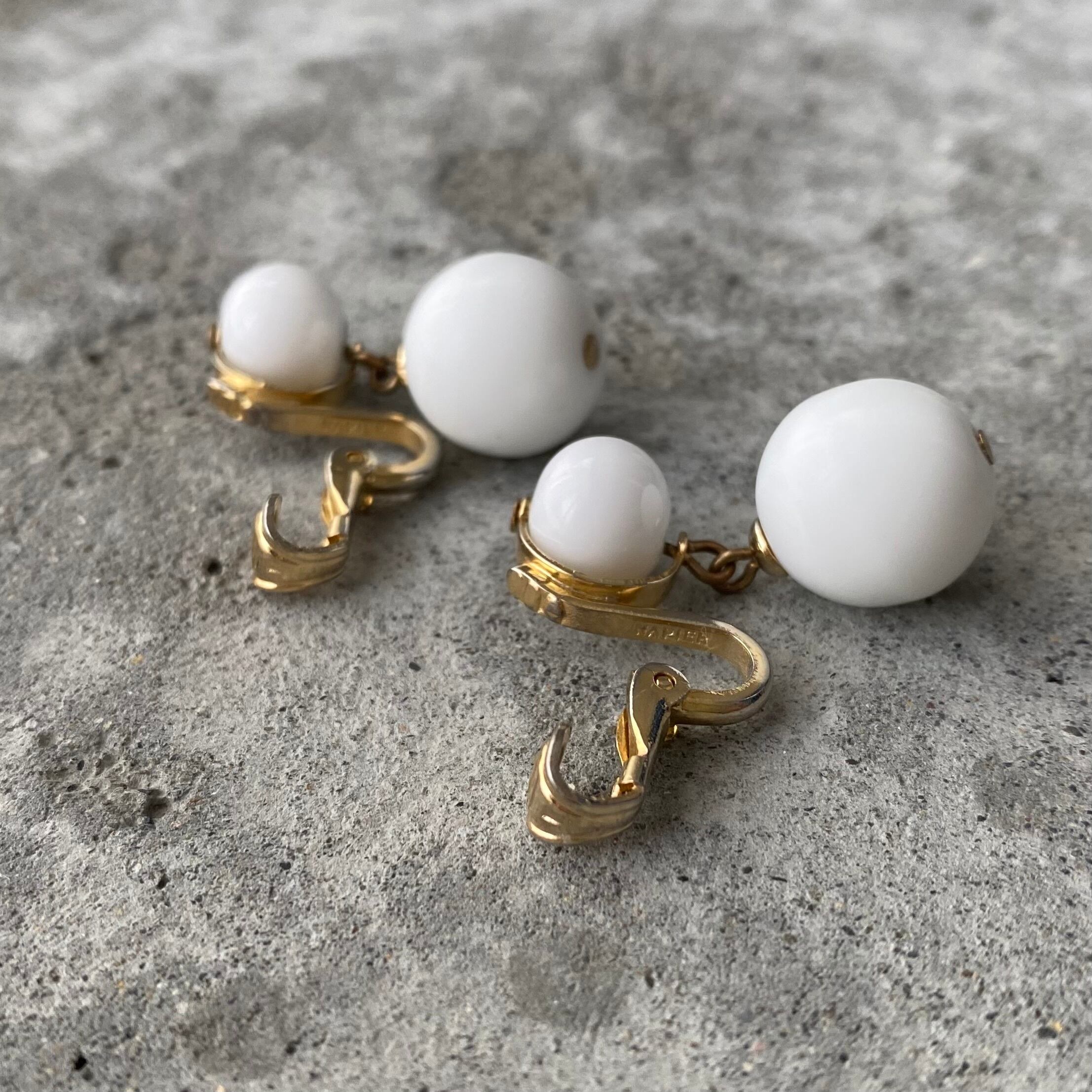 Vintage 60s USA NAPIER white glass beads earring レトロ アメリカ ヴィンテージ アクセサリー ネイピア ホワイト 白 ガラスビーズ イヤリング