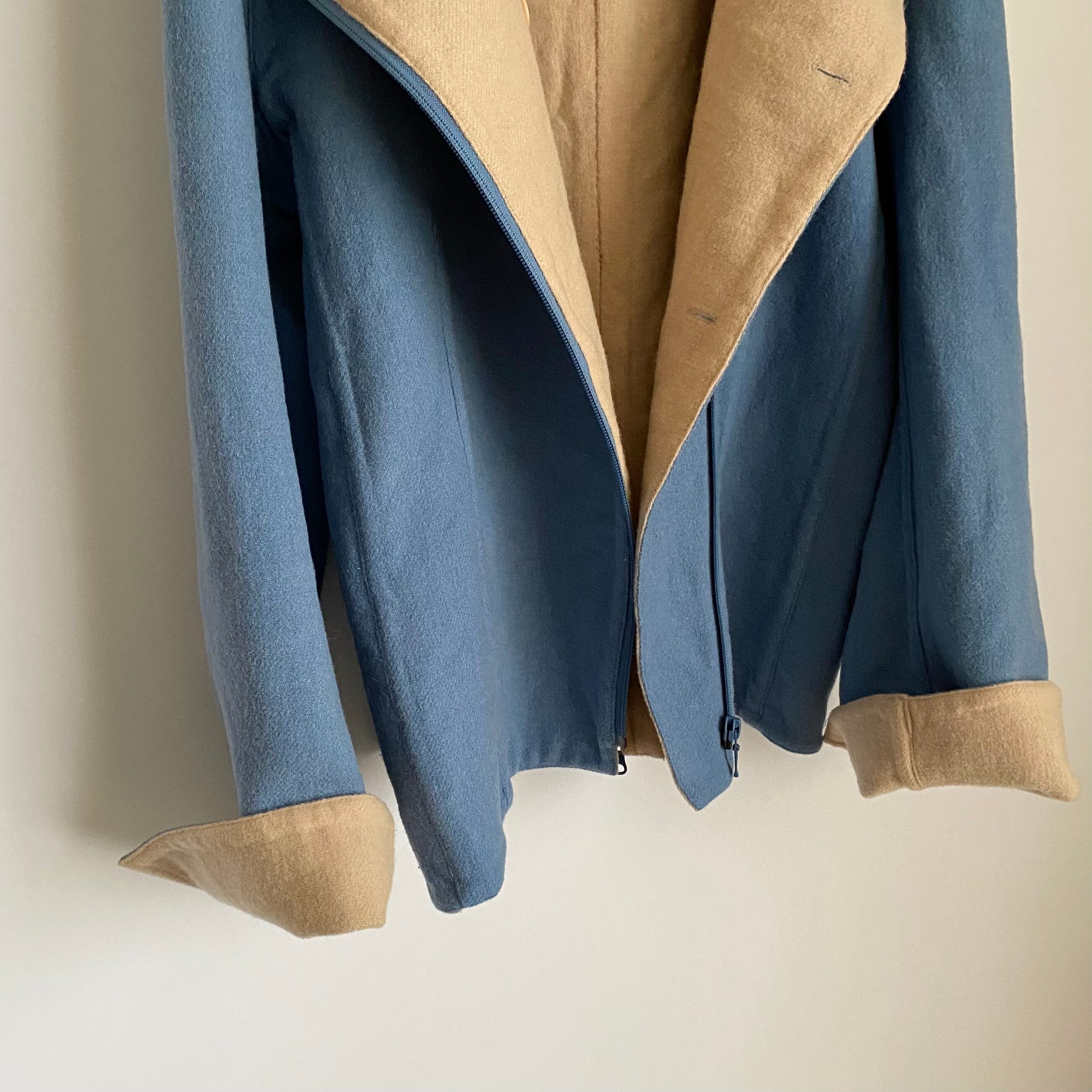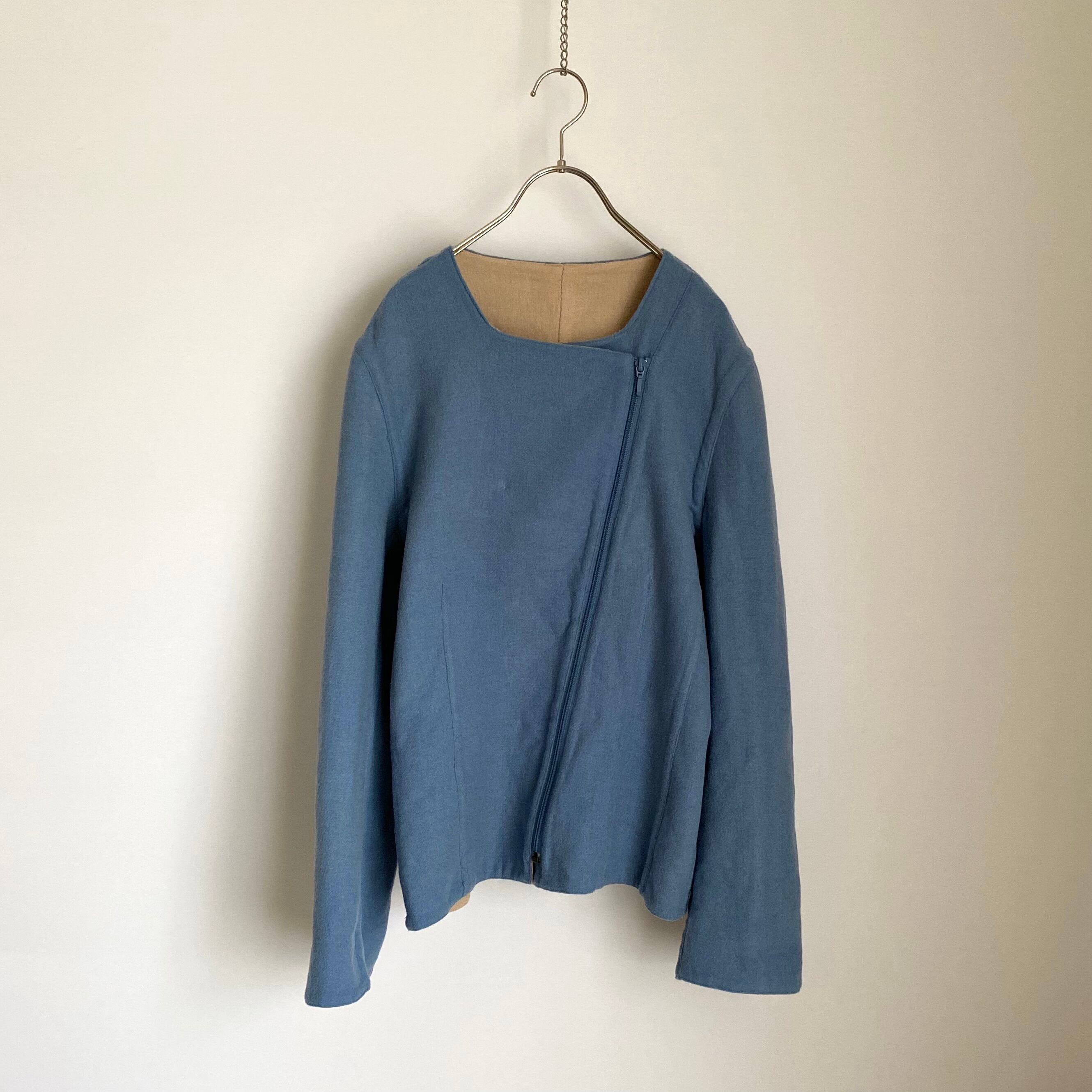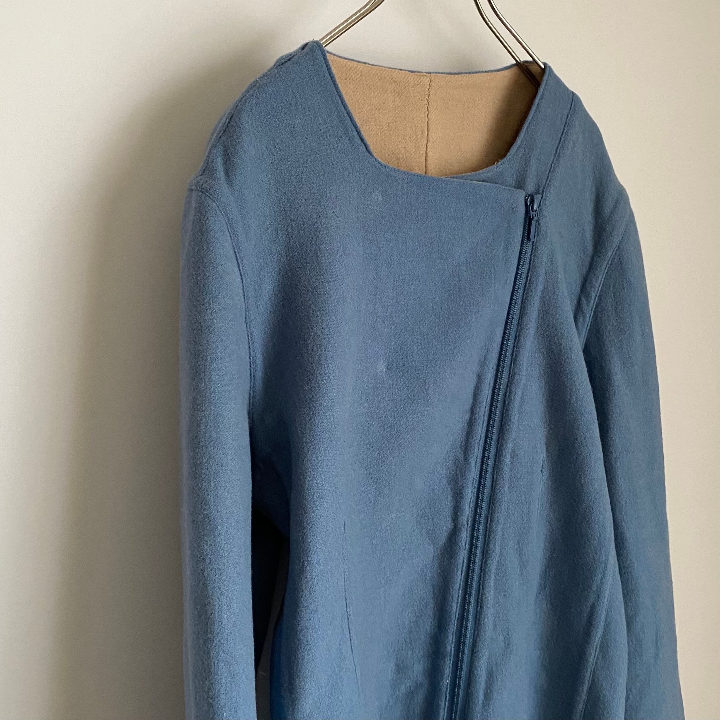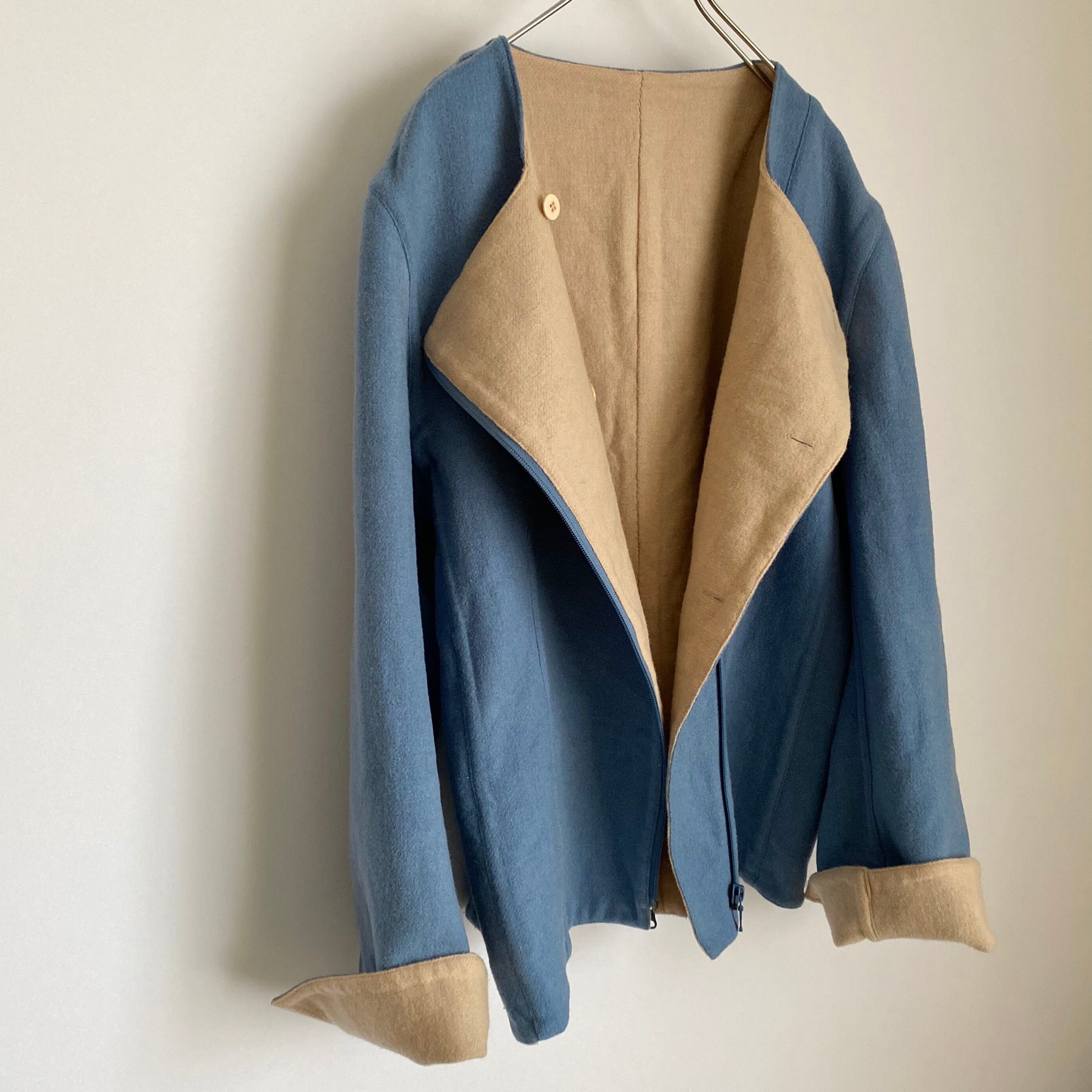 Vintage USA retro blue×beige bicolor design jacket レトロ アメリカ ヴィンテージ 古着 ブルー×ベージュ バイカラー デザイン デザイン ジャケット