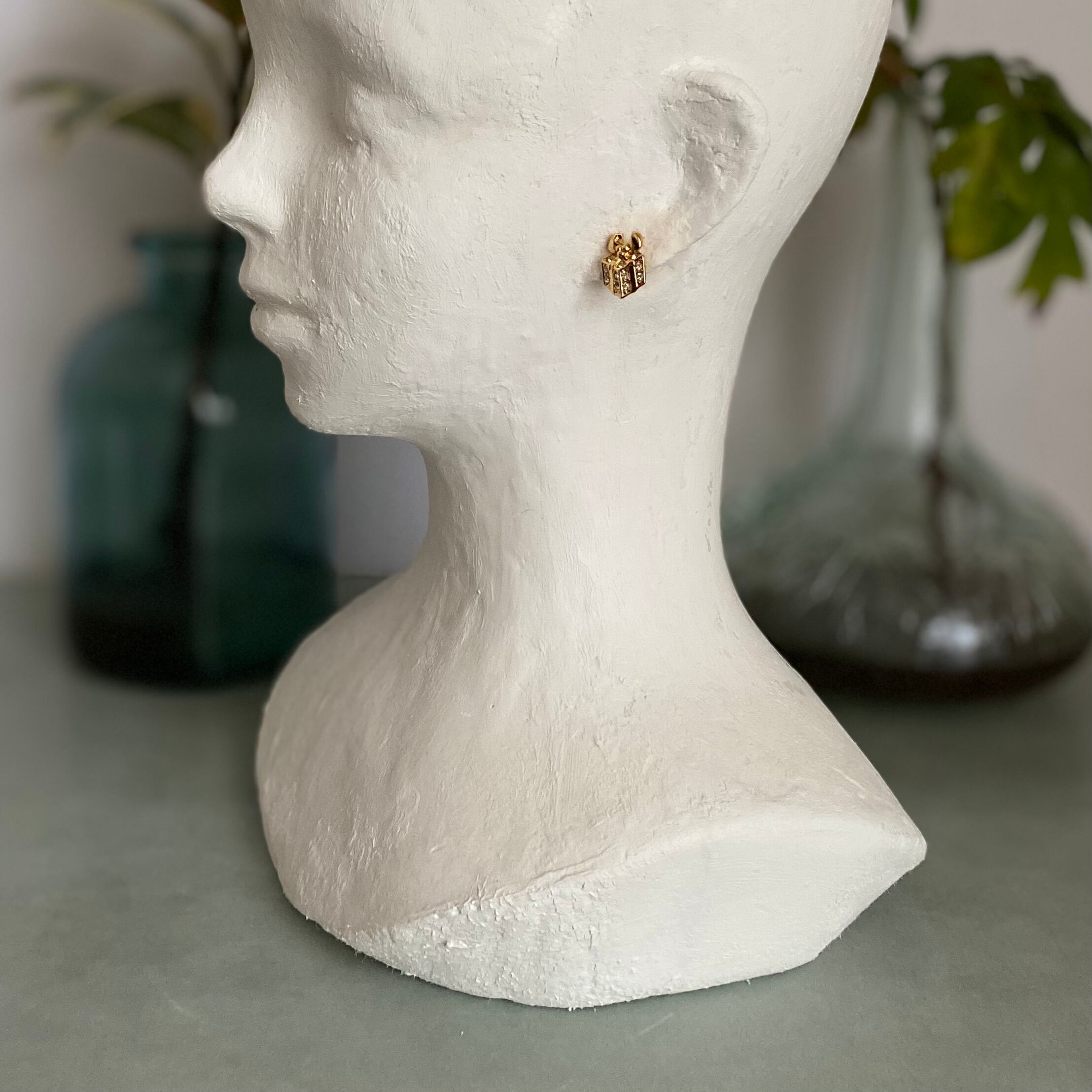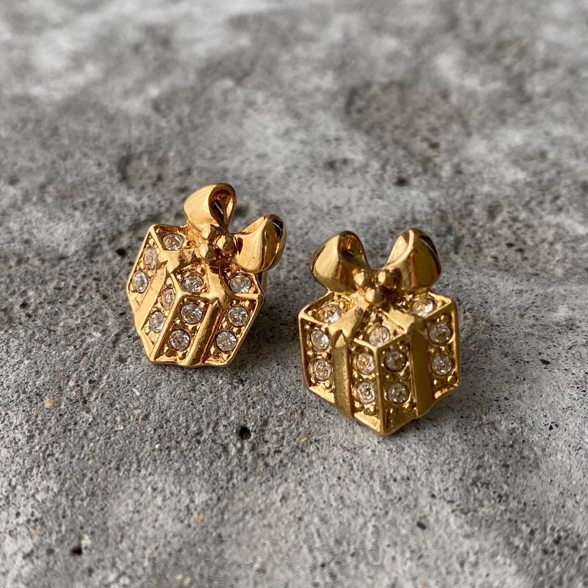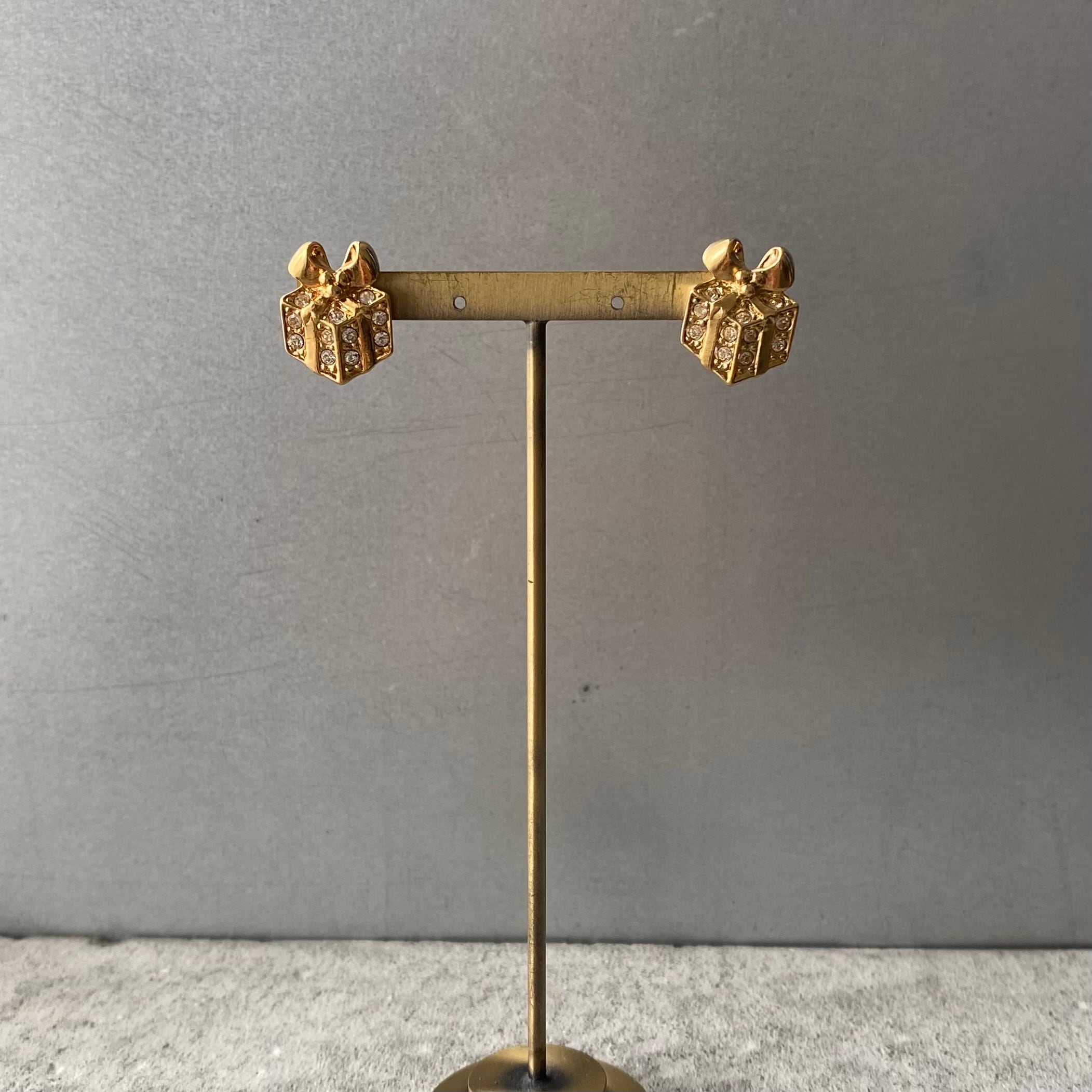 1886年にNYで香水会社として創業し、1971年よりコスチュームジュエリーの制作を始めたブランド『AVON』のUSAヴィンテージピアス。ビジューがキラキラと輝く可愛らしいギフトボックスのデザイン。身につけやすいサイズ感で大人のレトロスタイルにもオススメです。