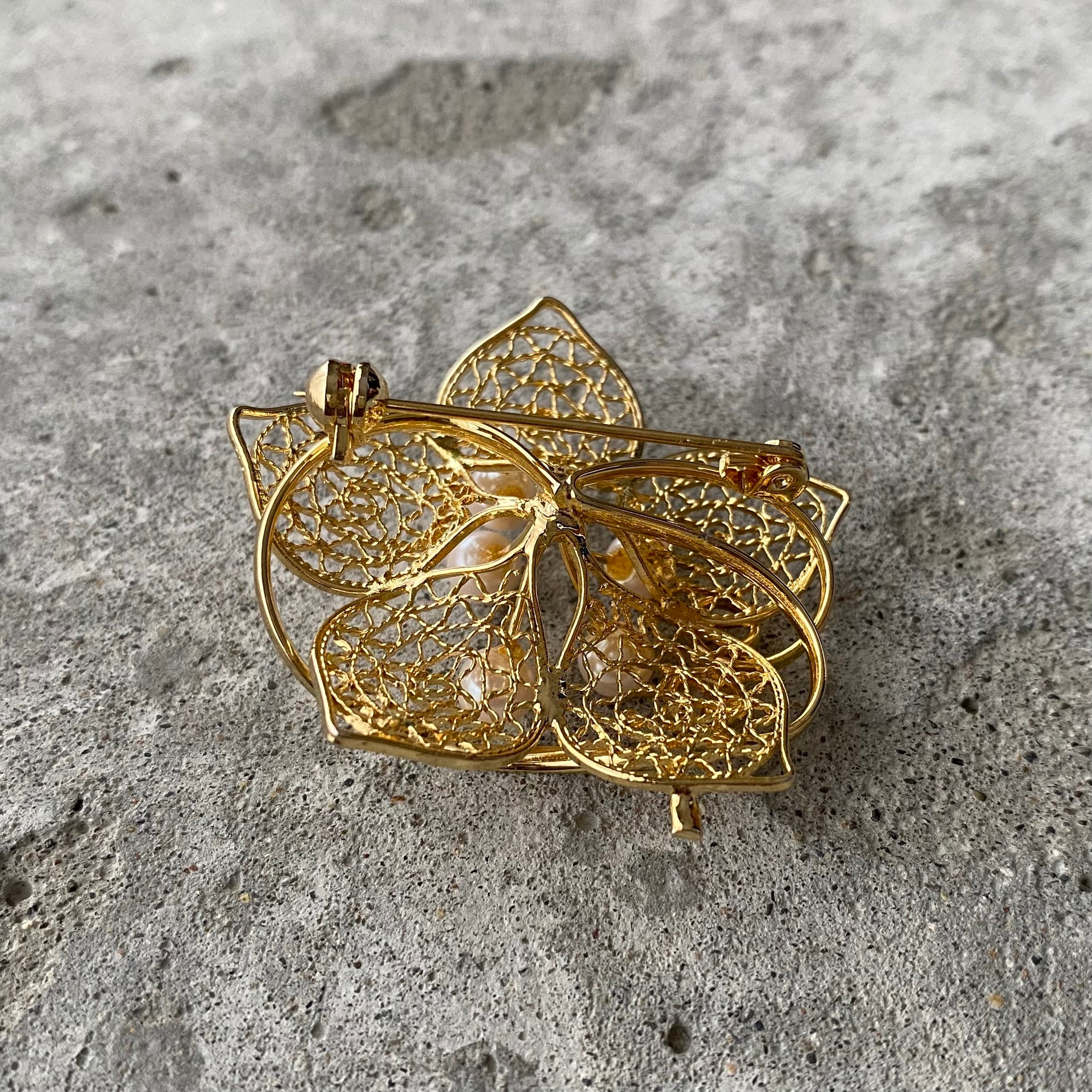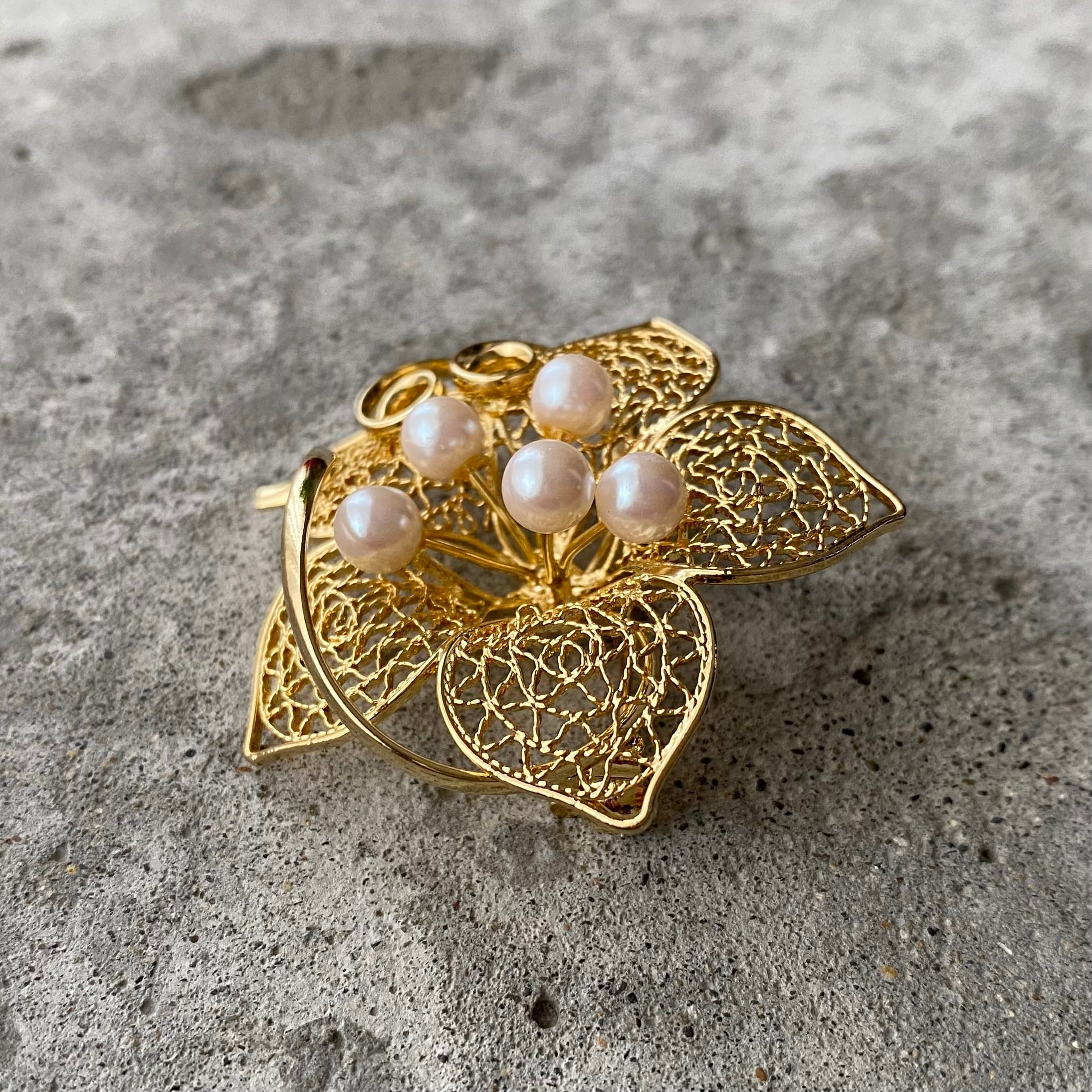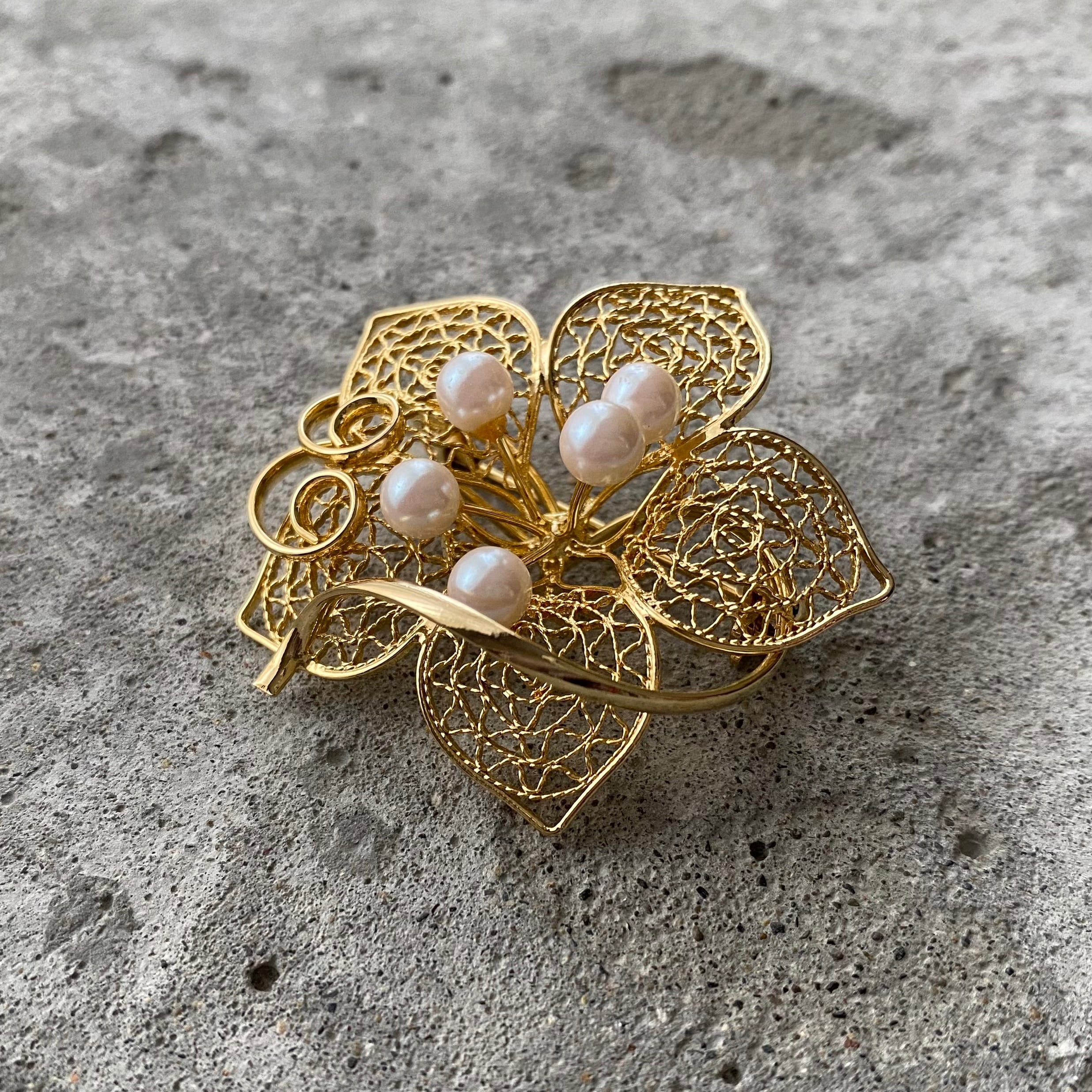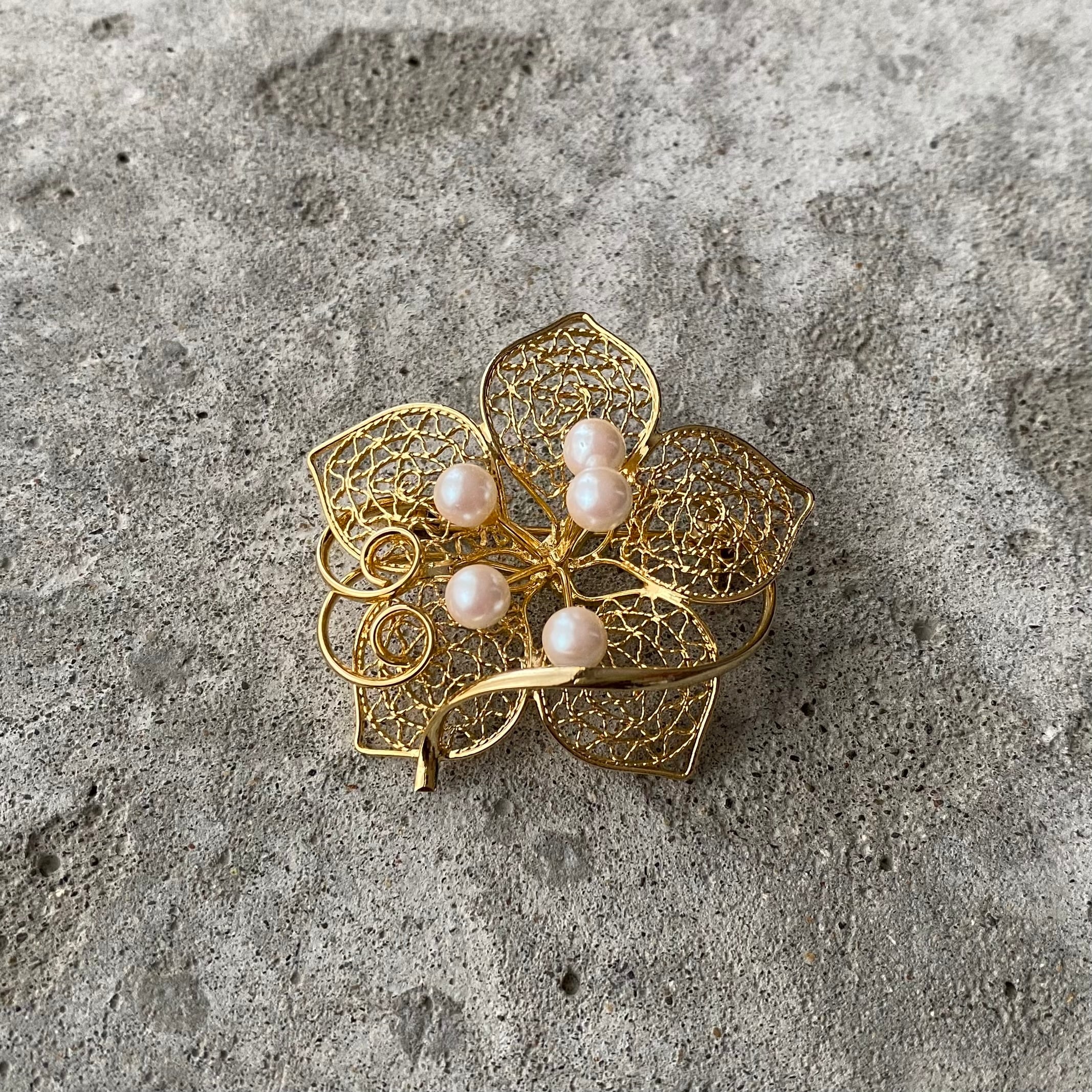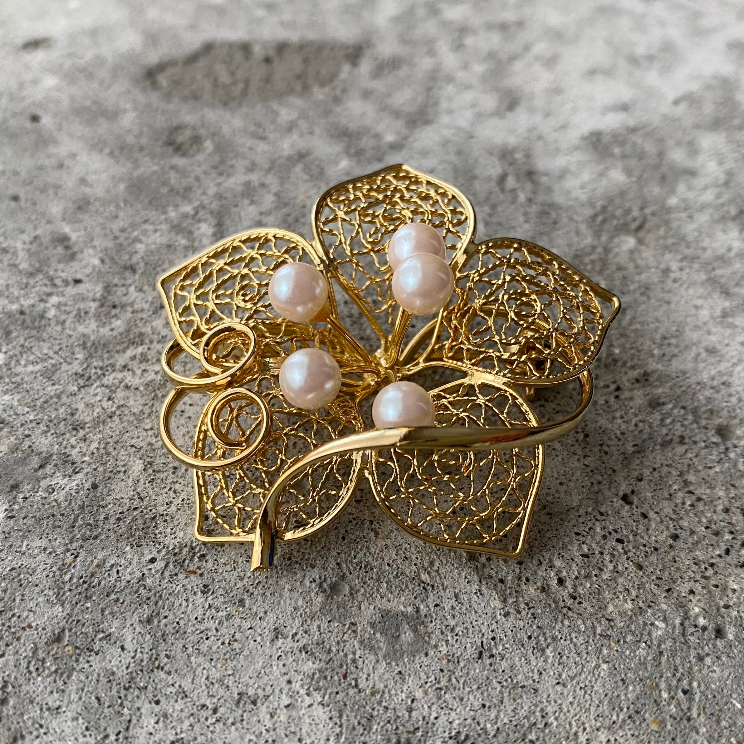 Vintage 70s-80s USA retro filigree botanical flower brooch レトロ アメリカ ヴィンテージ アクセサリー フィリグリー ボタニカル フラワー パール ブローチ