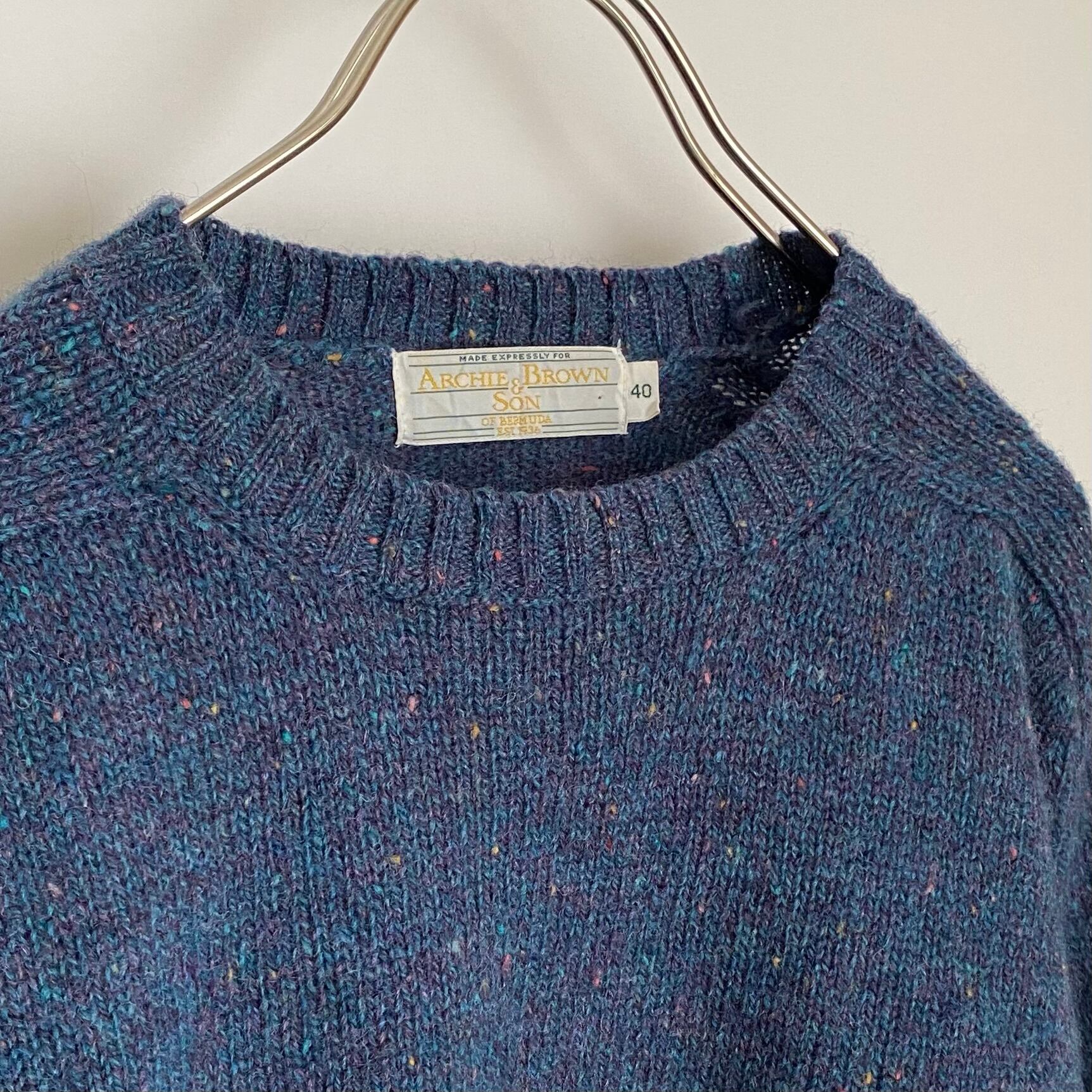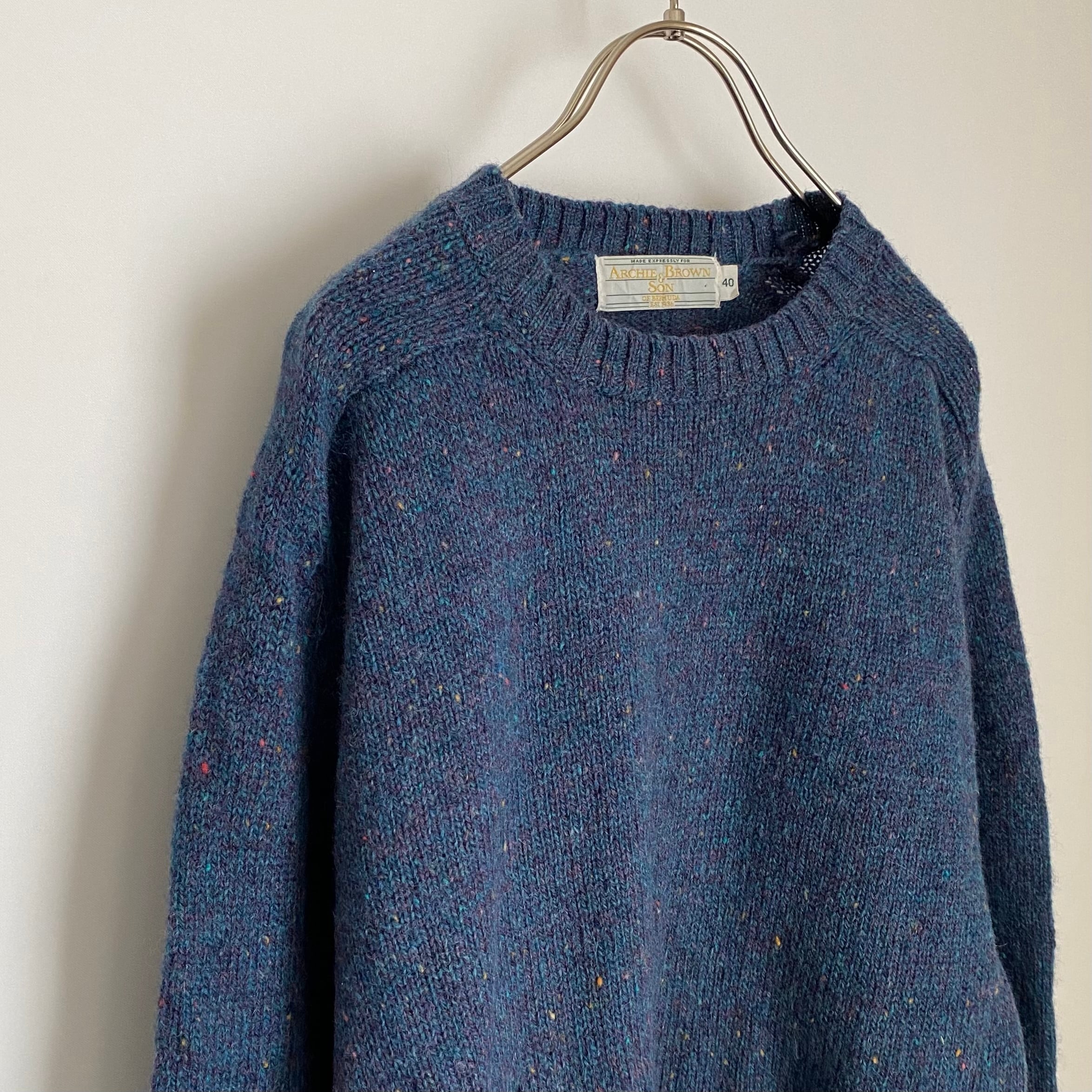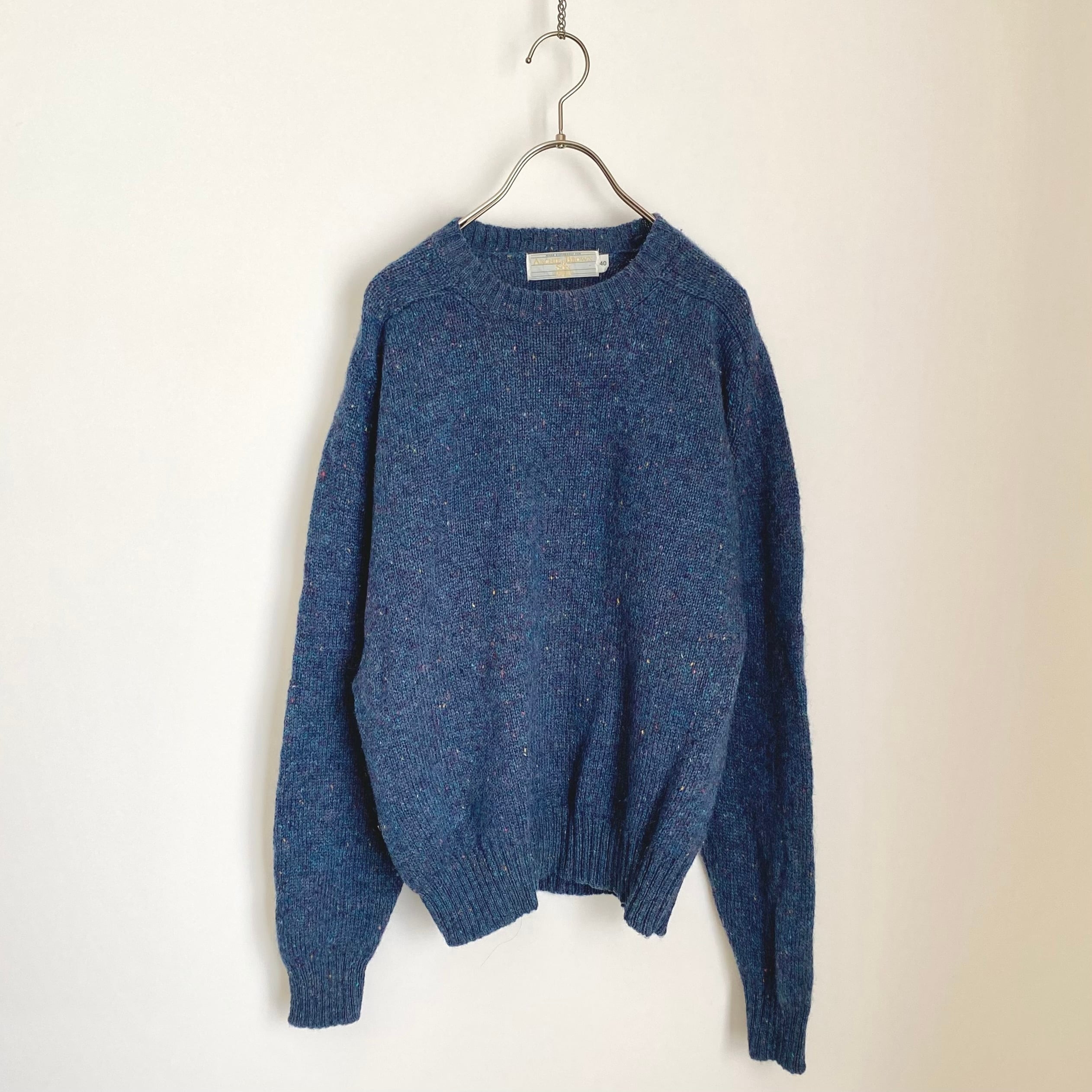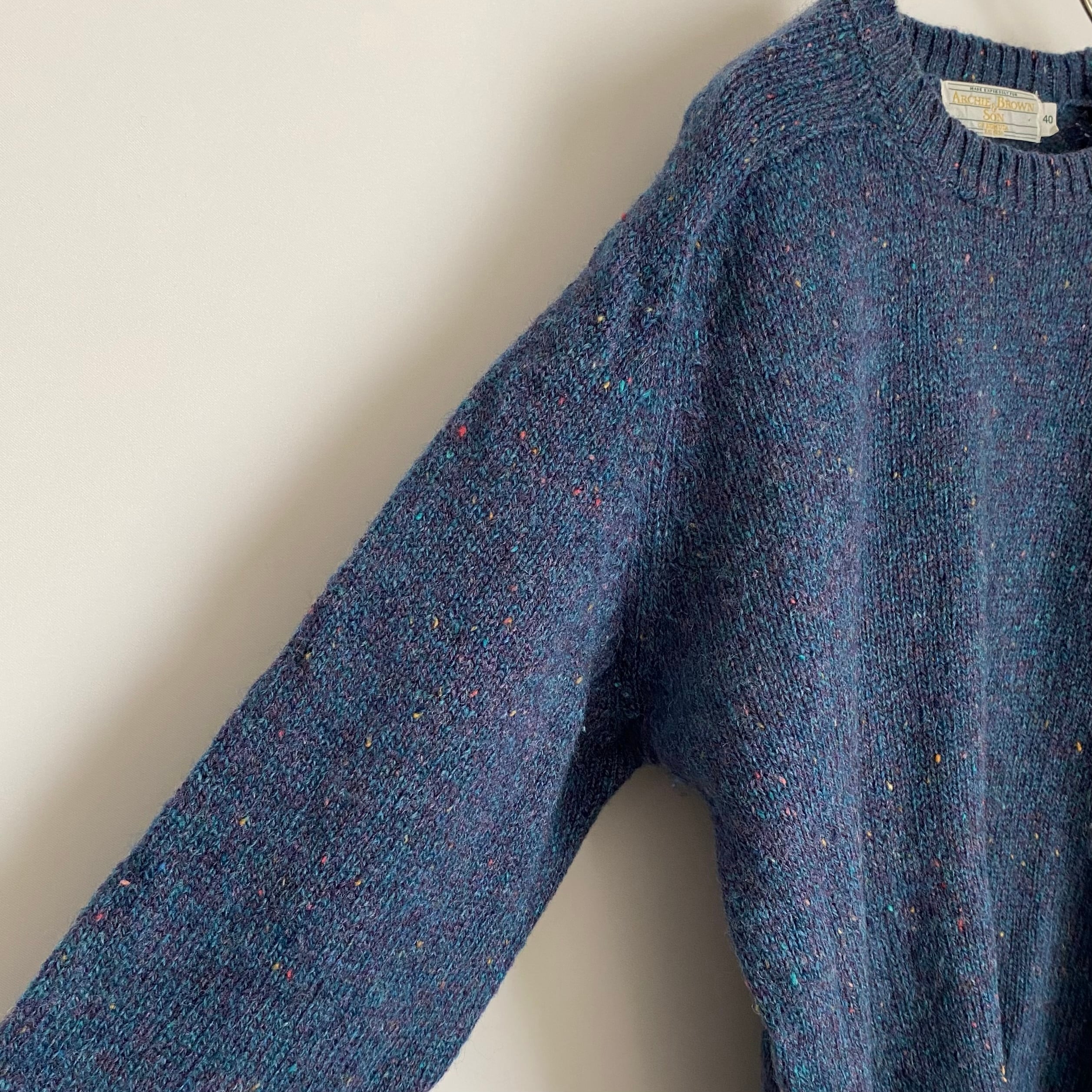 「 Archie Brown & Son 」のUSA古着ニットセーターです。落ち着いたベースカラーに色とりどりのネップが映える一着。暖かみのあるウール素材でほどよくゆとりのあるシルエットです。シンプルなデザインで様々なスタイルに合わせていただけます。