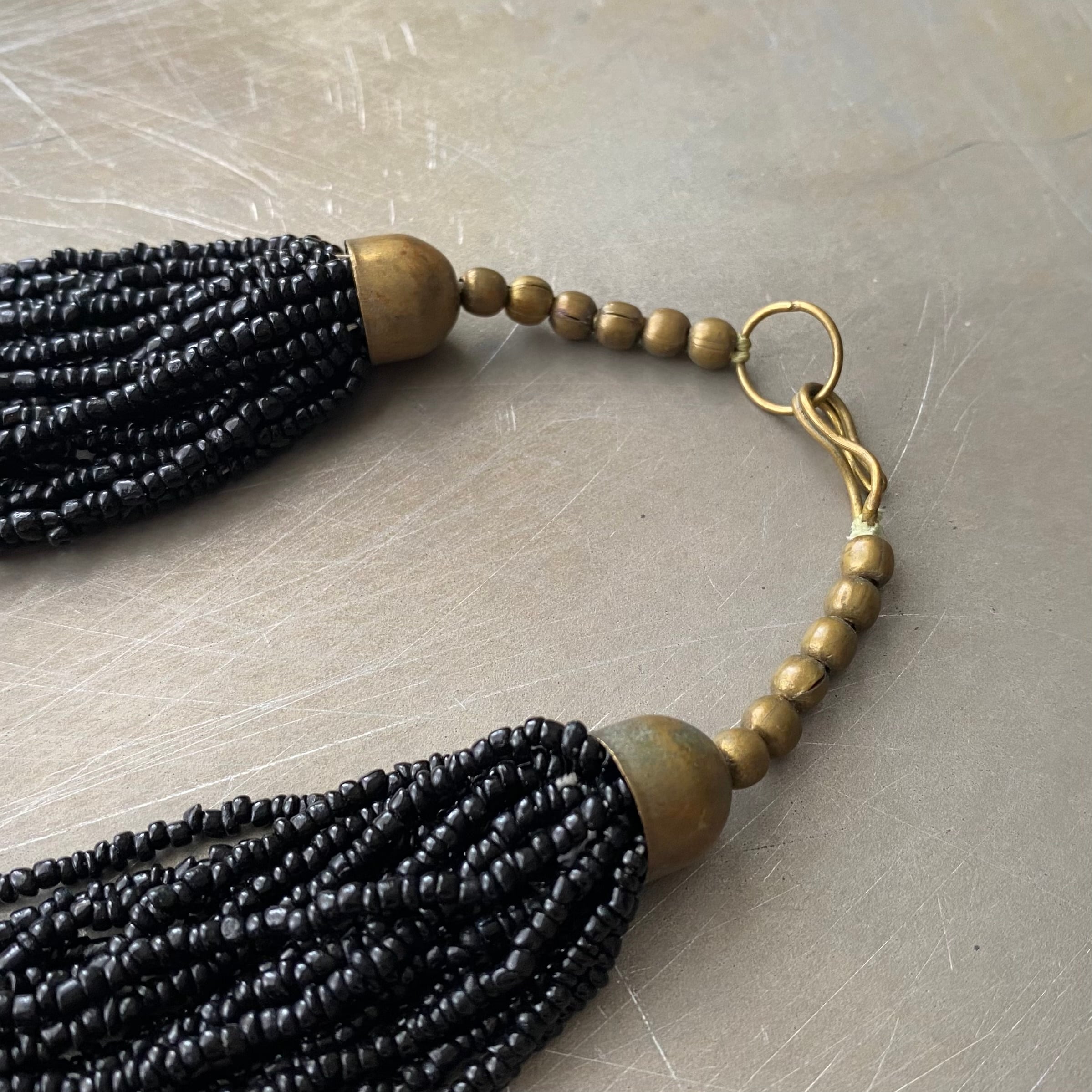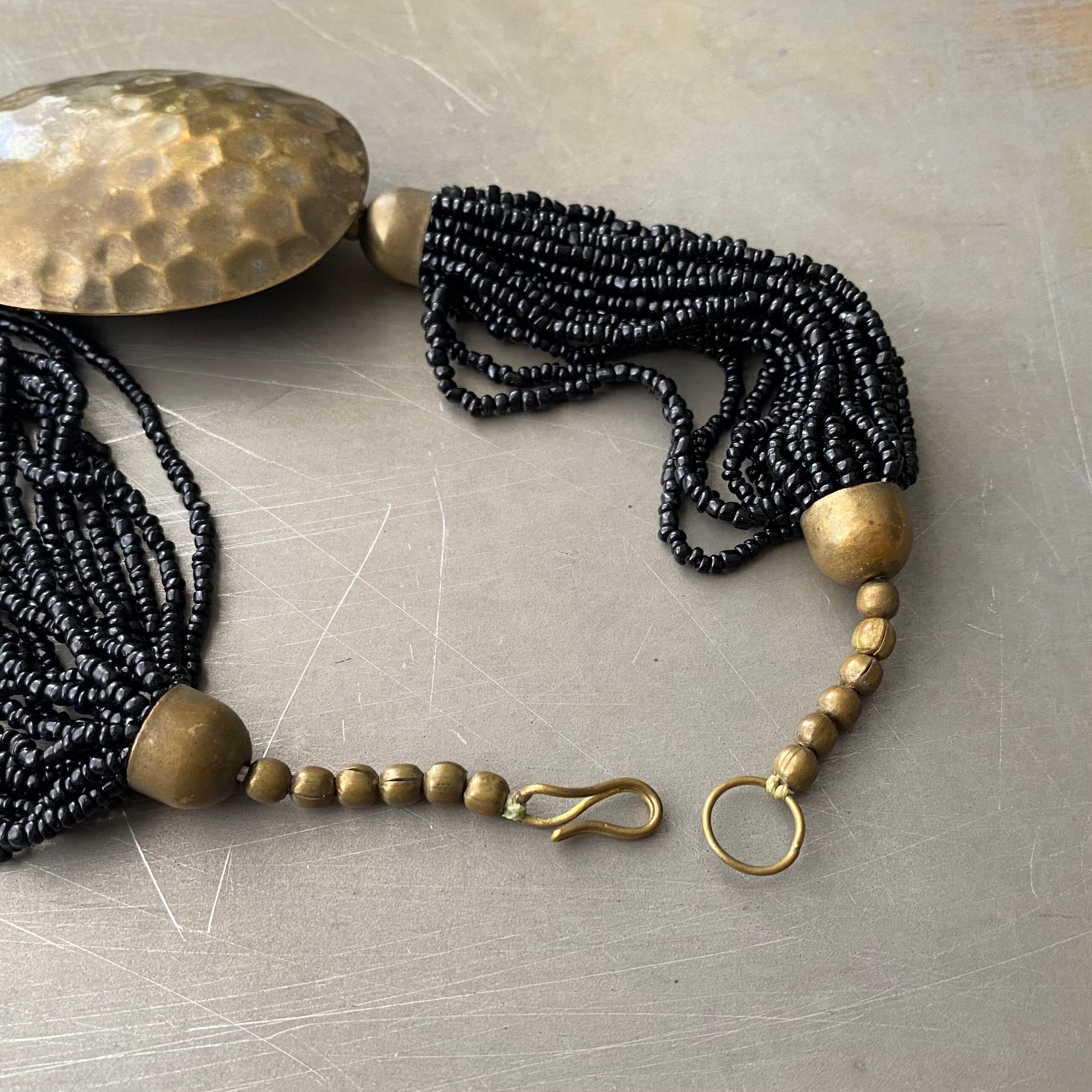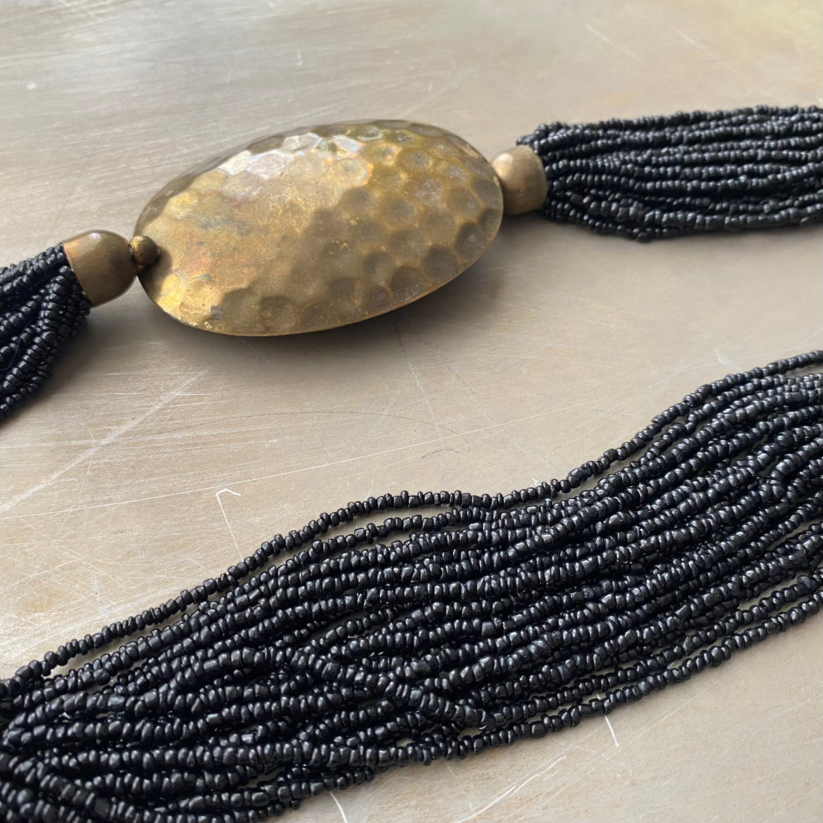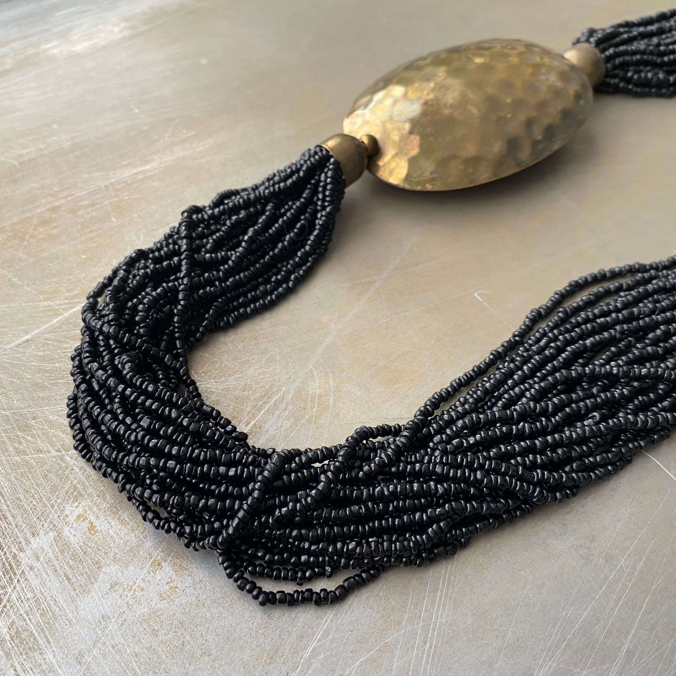 Vintage 80s USA retro black beads metal design necklace レトロ アメリカ ヴィンテージ アクセサリー ブラック ビーズ メタル デザイン ネックレス