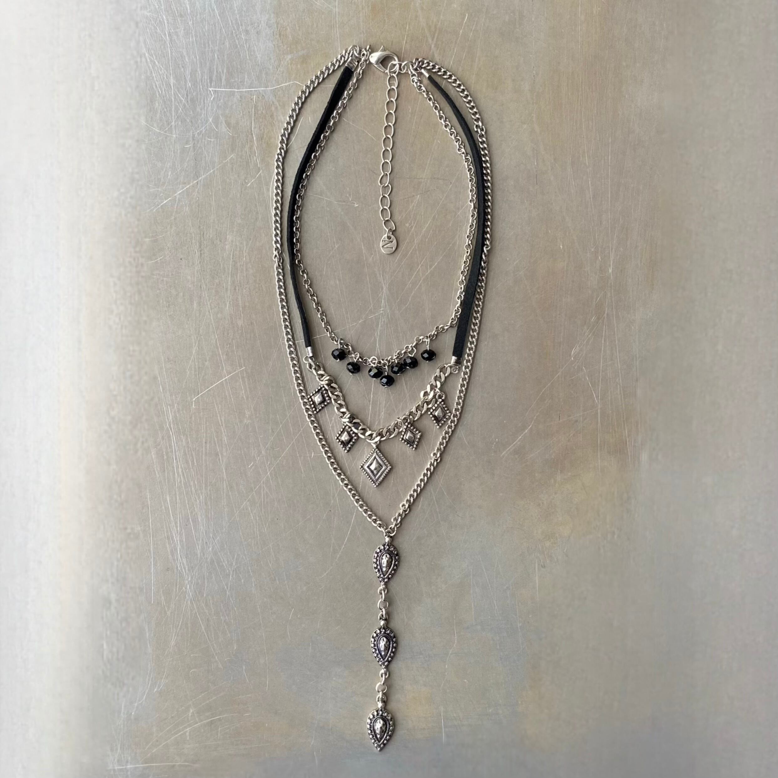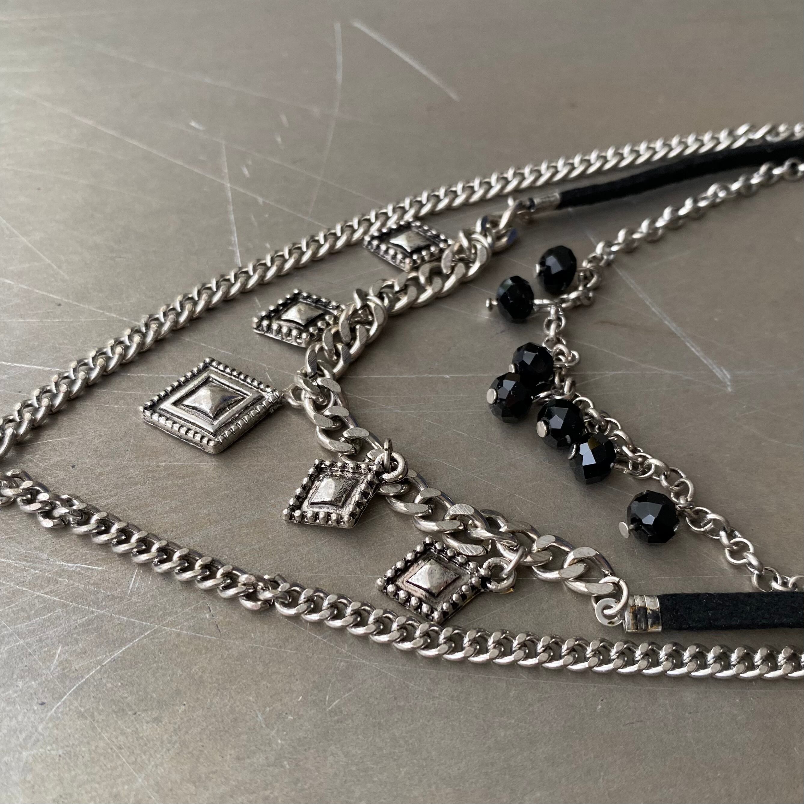 スタイリッシュな雰囲気のUSAユーズドネックレス。個性的なパーツが魅力的な3連タイプでスタイリングのアクセントにおすすめです。