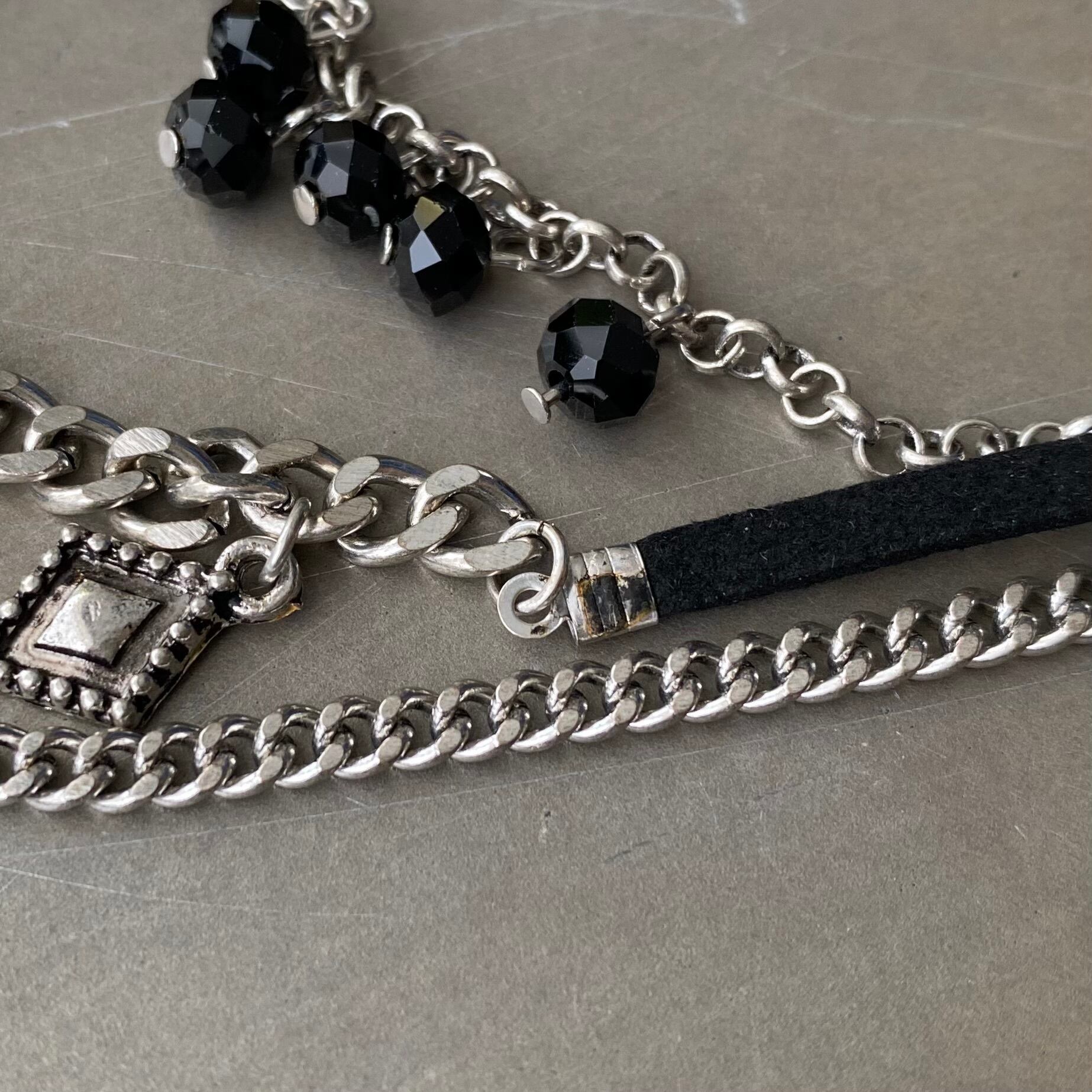 Used USA retro black bijou choker necklace レトロ アメリカ ユーズド アクセサリー ブラック ビジュー 3連 チョーカー ネックレス