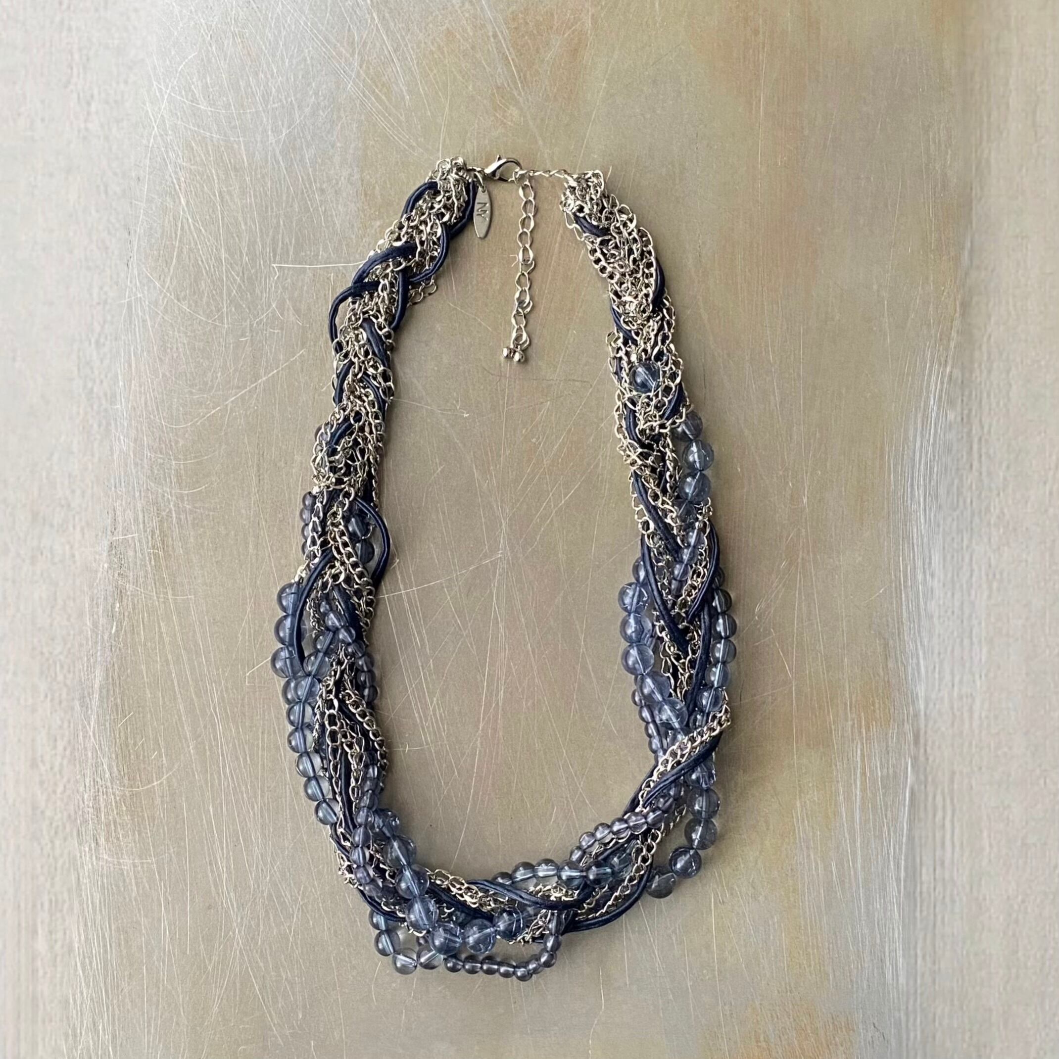 Vintage USA retro NY beads×chain braid necklace レトロ アメリカ ヴィンテージ アクセサリー ニューヨーク ビーズ×チェーン ブレード ネックレス