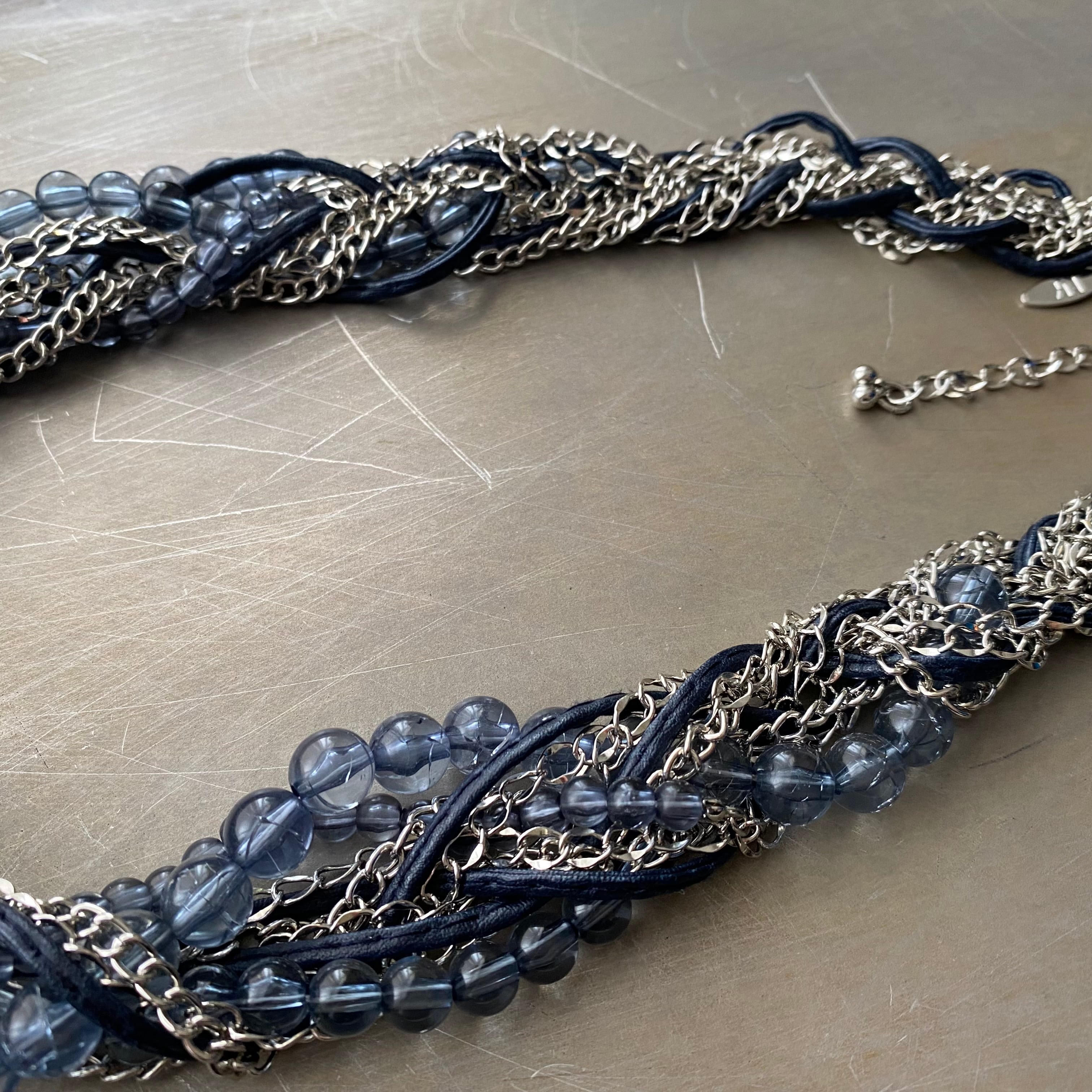 ニューヨークの働く女性をターゲットにした、エレガントで洗練されたファッションブランド「New York & Company」のネックレス。ビーズ、チェーン、コードが無造作に編み込まれたユニークなデザイン。ボリューム感たっぷりでスタイリングに個性的な雰囲気をプラスしてくれます。