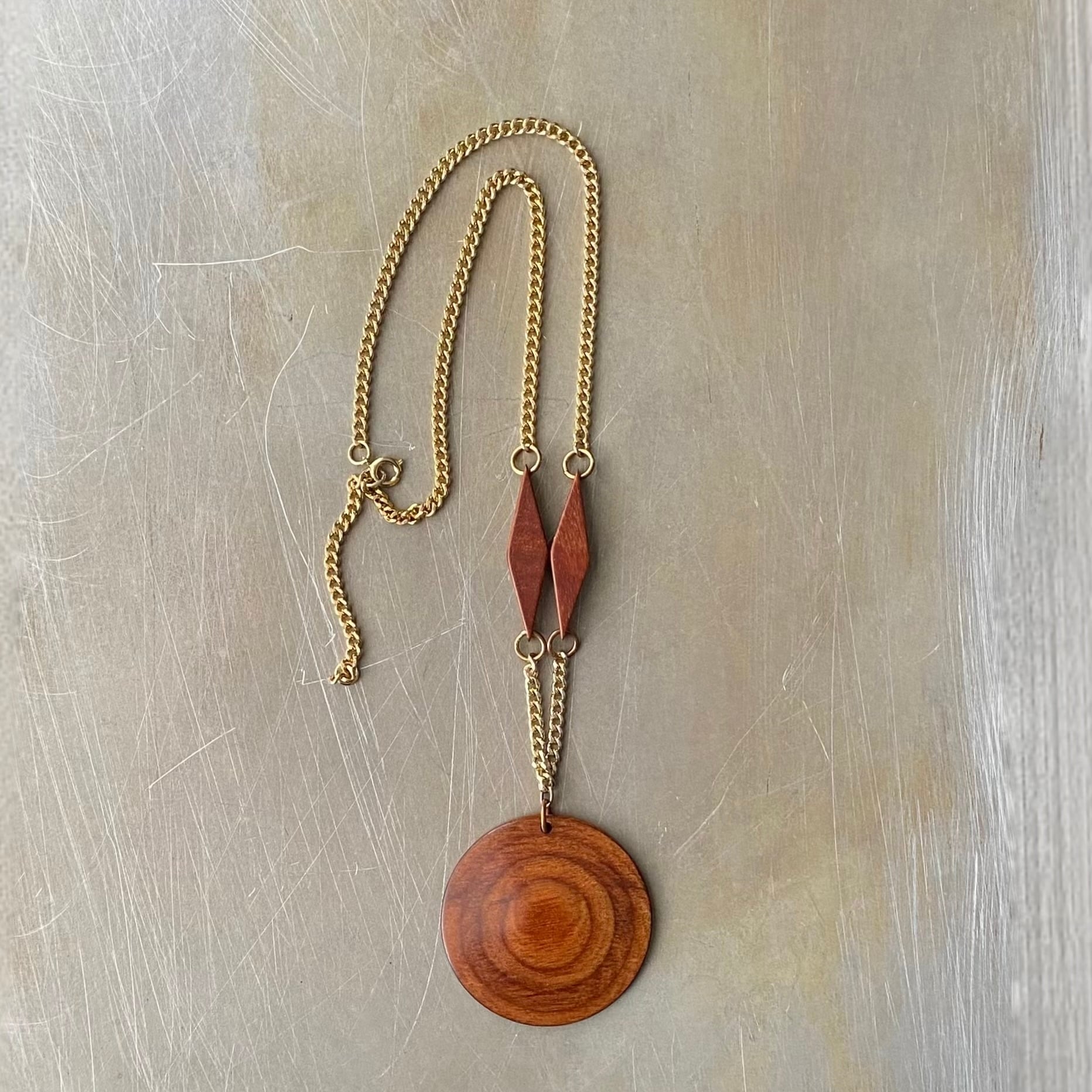 温もりのあるウッドビーズが魅力的なUSAヴィンテージネックレス。大ぶりで存在感がありスタイリングのアクセントにおすすめです。