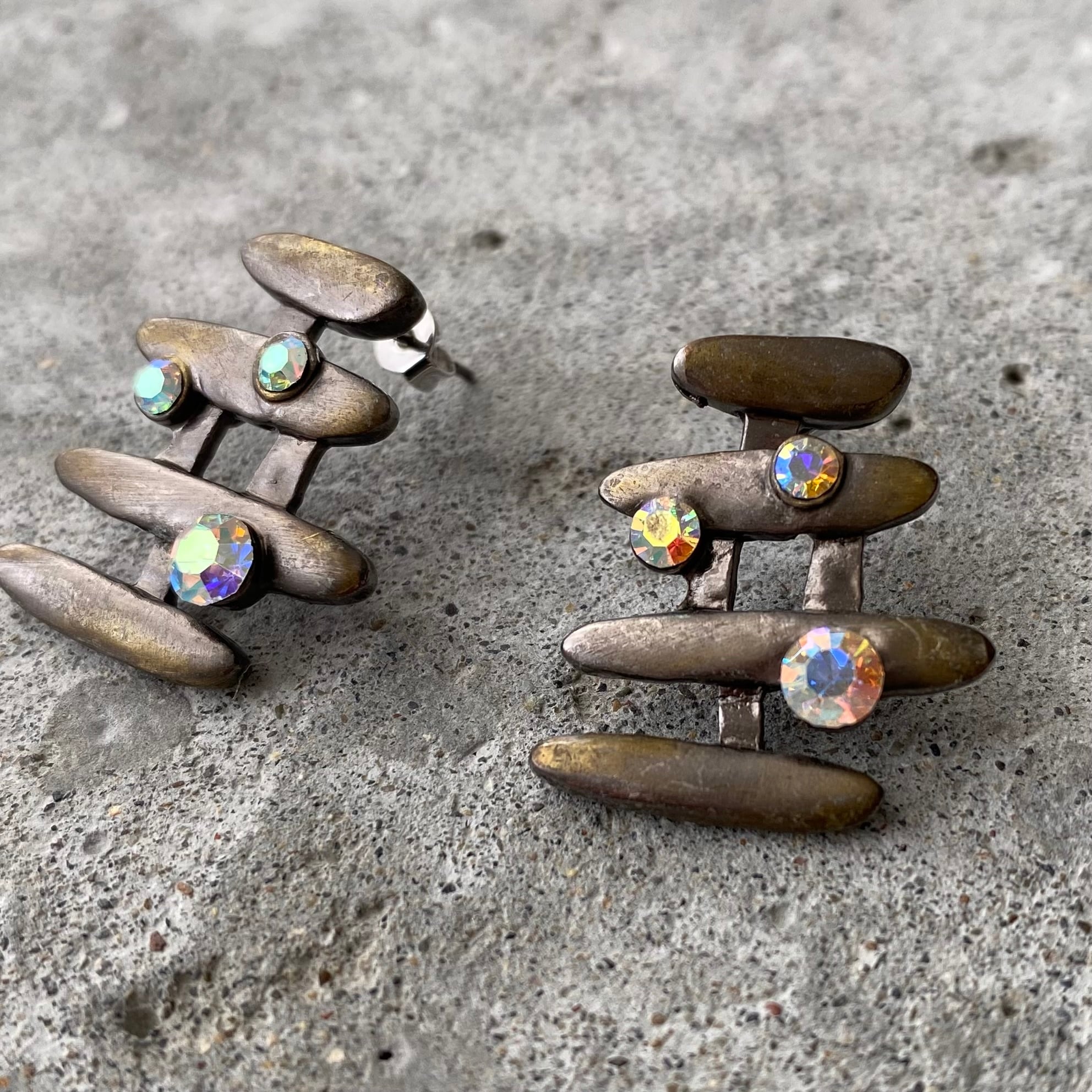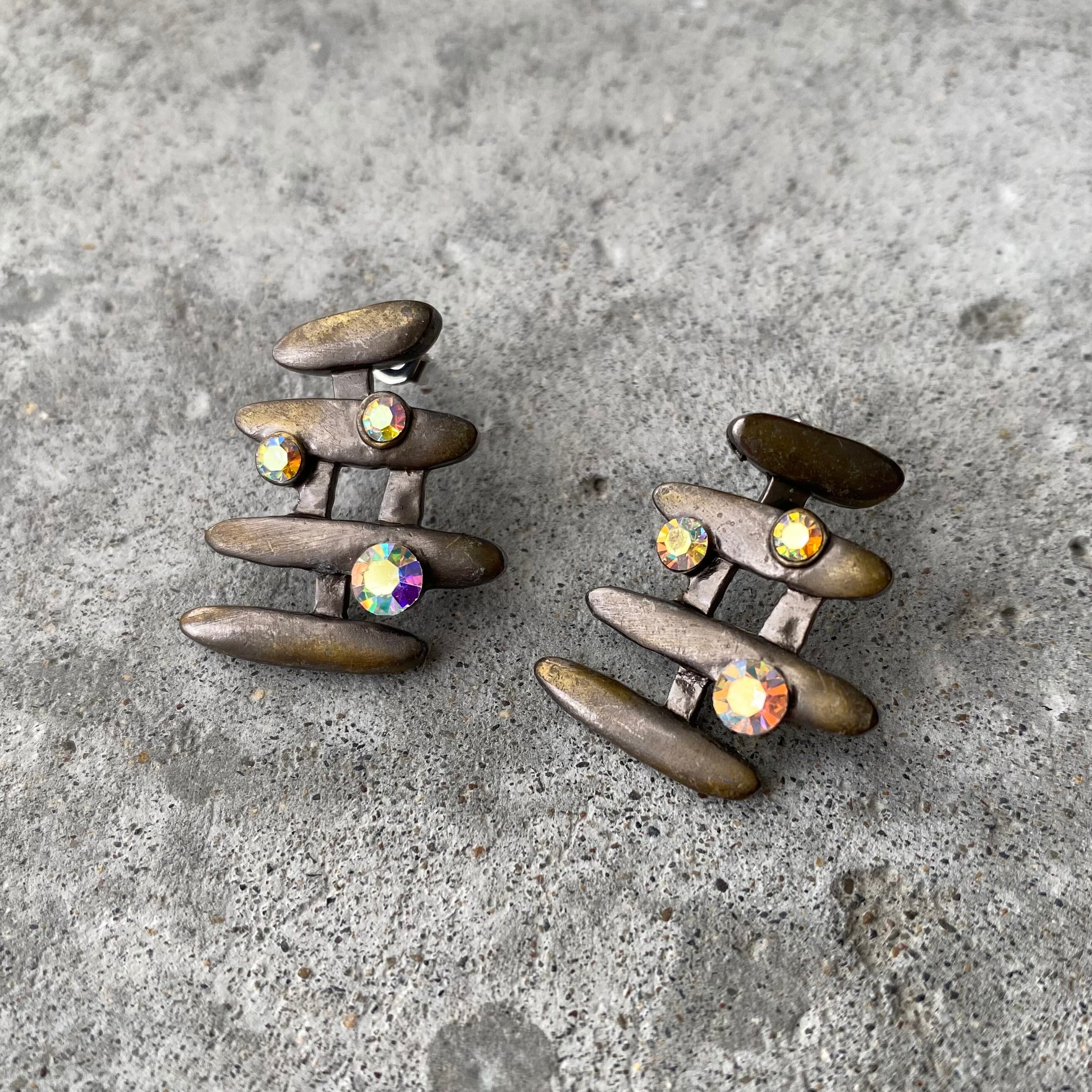 オーロラのビジューが輝く個性的なデザインのUSAヴィンテージピアス。上下二つのパーツに分かれており、ゆらゆらと揺れ動くユニークな作りです。