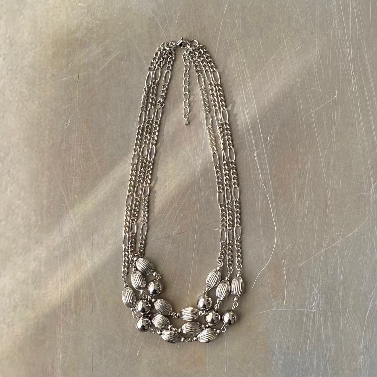 Vintage 00s USA retro silver tone metal beads necklace necklace レトロ アメリカ ヴィンテージ アクセサリー シルバー メタルビーズ 3連 ネックレス