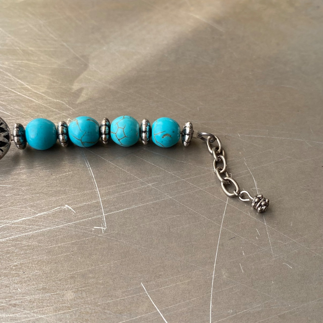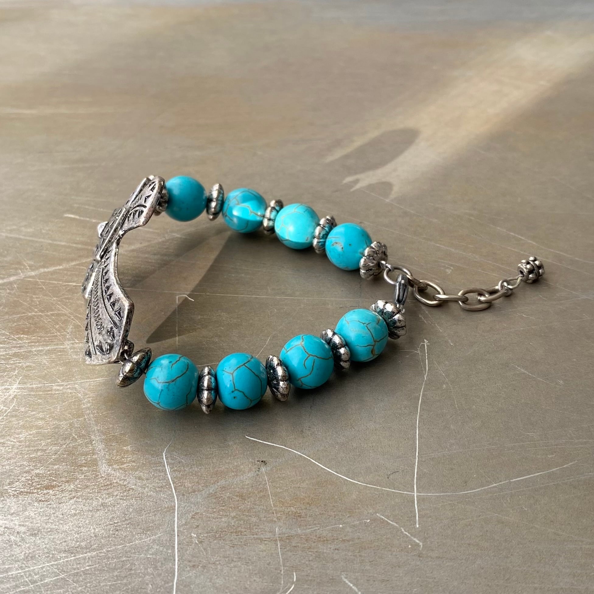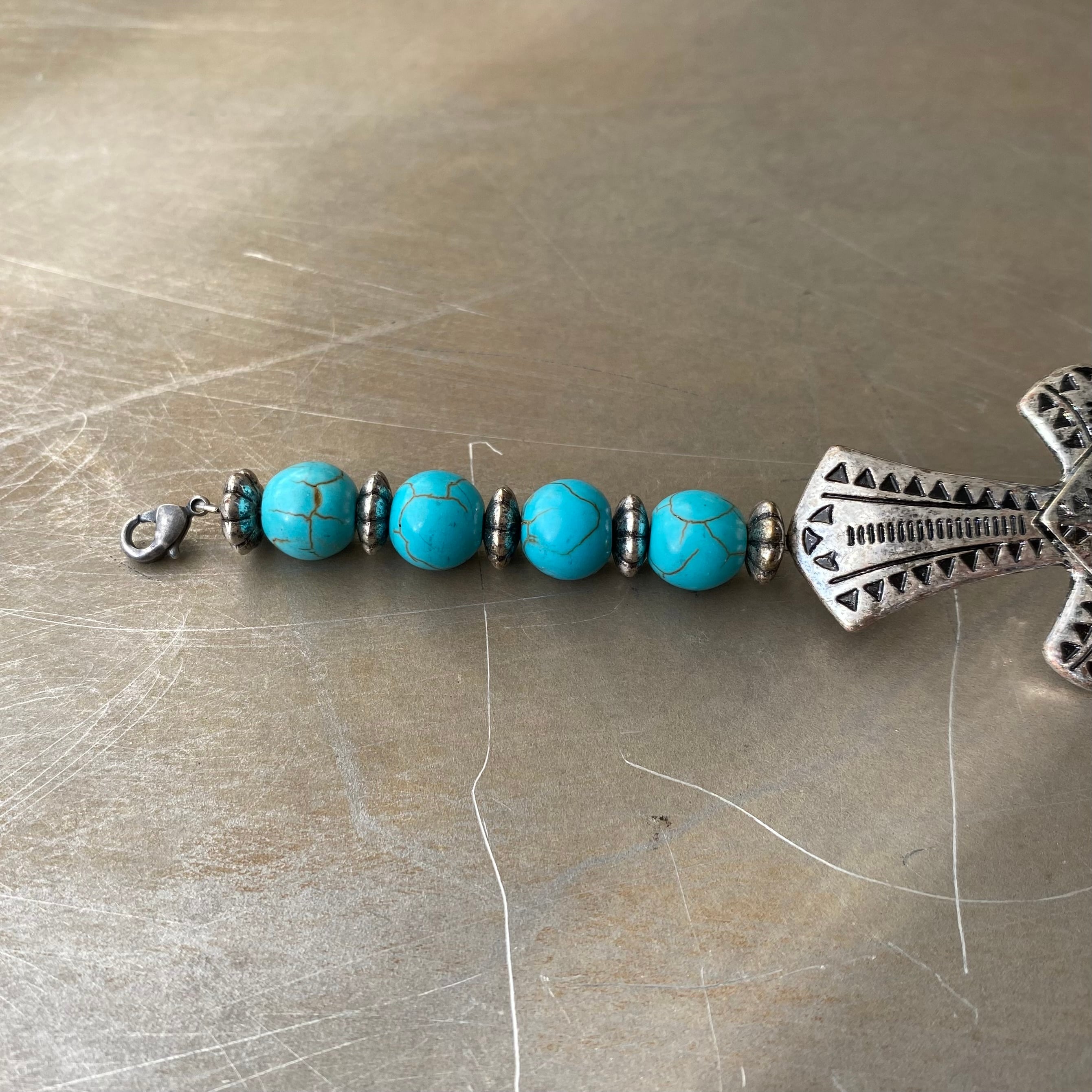 Used USA cross turquoise blue beads bracelet レトロ アメリカ ユーズド アクセサリー クロス ターコイズブルー ビーズ ブレスレット