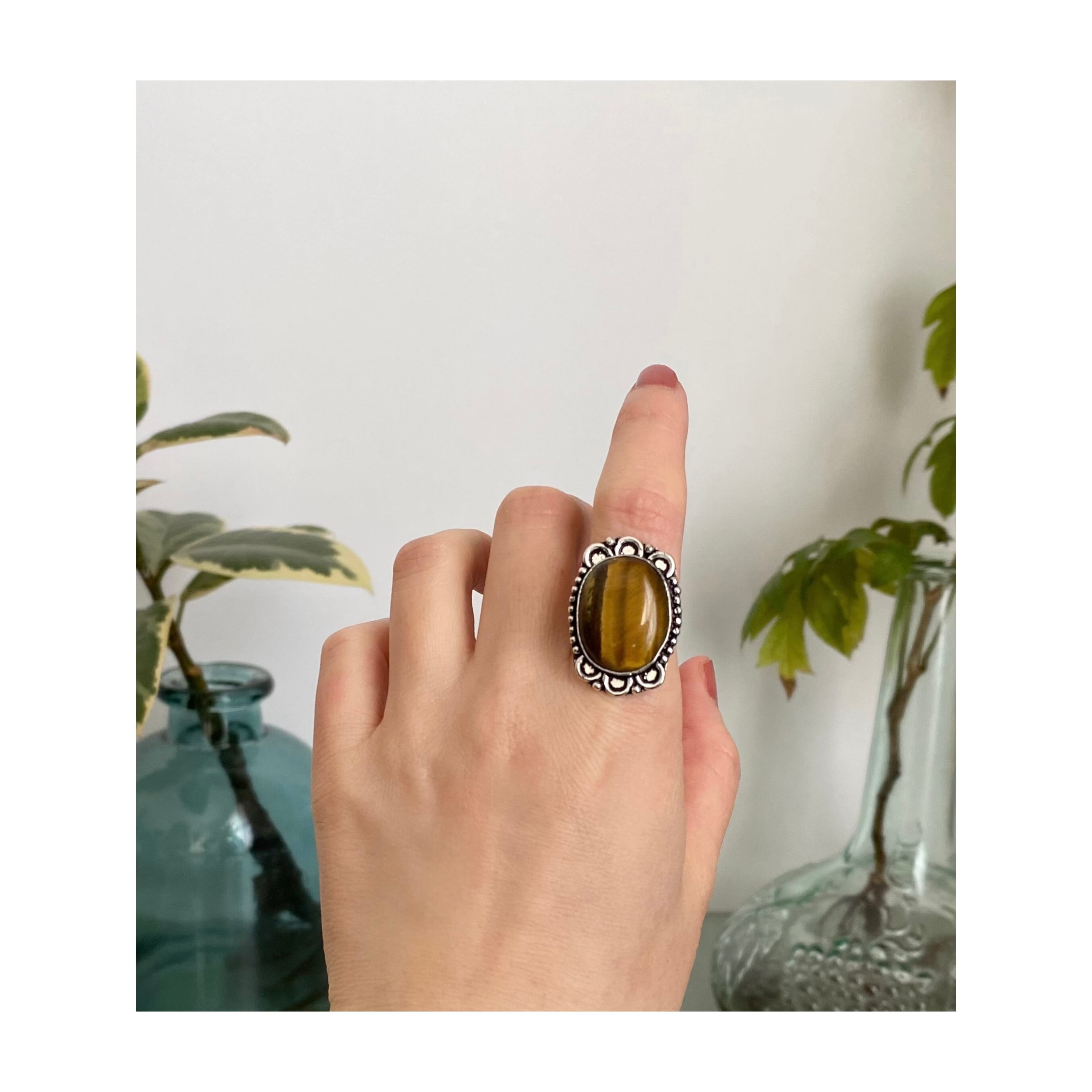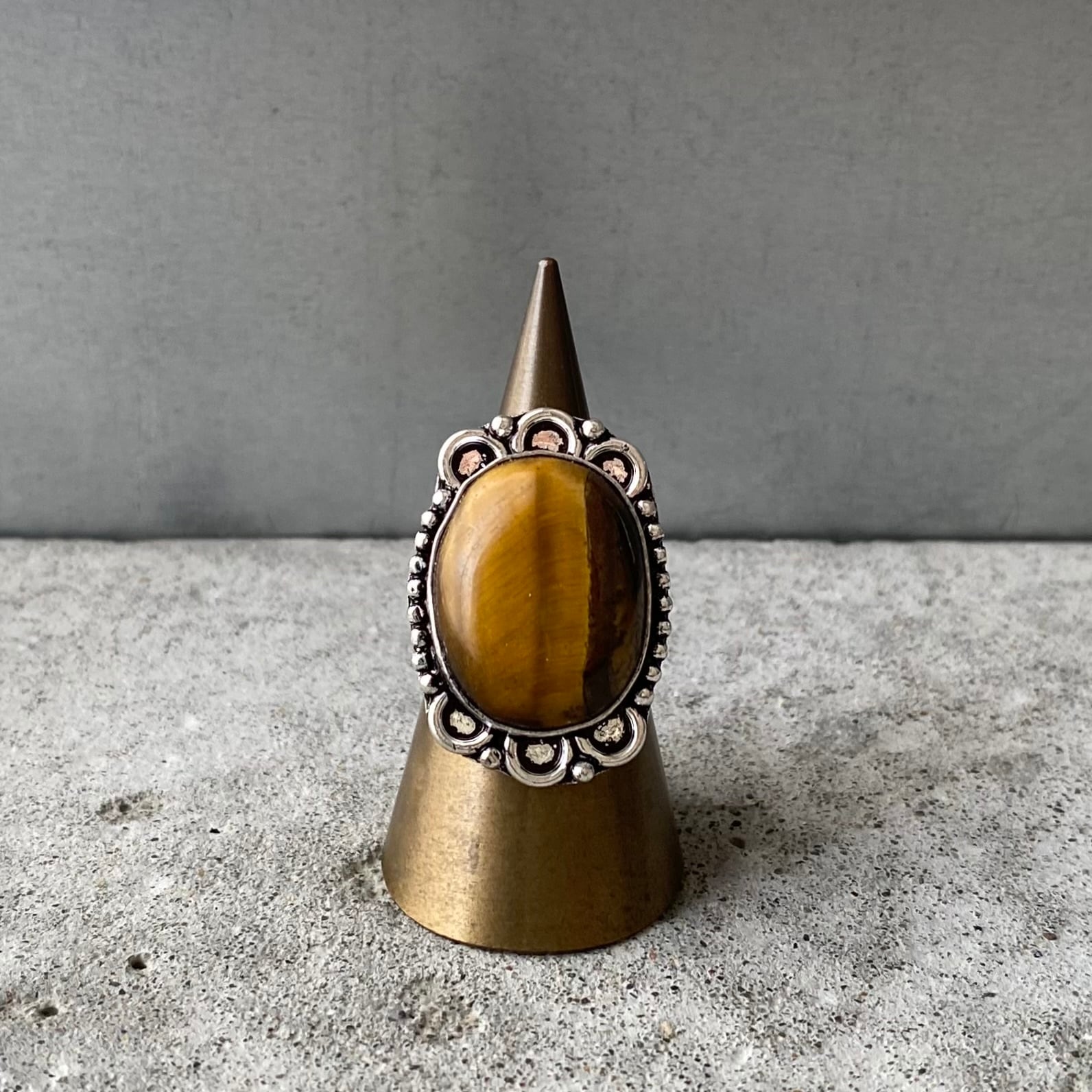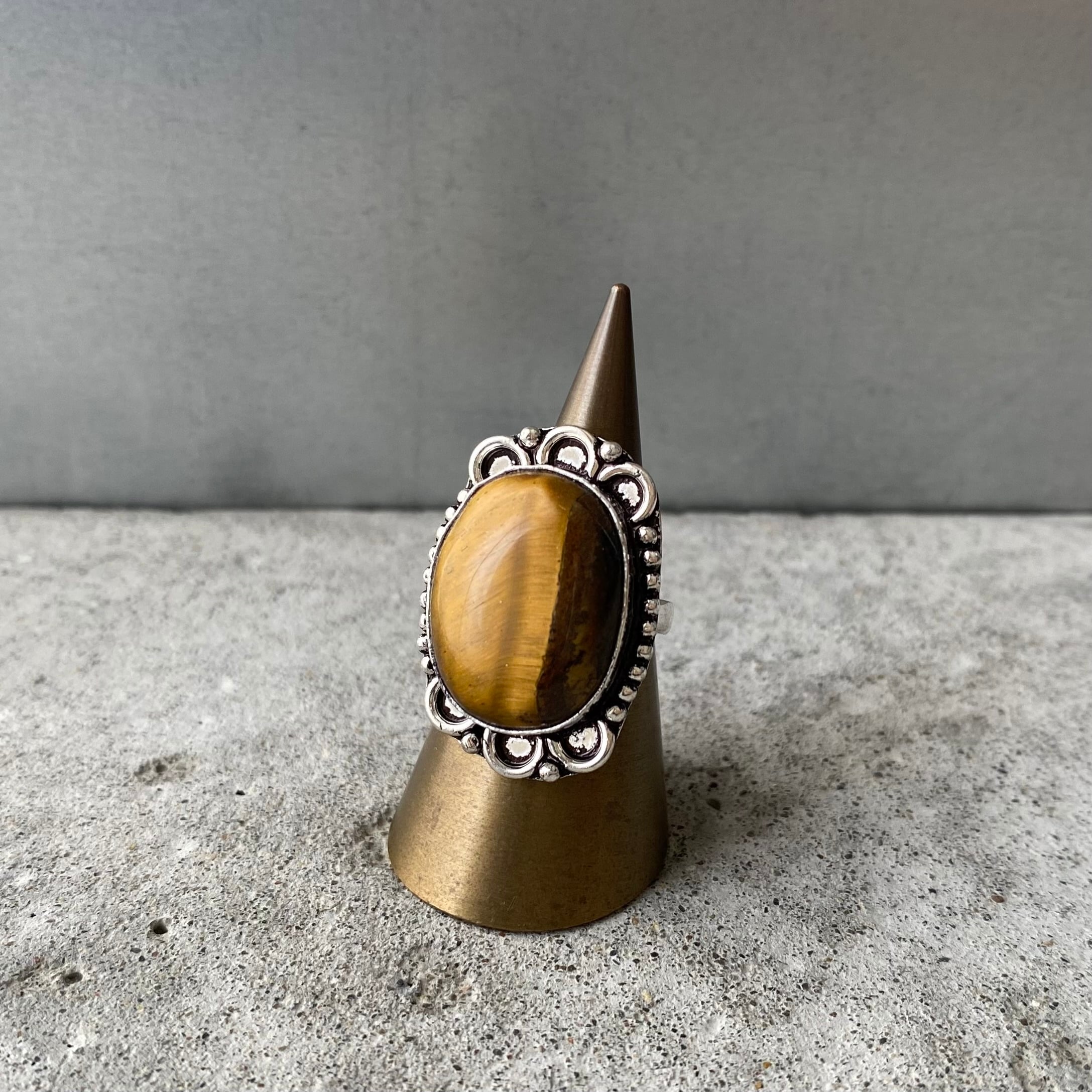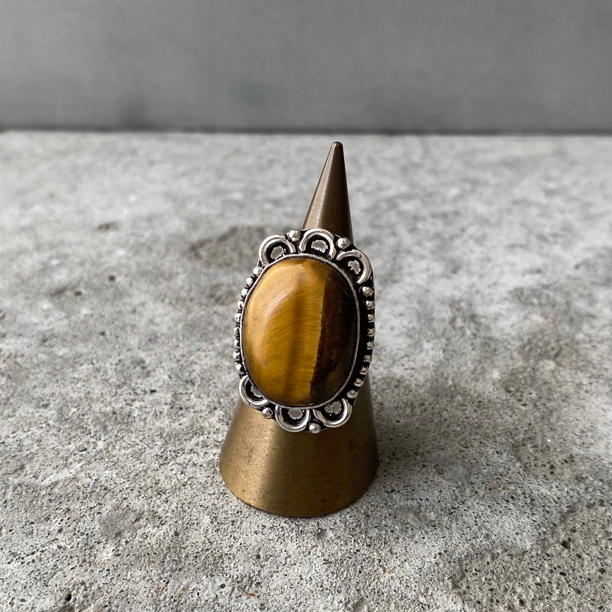 Retro natural stone tiger eye hand made ring レトロ アクセサリー 天然石 タイガーアイ ハンドメイド リング 指輪