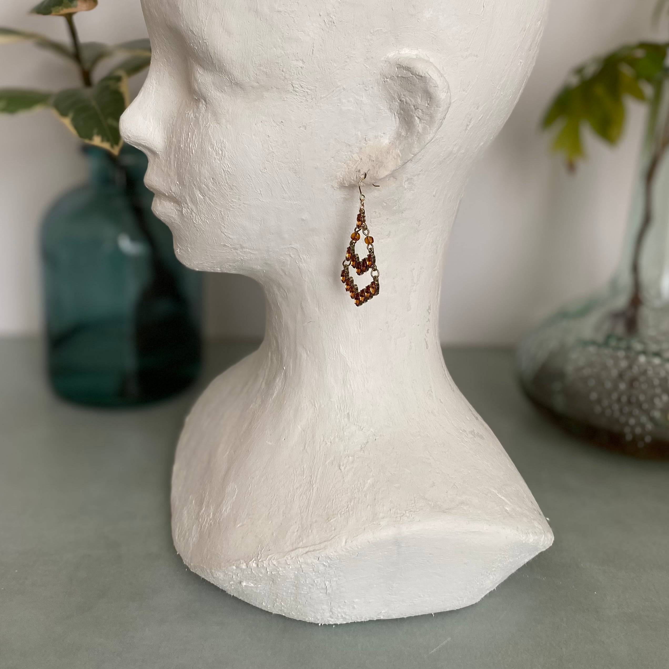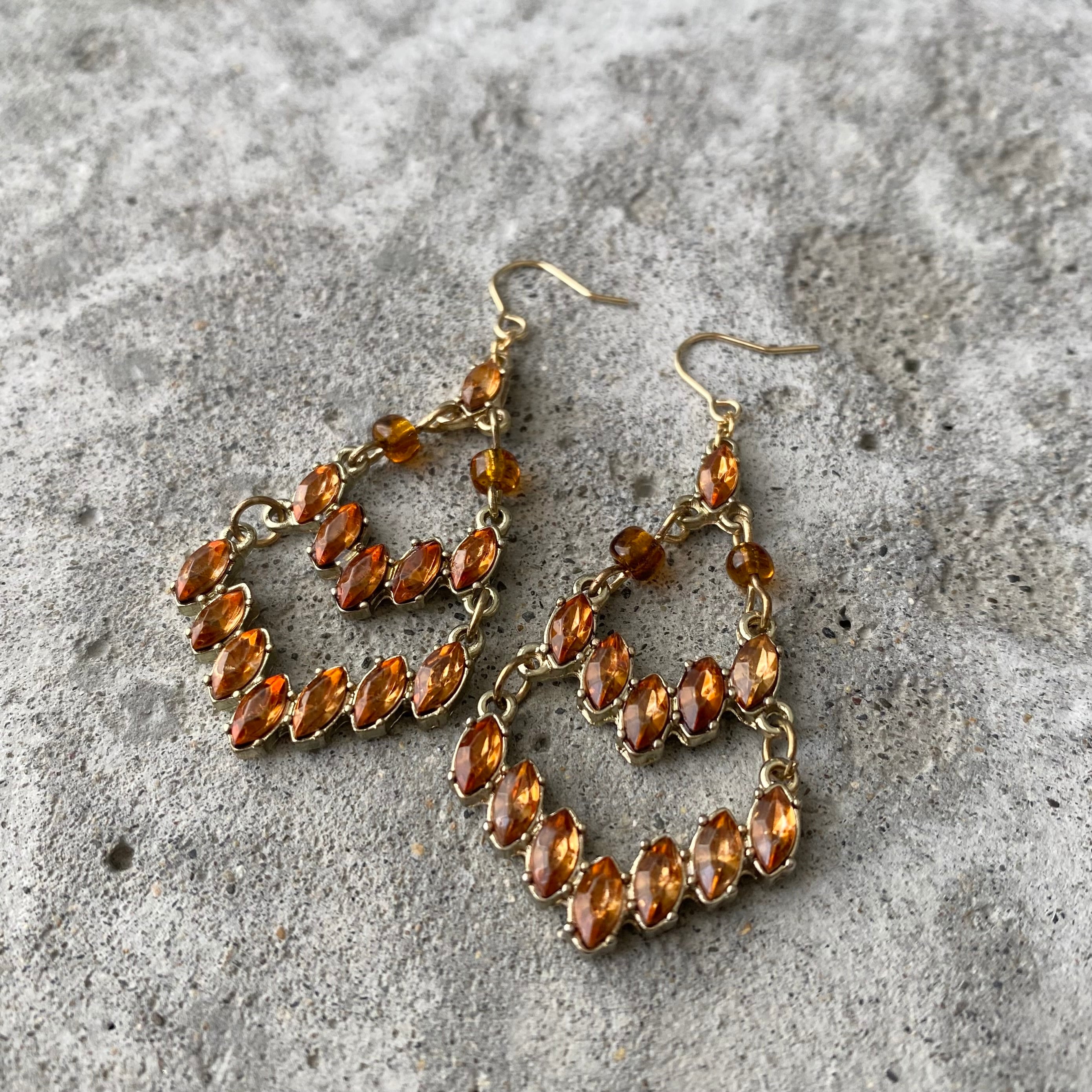 Vintage 90s-00s USA retro brown bijou classical pierces レトロ アメリカ ユーズド アクセサリー ブラウン ビジュー クラシカル ピアス/イヤリング