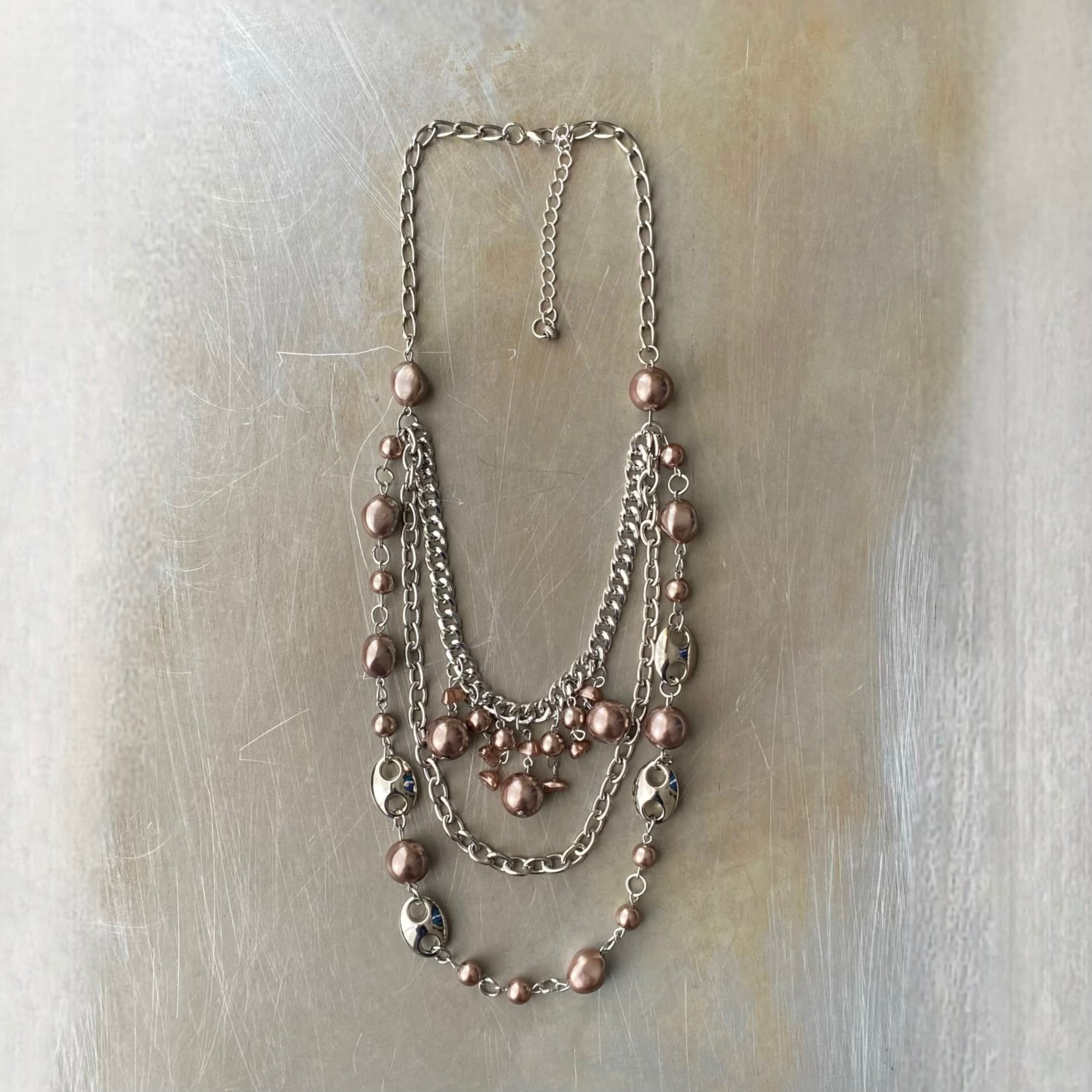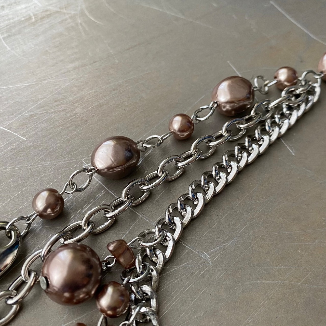 Used USA retro pearl×metal beads necklace レトロ アメリカ ユーズド アクセサリー メタルビーズ 3連 ネックレス