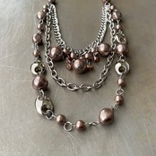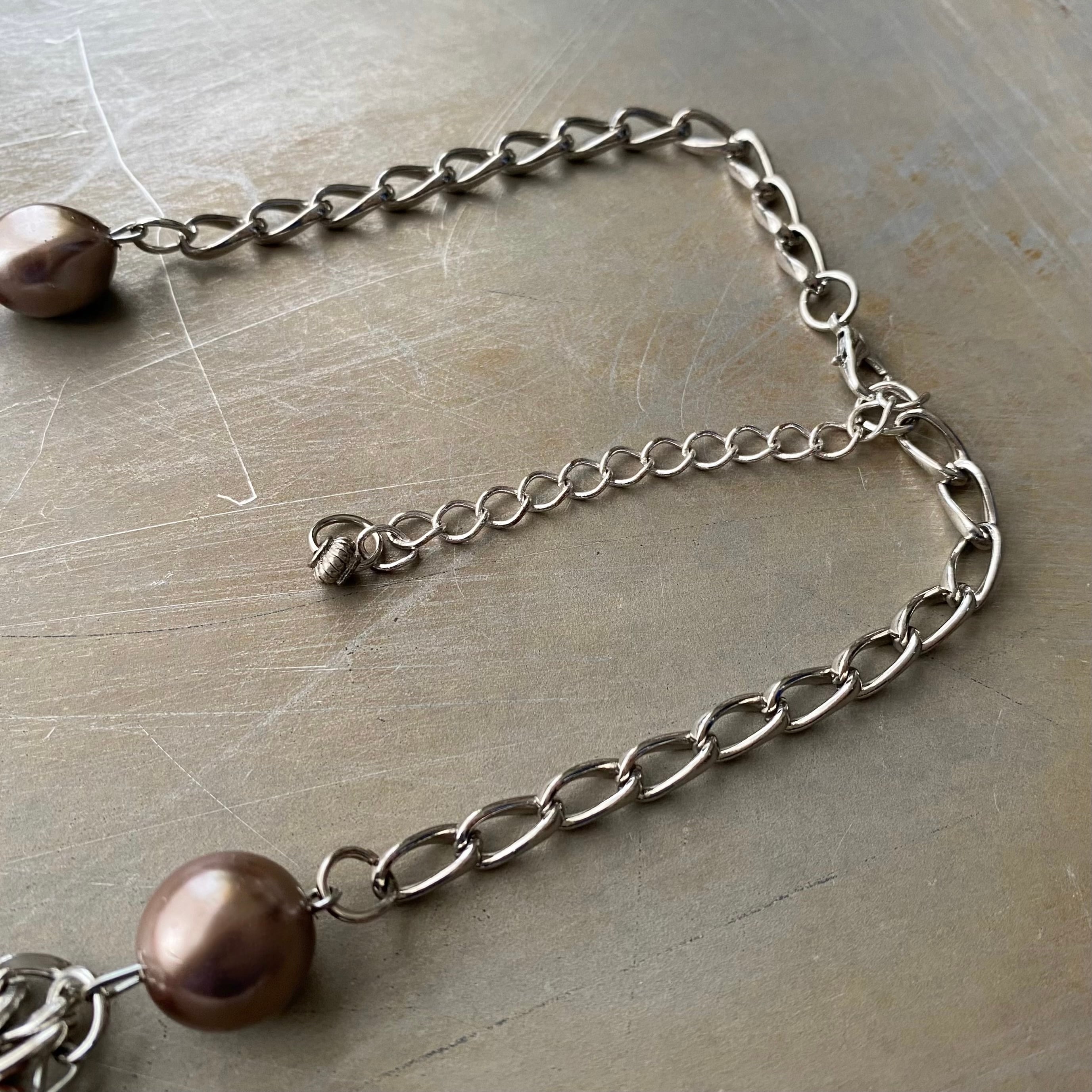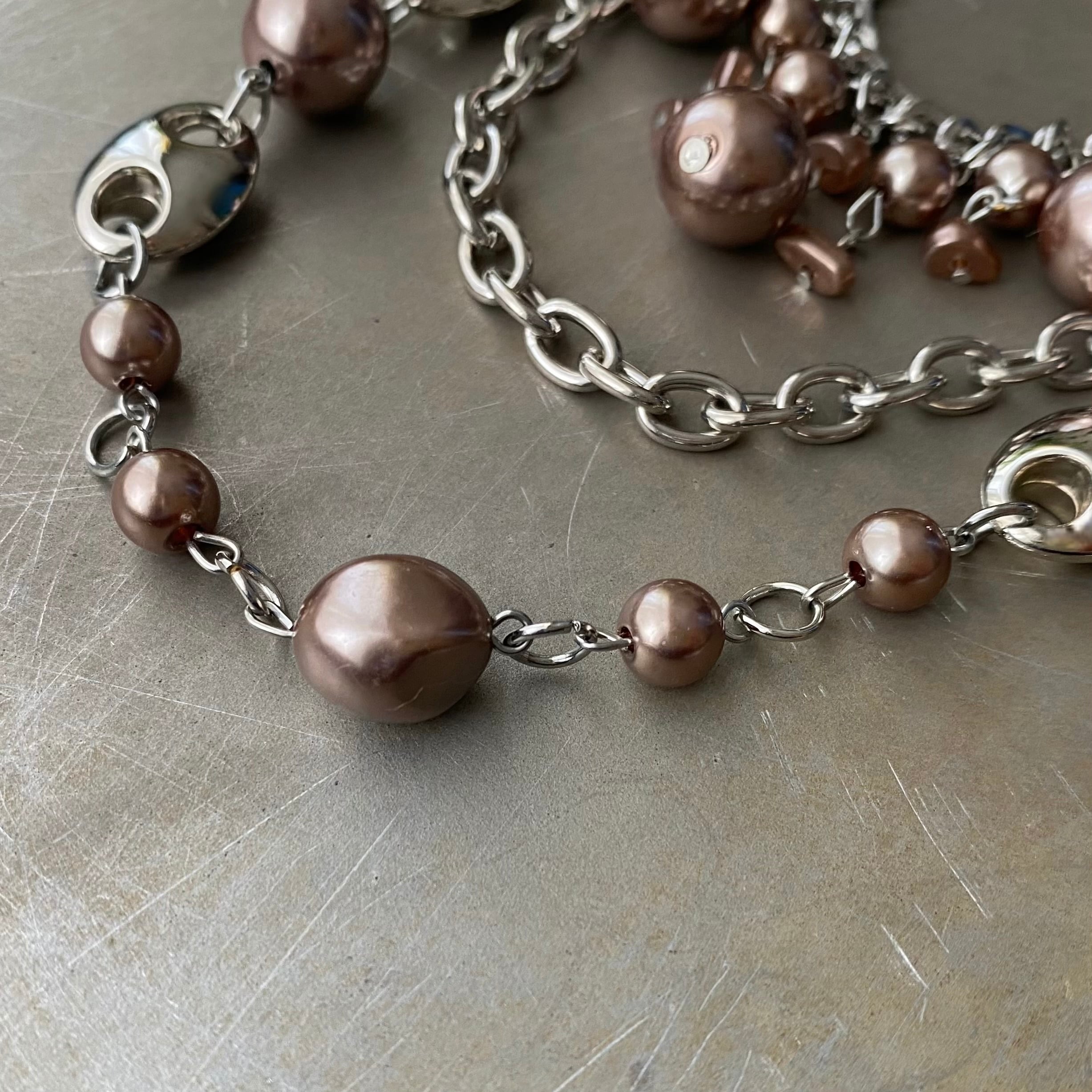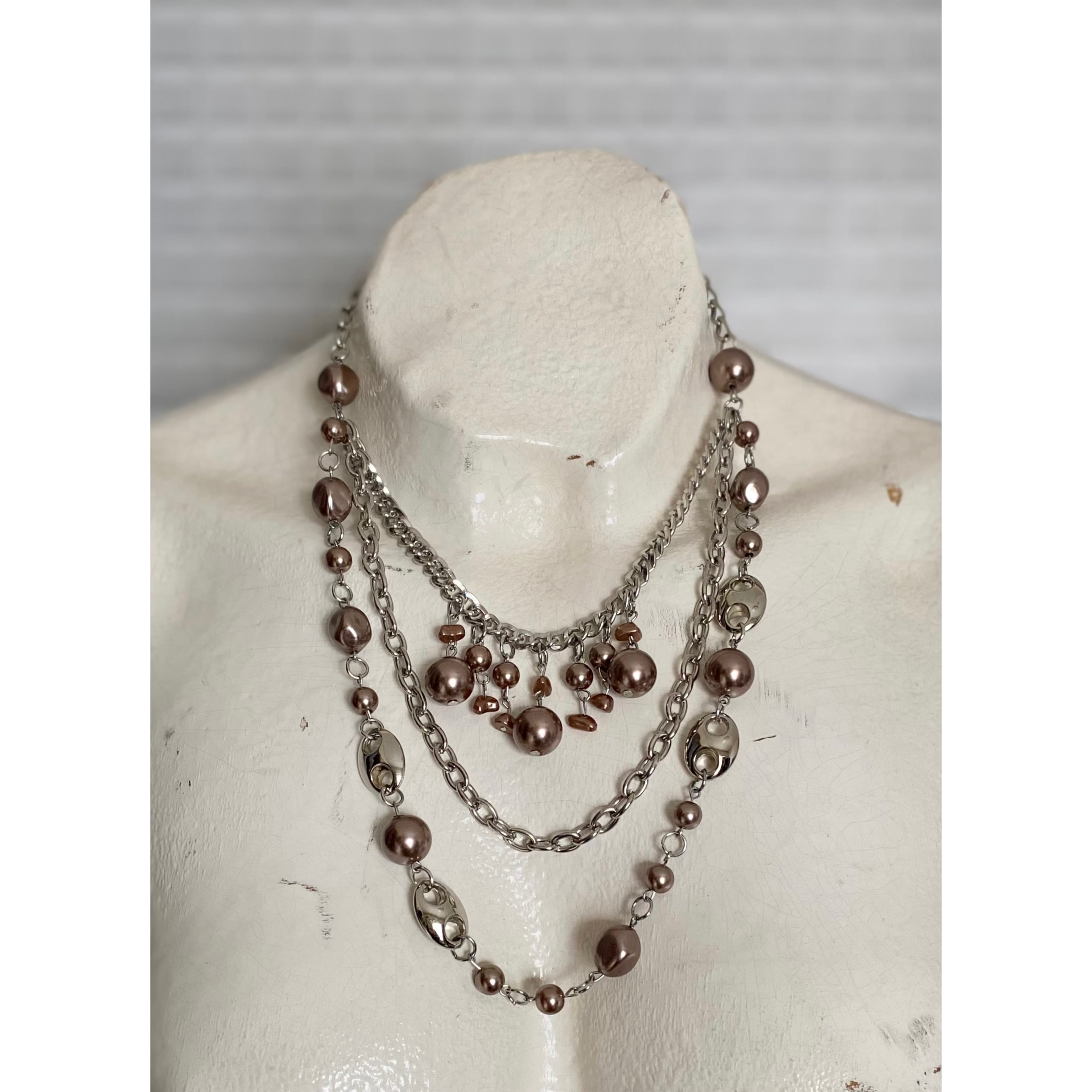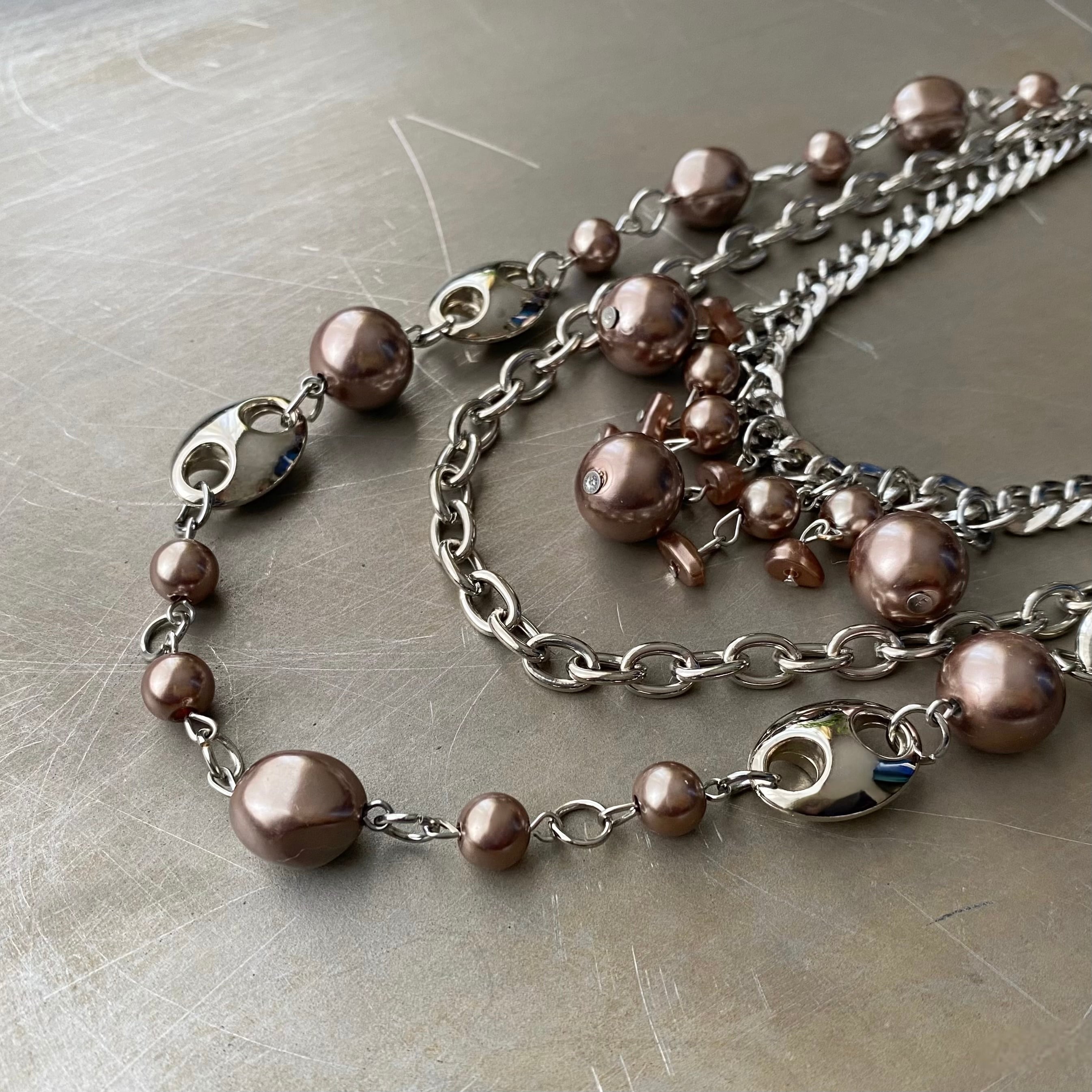 スタイリッシュな雰囲気のUSAユーズドネックレス。個性的なパール使いが魅力的な3連タイプ。存在感がありスタイリングのアクセントにおすすめです。