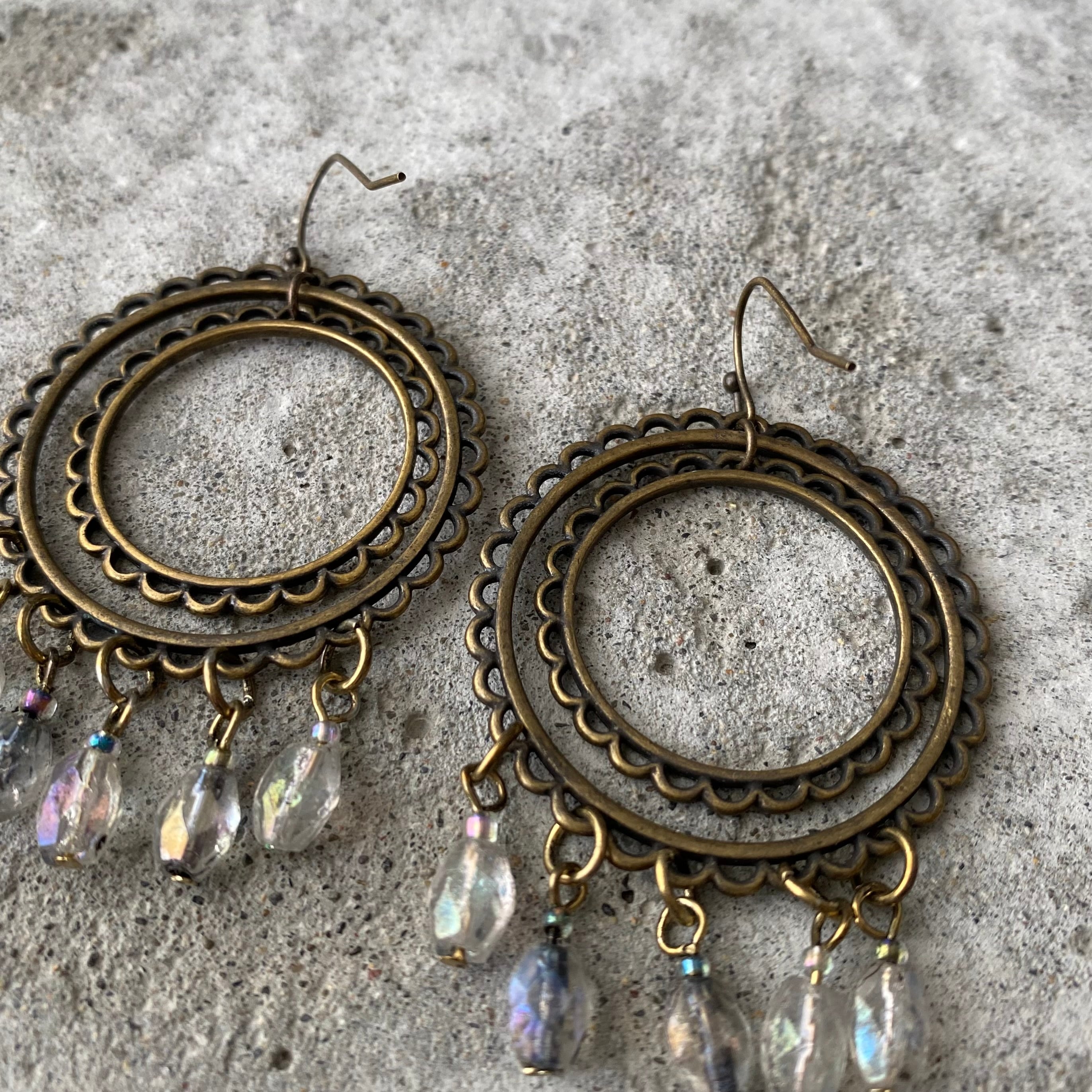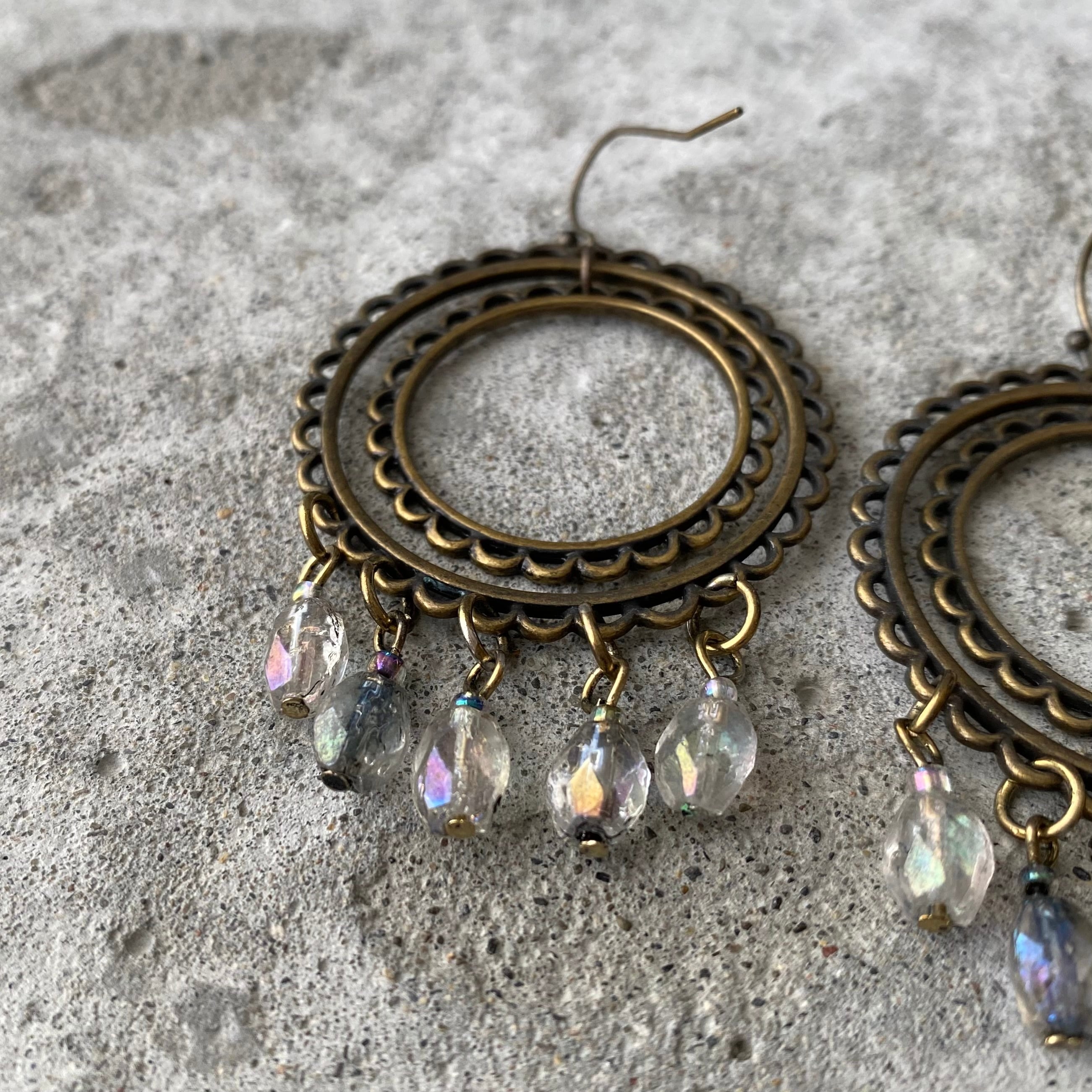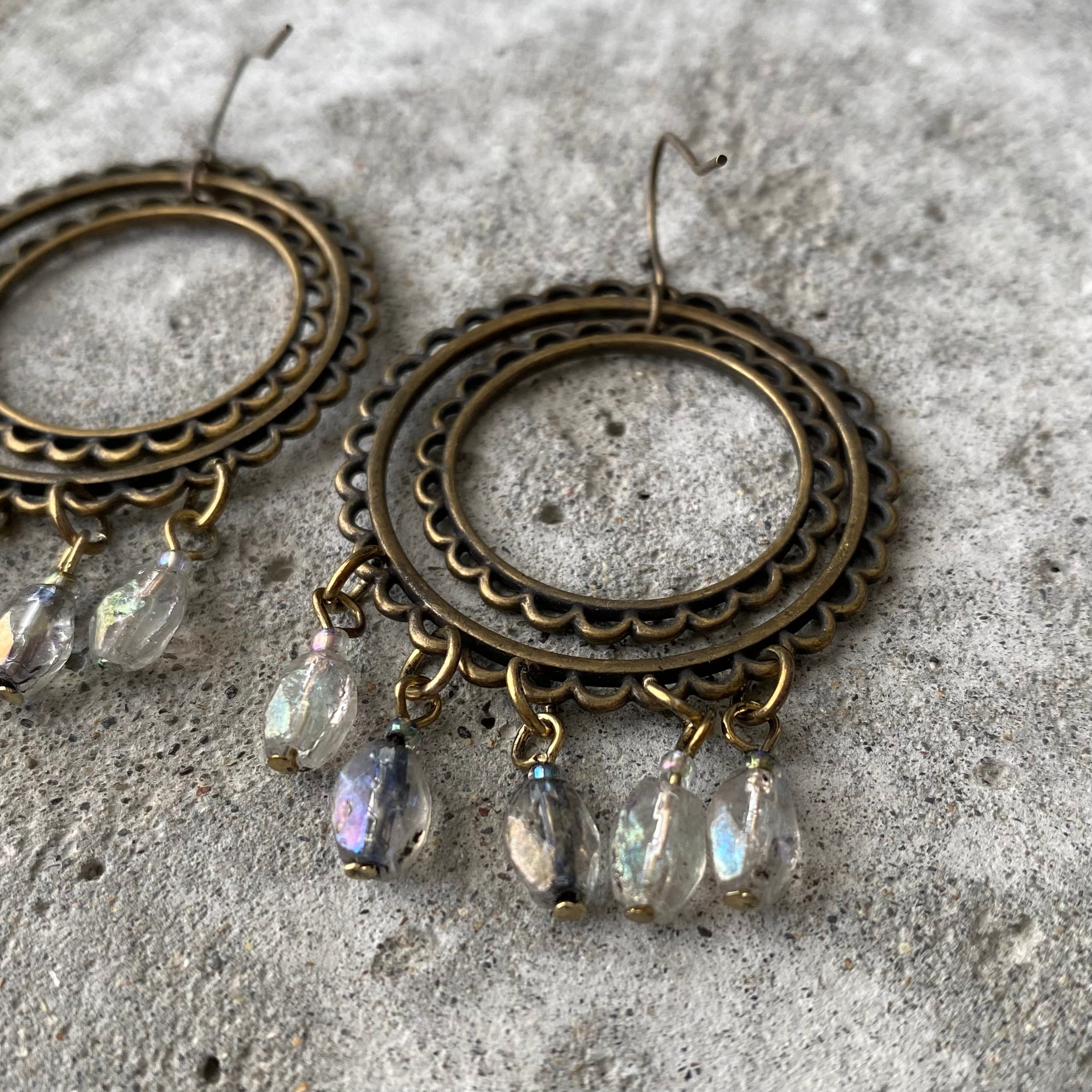 クラシカルな雰囲気のUSAユーズドピアス。ハンドメイドのガラスビーズがフリンジのように揺らめくお洒落なデザインです。存在感がありお顔まわりを華やかな雰囲気にしてくれます。